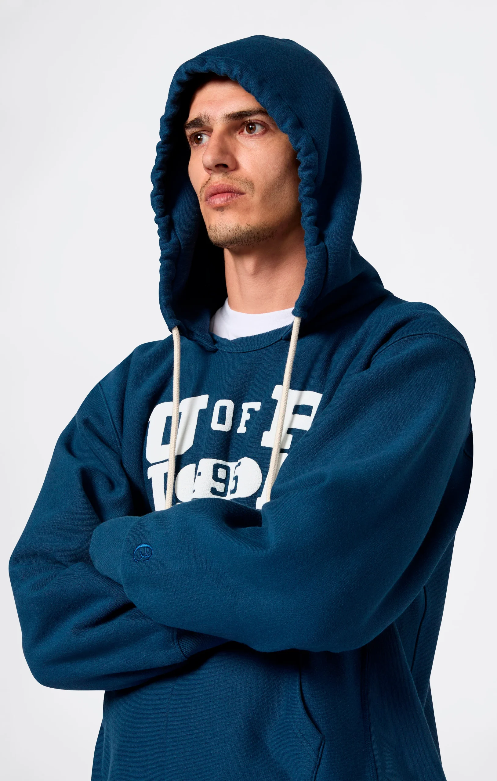 Inspired by American collegiate tradition, this hoodie is part of the Index & Archives Lighthouse capsule and pays tribute to Champion’s sports heritage in New England universities. Made from heavyweight fleece with a brushed interior, it features the legendary Reverse Weave construction—Champion’s 1930s patented technology designed to prevent shrinkage and maintain shape over time. A college-style front print, contrast drawstrings and kangaroo pocket complete the authentic look.@@@Fabric: Reverse Weave Fleece 430 g/m² |Composition: 90% Cotton, 10% Polyester |Brushed interior |Front print inspired by college archives |Reverse Weave: patented anti-shrink construction since the 1930s |Kangaroo pocket |Hood with drawstring |Fit: Custom Fit – regular cut with a slightly refined silhouette