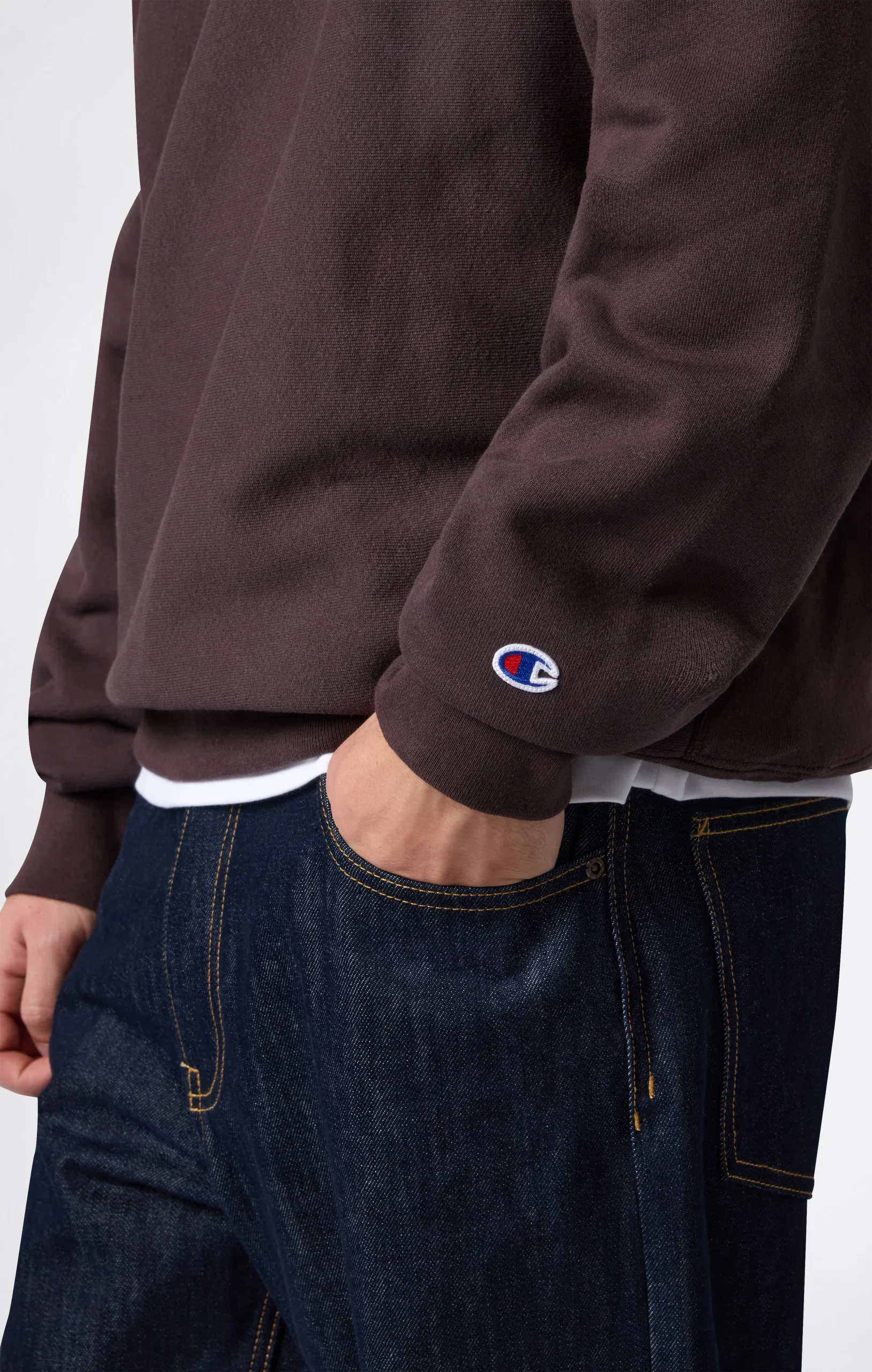 An iconic Champion classic, proudly reinterpreted in the USA. This Reverse Weave® crewneck sweatshirt is crafted from heavyweight Terry Fleece with a brushed interior, offering durability and a softness that improves over time. Ribbed side panels and seamless shoulders enhance comfort and fit. Patented by Champion in the 1930s, the Reverse Weave® technology minimizes vertical shrinkage thanks to the horizontal fabric cut. Part of the Made in USA collection: premium quality, American craftsmanship, authentic heritage.@@@Fabric: Terry Fleece, weight 425 g/m² |Composition: 90% Cotton, 10% Polyester |Brushed interior |Reverse Weave® technology: patented horizontal anti-shrink construction by Champion |No shoulder seams |Made in USA |Fit: Custom Fit – relaxed, with wide shoulders and comfortable structure
