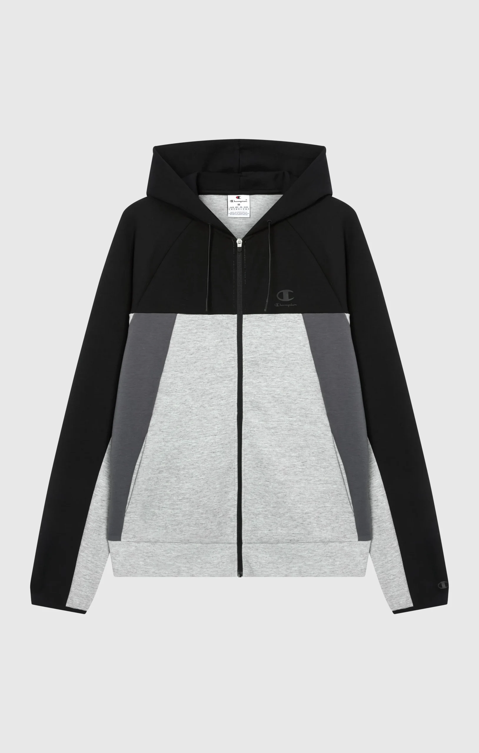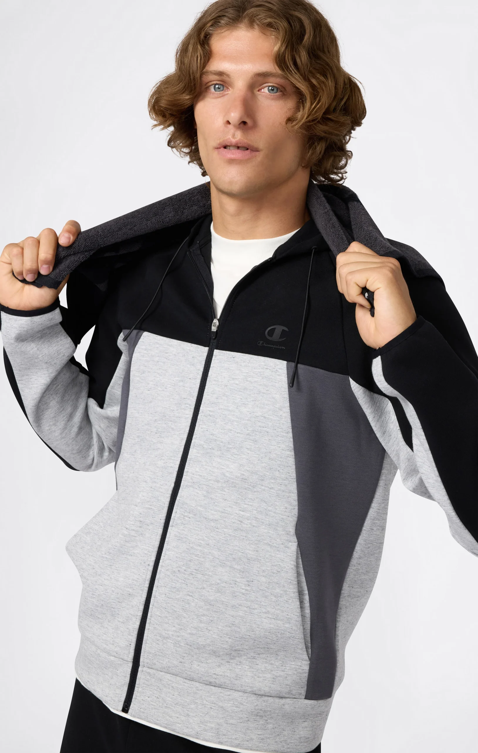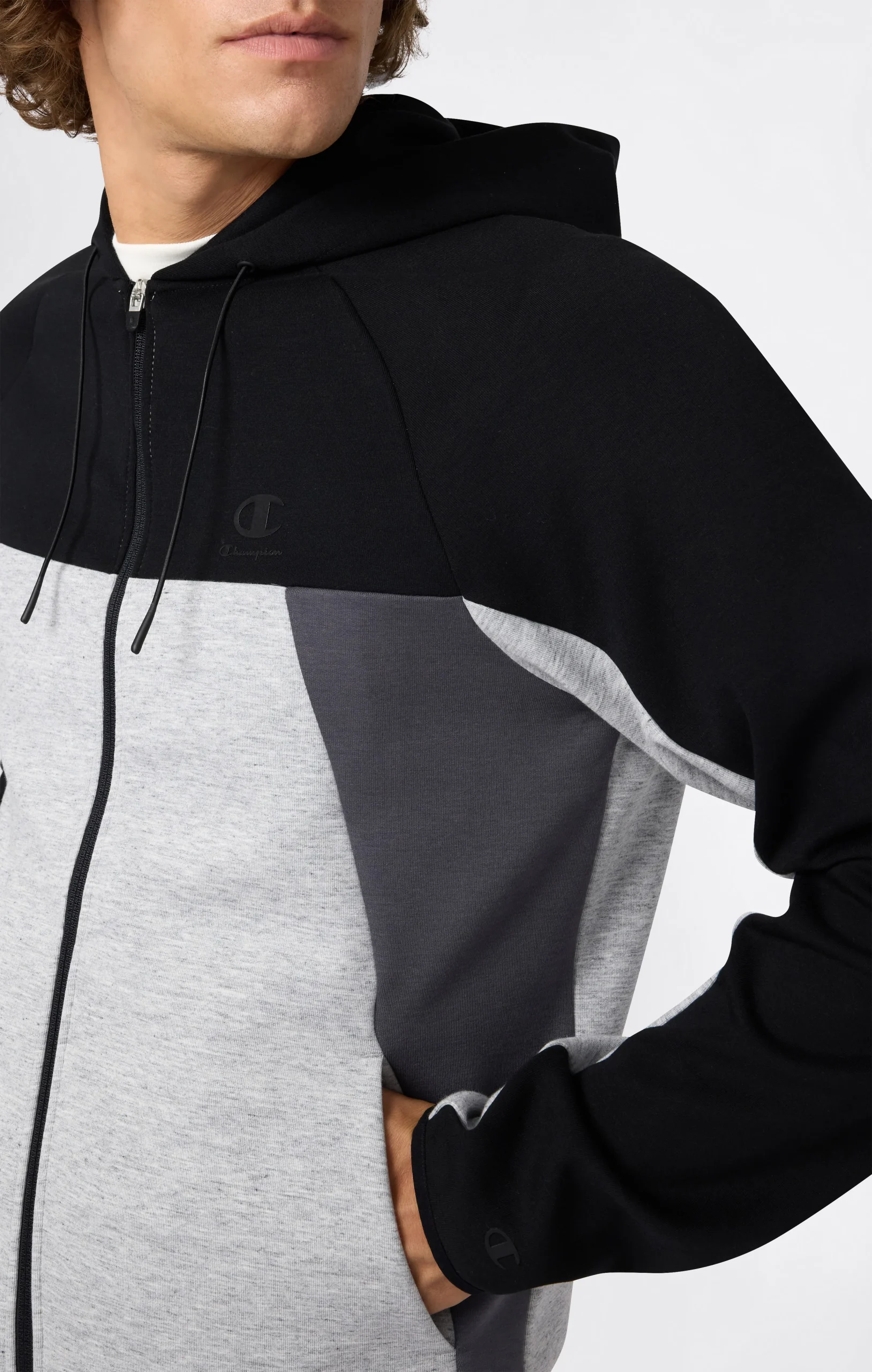 Bring energy and style to your routine with this men’s full-zip hoodie from the C-Tech line. The modern color-block design enhances the slim-fit cut and adds a dynamic touch to your sporty look. The stretch interlock fabric in a polyester-cotton blend ensures softness and freedom of movement, while the adjustable hood and side pockets provide comfort and practicality to tackle your day with an active spirit.@@@Fabric: Stretch interlock – 360 g/m² |Composition: 69% Polyester, 26% Cotton, 5% Elastane |Adjustable hood with drawstring |Full front zip |Side pockets |Tone-on-tone logo |Fit: Slim Fit – close-fitting but not tight, naturally follows the body’s curves