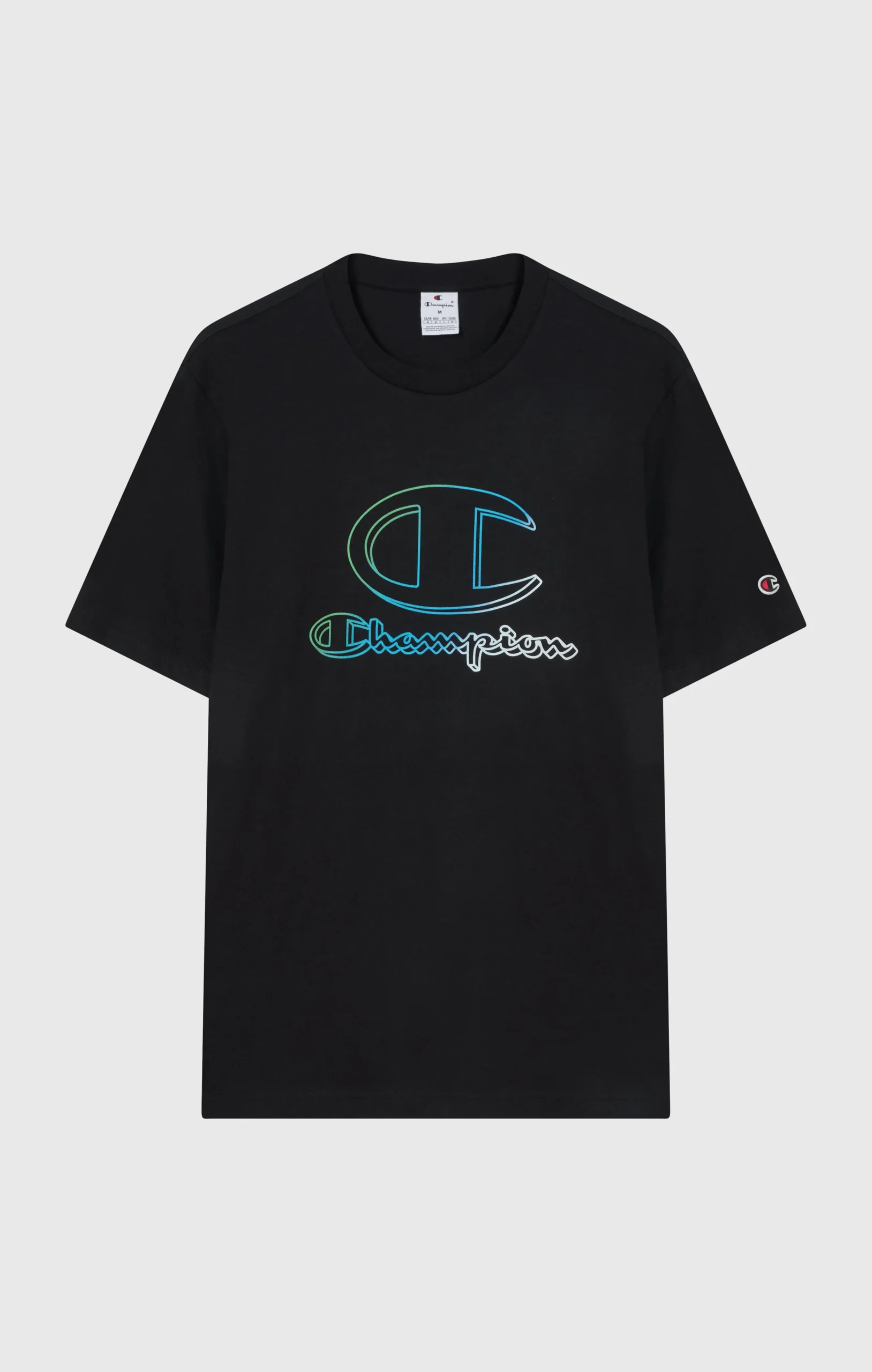 Made from lightweight cotton jersey (150 g/m²), this Champion T-shirt combines comfort and style in a versatile everyday piece. The design plays with seasonal colors and reworks the iconic “C” logo into original graphic compositions, creating a modern and distinctive look. Perfect to pair with jeans, joggers or shorts for a casual and fresh style.@@@Composition:100% cotton |Fabric:Light cotton jersey |Fabric weight:150 g/m² |Short sleeves |Ribbed crew neck |Fit:Standard Fit – versatile and comfortable with standard widths and lengths. Close to the body with clean lines that do not cling. Regular shoulder cut.