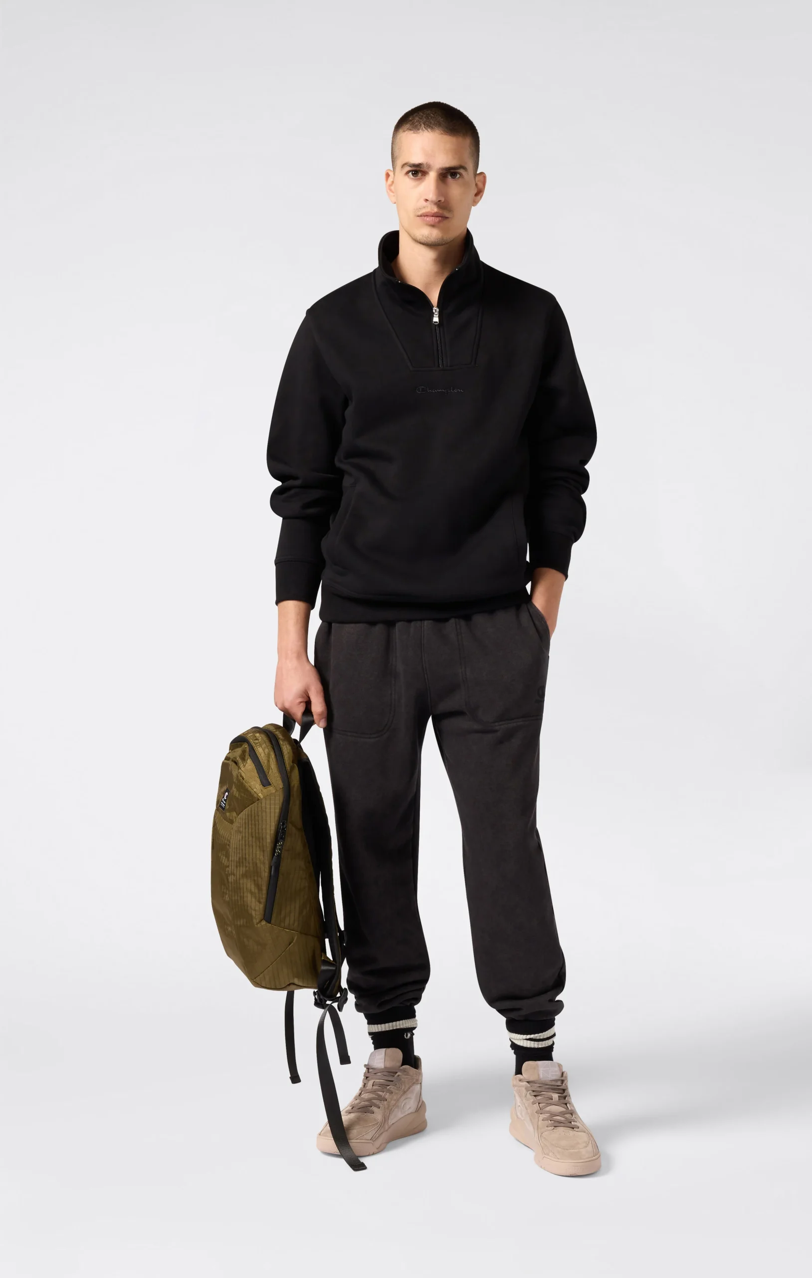 Clean lines and total comfort define this Icons half-zip sweatshirt. Made from heavy fleece (310 g/m²), it delivers ideal warmth for colder seasons while maintaining a refined, essential style. The half-zip, high collar, and tonal embroidered logo add a technical touch, while side pockets enhance everyday functionality.@@@Fabric: Heavy compact and soft fleece – 310 g/m² |Composition: 70% Cotton, 30% Polyester |Brushed interior for superior thermal comfort |High neck with short zip |2 side pockets |Tone-on-tone embroidered logo |Fit: Standard Fit – versatile and comfortable with standard widths and lengths. Follows the body without clinging. Regular shoulder cut.
