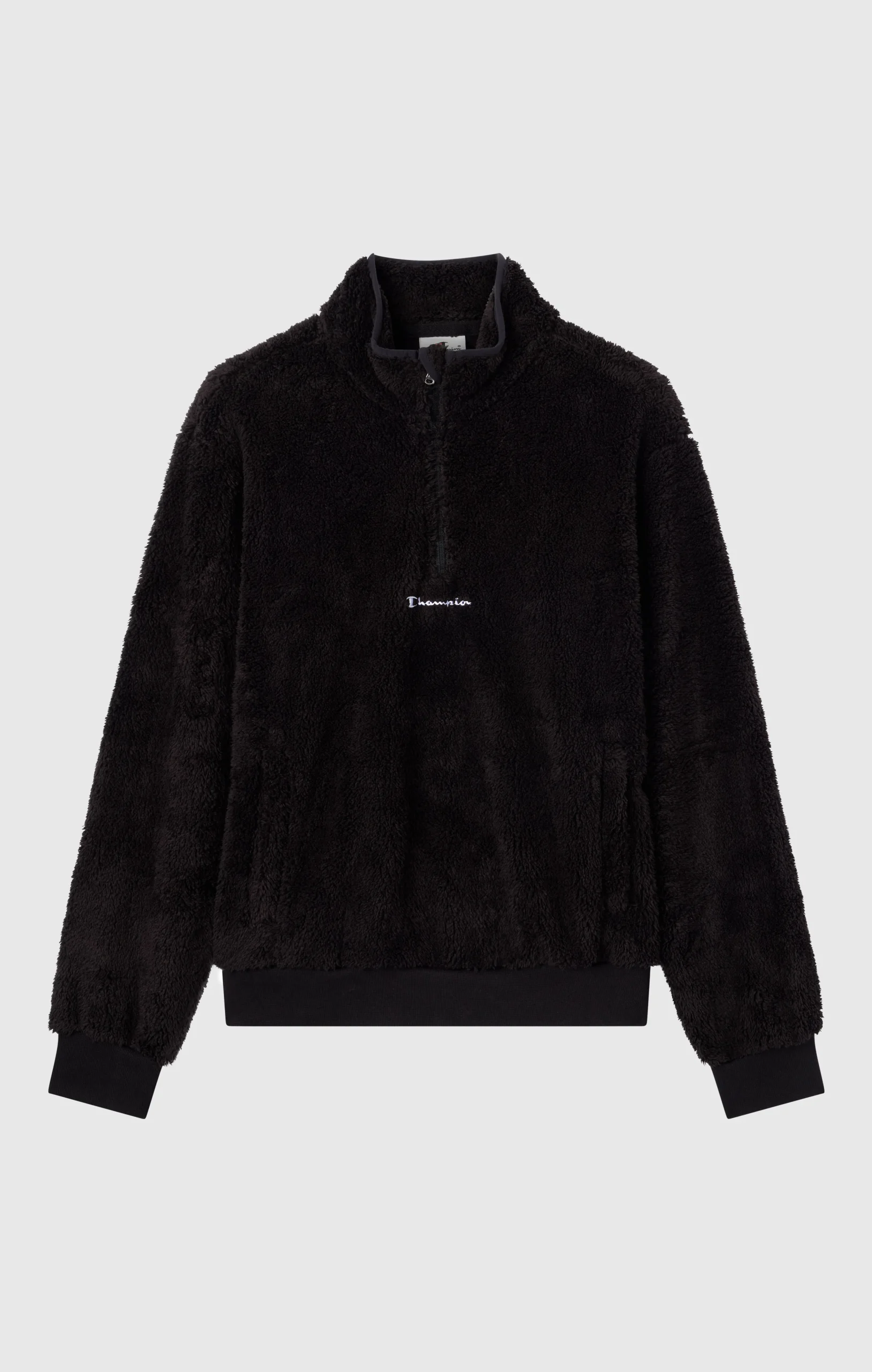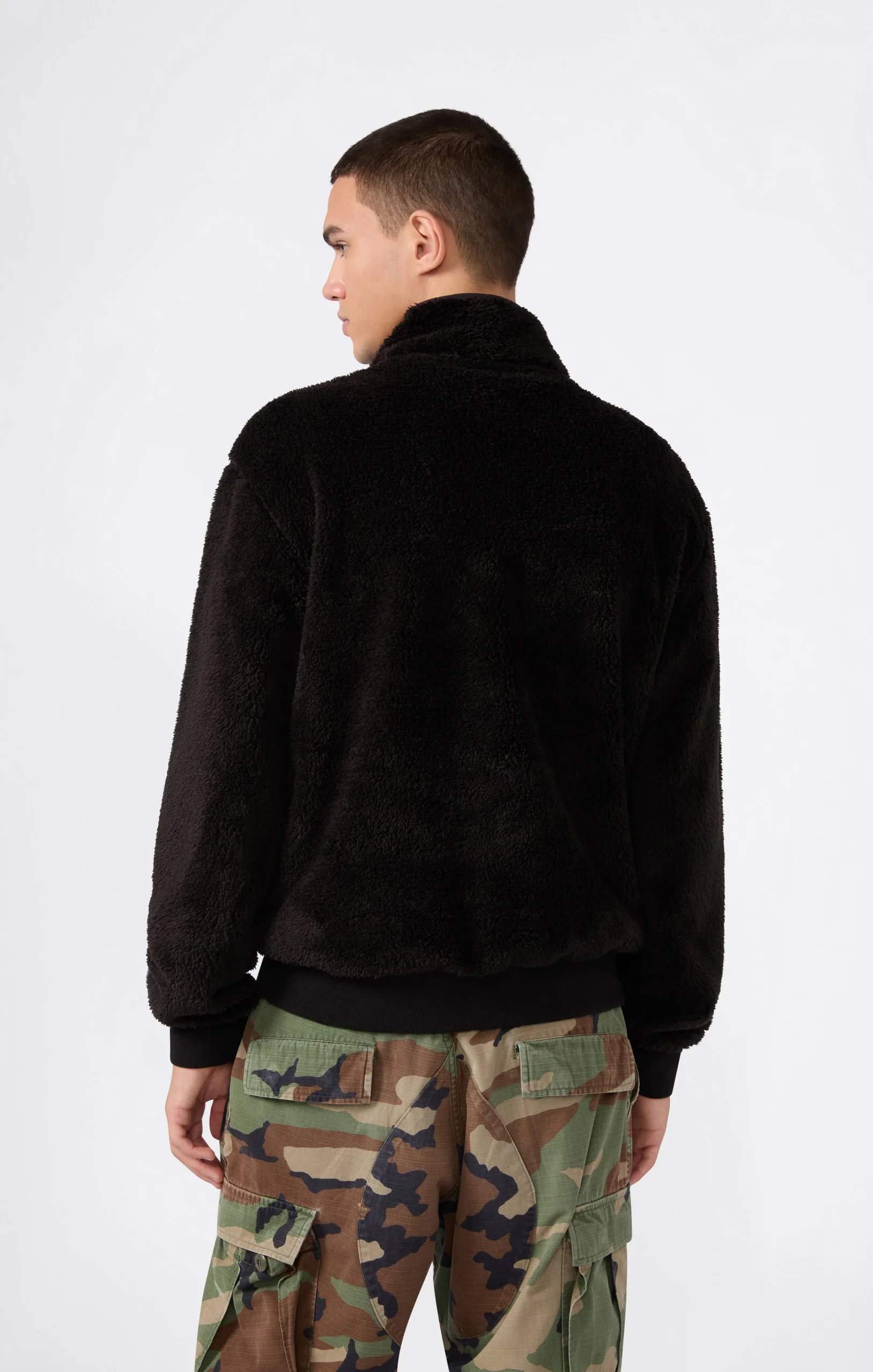 Designed to provide warmth and softness even on the coldest days, this teddy fleece top features a cozy stand collar with half zip, front pockets, and ribbed trims to lock in heat. Its soft texture makes it ideal for downtime and leisure moments, combining comfort and style.@@@Fabric: Polar Teddy bonded, 460 g/m² |Composition: 60% Polyester 40% Cotton |Half‑zip front |High collar |Front pockets |Ribbed trims |Standard Fit: versatile and comfortable fit with standard widths and lengths. Closely fitted to the body, it has simple lines that don’t accentuate the shape. Regular shoulder cut.