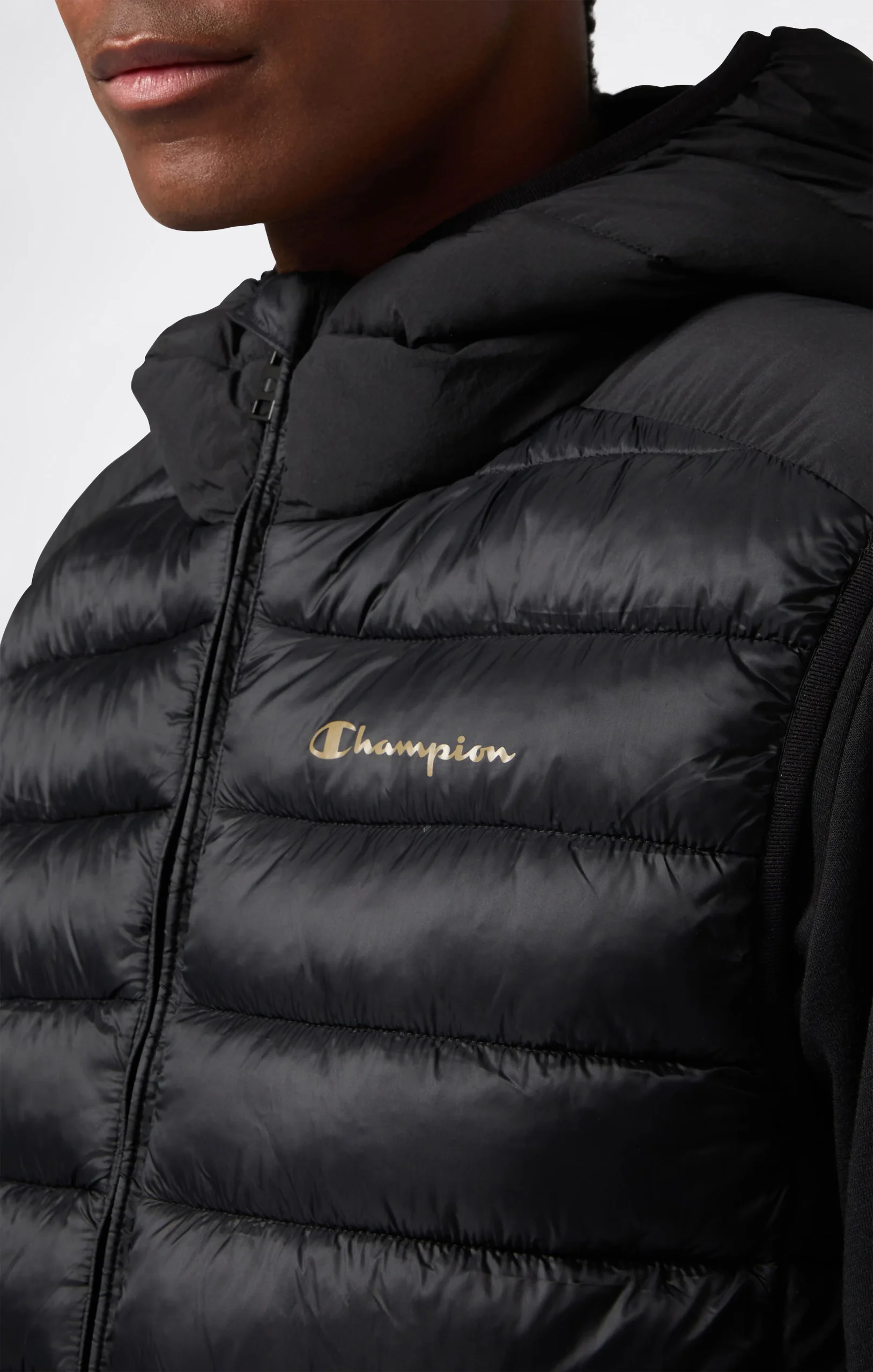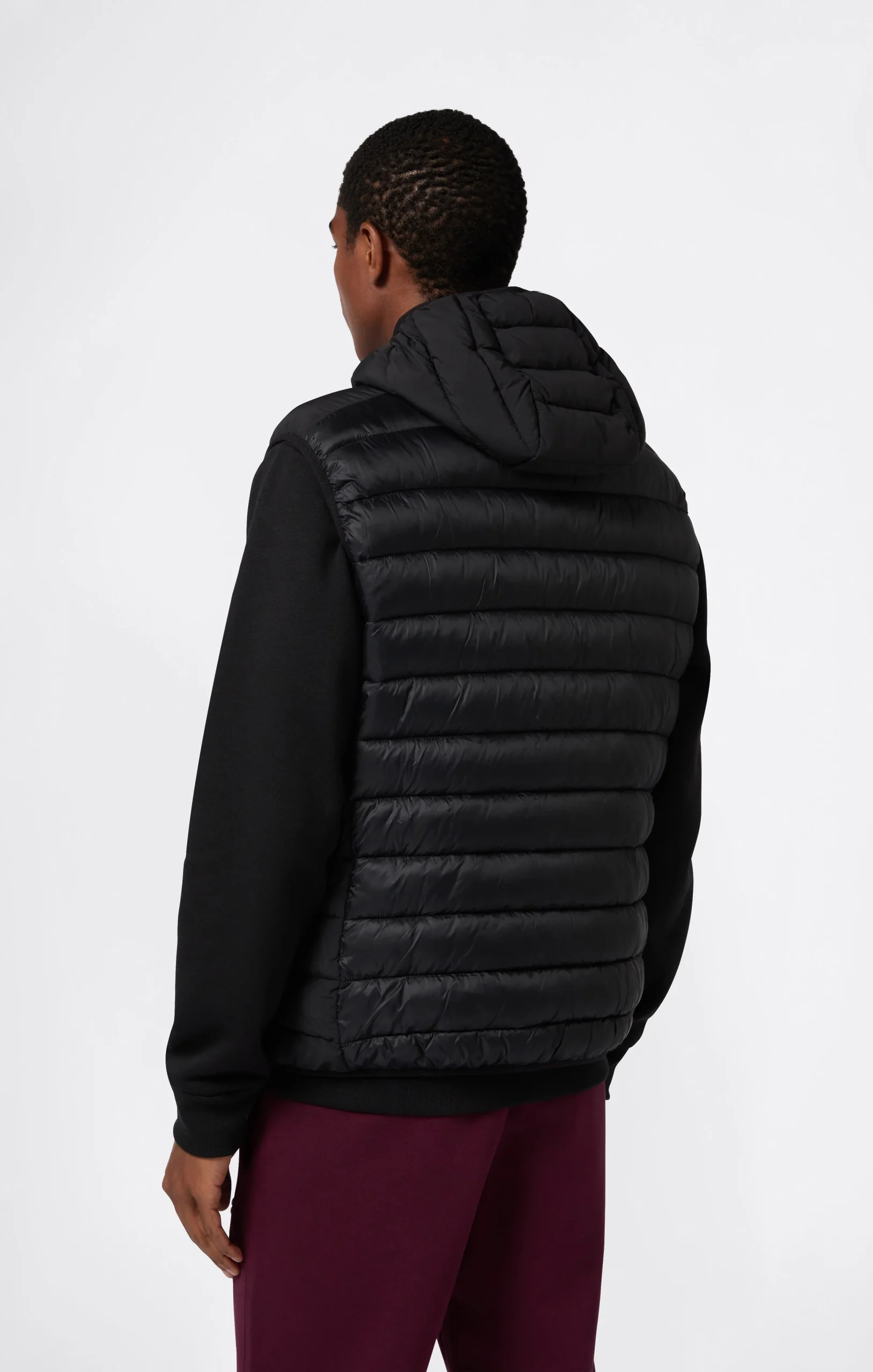 Questa gilet con cappuccio combina leggerezza e protezione in un design pratico e moderno. Il tessuto nylon dall’effetto lucido, resistente all’acqua e al vento, è imbottito con ovatta Reprive per offrire comfort termico e sostenibilità. L’interno presenta dettagli tecnici e rinforzi ergonomici per una vestibilità sicura durante le attività outdoor.@@@Fabric:Light Nylon 35 g/m² |Composition: 100% Polyamide |Inner lining: 100% Nylon |Padding: Repreve |Technical details: |Fixed hood |Front zip |Side zip pockets |Internal ergonomic panels |Fit: Regular Fit – comfortable cut with a straight line, suitable for all body types
