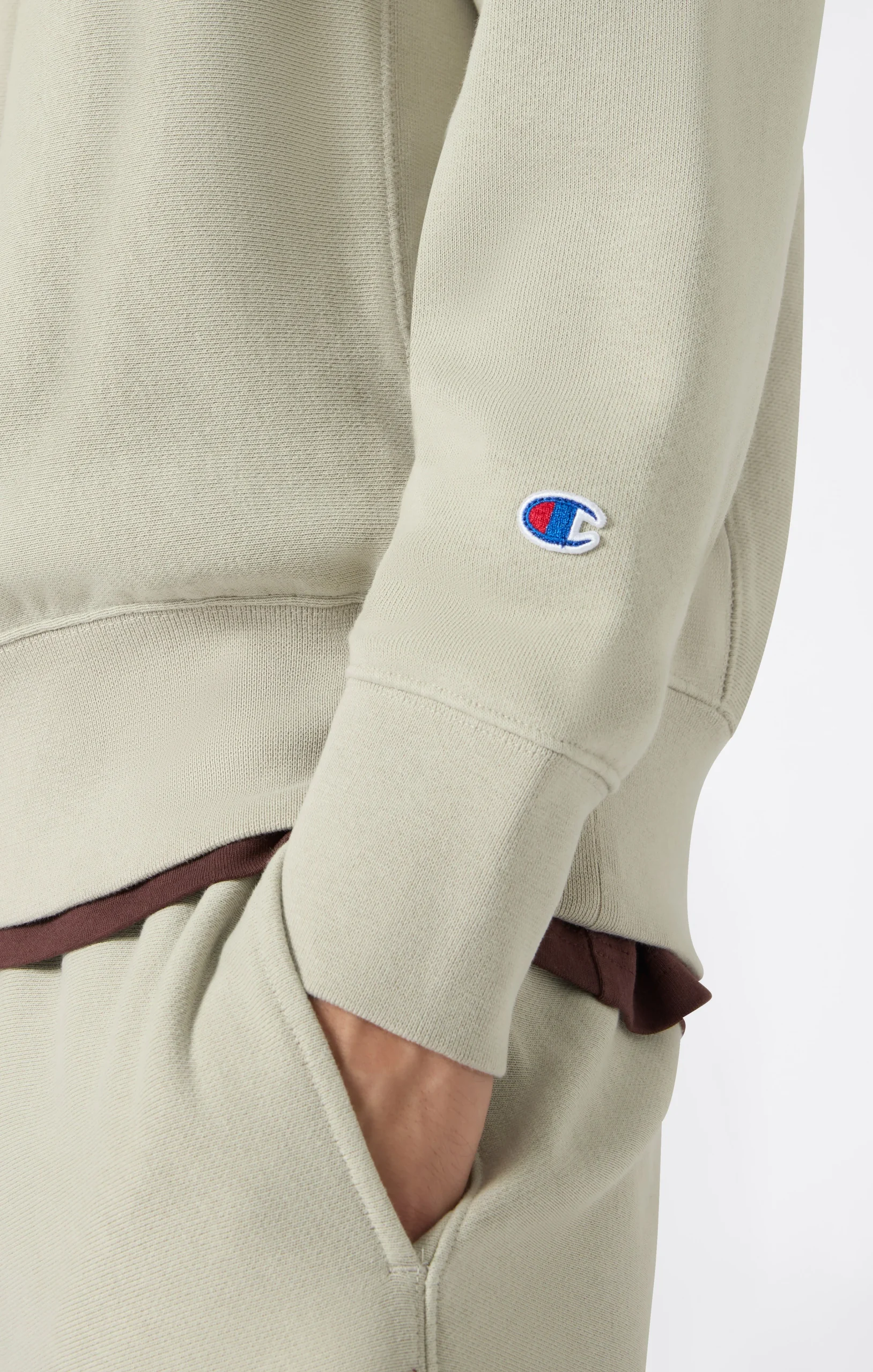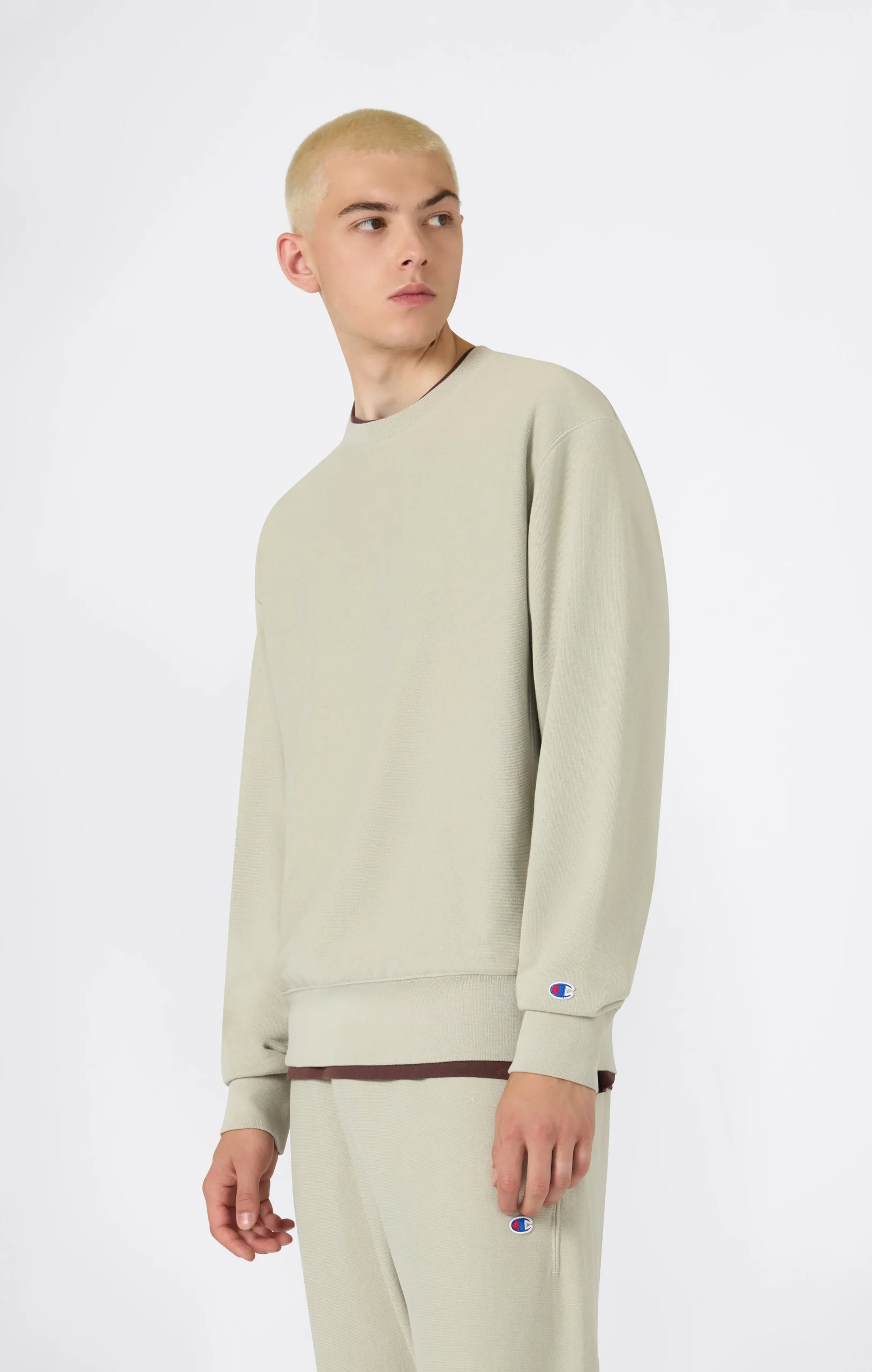 An essential and timeless crewneck sweatshirt, born from Champion’s authentic sporting heritage. This model is part of the historic Reverse Weave line, a technique patented in 1934 that revolutionized sportswear with its resistance to shrinkage and ability to maintain its original shape over time. Made from 400 g/m² terry fabric with an unbrushed interior, it offers comfort, breathability and lasting durability, making it perfect for mild temperatures and transitional seasons. The relaxed fit and iconic details reflect the brand’s authentic and timeless style.@@@Fabric: Soft Reverse Terry Solid Colors 400 g/m² |Composition: 82% Cotton, 18% Polyester |Unbrushed Terry fabric |Reverse Weave fabric: durable and designed to maintain its shape over time |Ribbed crewneck |Ribbed cuffs and hem |Embroidered C patch on left sleeve |Fit: Relax Fit: soft and comfortable fit, slightly loose on the chest, dropped shoulders, regular length