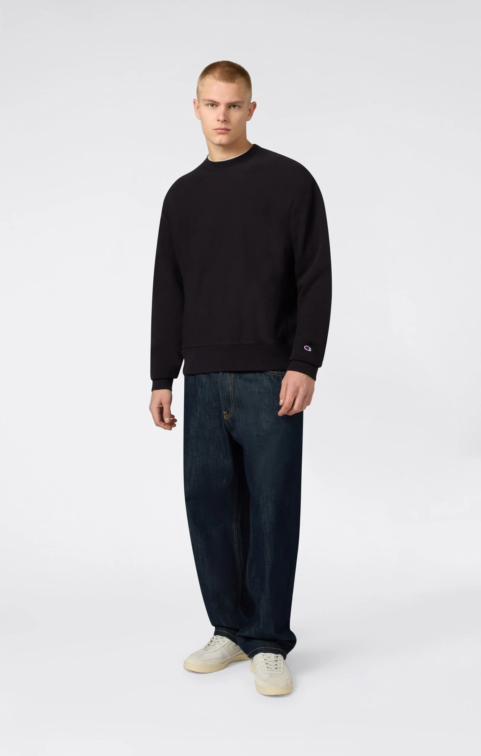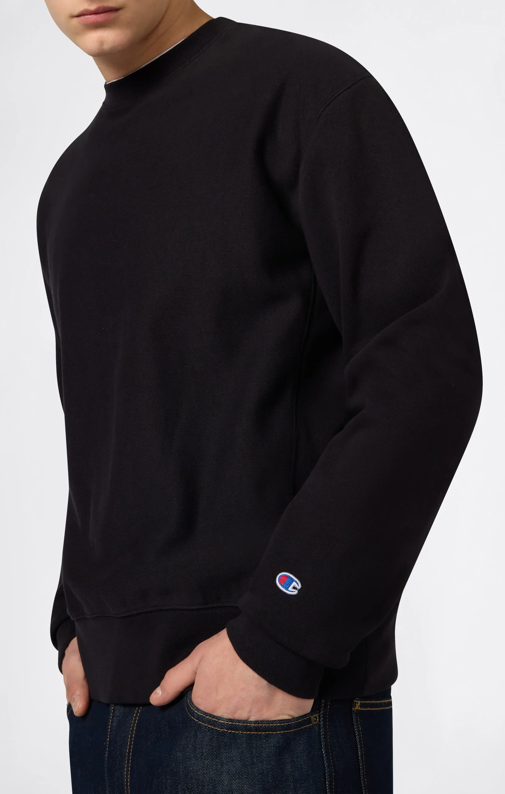 An essential and timeless crewneck sweatshirt, born from Champion’s authentic sporting heritage. This model is part of the historic Reverse Weave line, a technique patented in 1934 that revolutionized sportswear with its resistance to shrinkage and ability to maintain its original shape over time. Made from 400 g/m² terry fabric with an unbrushed interior, it offers comfort, breathability and lasting durability, making it perfect for mild temperatures and transitional seasons. The relaxed fit and iconic details reflect the brand’s authentic and timeless style.@@@Fabric: Soft Reverse Terry Solid Colors 400 g/m² |Composition: 82% Cotton, 18% Polyester |Unbrushed Terry fabric |Reverse Weave fabric: durable and designed to maintain its shape over time |Ribbed crewneck |Ribbed cuffs and hem |Embroidered C patch on left sleeve |Fit: Relax Fit: soft and comfortable fit, slightly loose on the chest, dropped shoulders, regular length