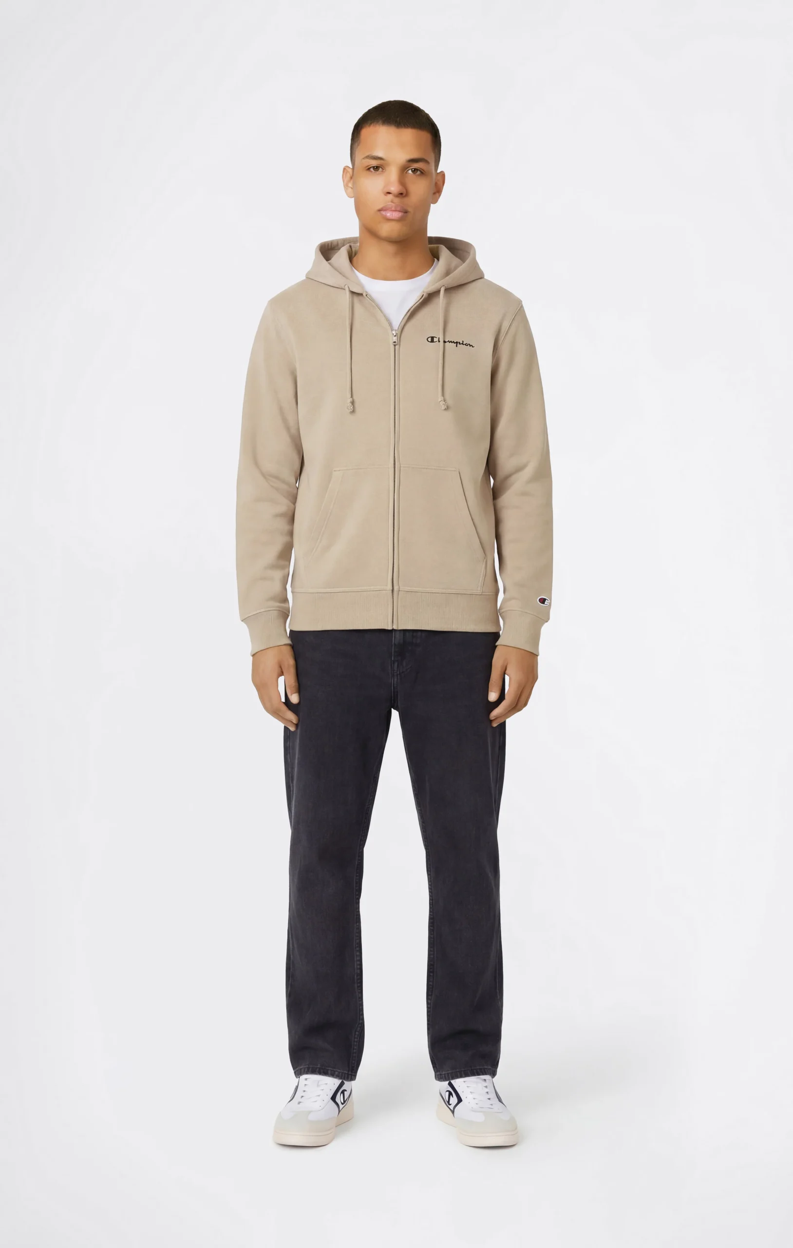 Essential and iconic, this men’s full zip hoodie from the Icons line is made from compact and comfortable Heavy Soft Compact Spring Poly Terry fabric. Designed for transitional seasons, it is a lightweight hoodie ideal for everyday wear and layering. The clean design is finished with an embroidered Champion logo on the chest and a Standard fit that ensures comfort and versatility.@@@Fit: Standard, versatile and comfortable fit with clean lines and regular shoulders |Fabric: Heavy Soft Compact Spring Poly Terry |Composition: 70% Cotton, 30% Polyester |Weight: 310 g/m² |Lightweight hoodie with unbrushed interior |Adjustable hood with drawstring |Full front zip |Front kangaroo pockets |Ribbed cuffs and hem |Embroidered Champion logo on chest |Iconic “C” Champion patch on sleeve