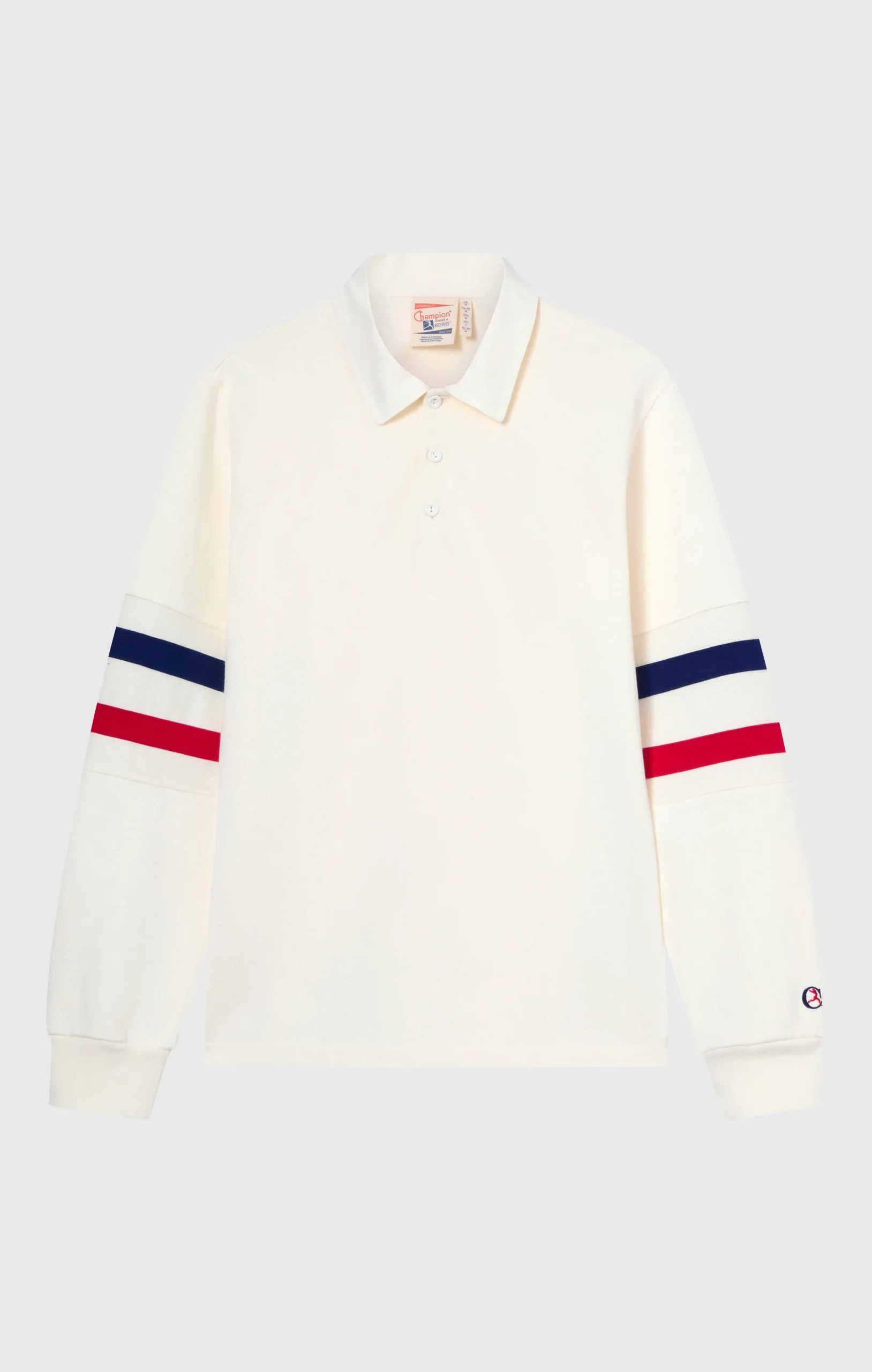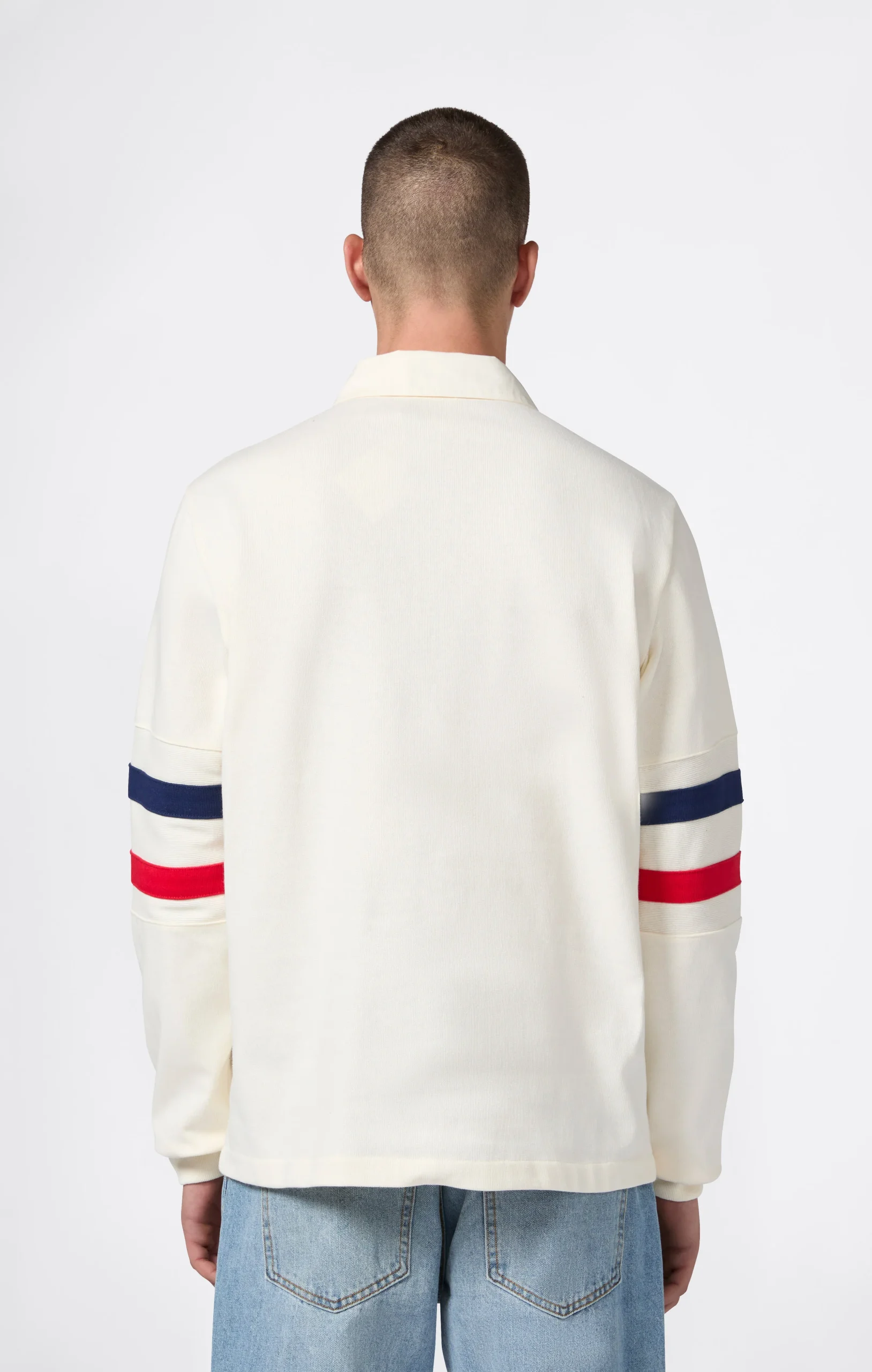 This long-sleeve polo in heavy jersey is part of the Island Trees capsule by Index & Archives, reinterpreting American sportswear with a Caribbean twist from the ’70s–’80s. The contrast white collar, three-button placket, and colorful sleeve stripes echo vintage rugby uniforms, updated with a relaxed fit and premium materials. A piece that blends sporty character and heritage appeal.@@@Fabric: Heavy Jersey 440 g/m² |Composition: 100% Cotton |White piqué collar |Three-button placket |Contrast stripes on sleeves |Ribbed cuffs |Fit: Loose Customized, loose fit with dropped shoulders, wide sleeves and regular length