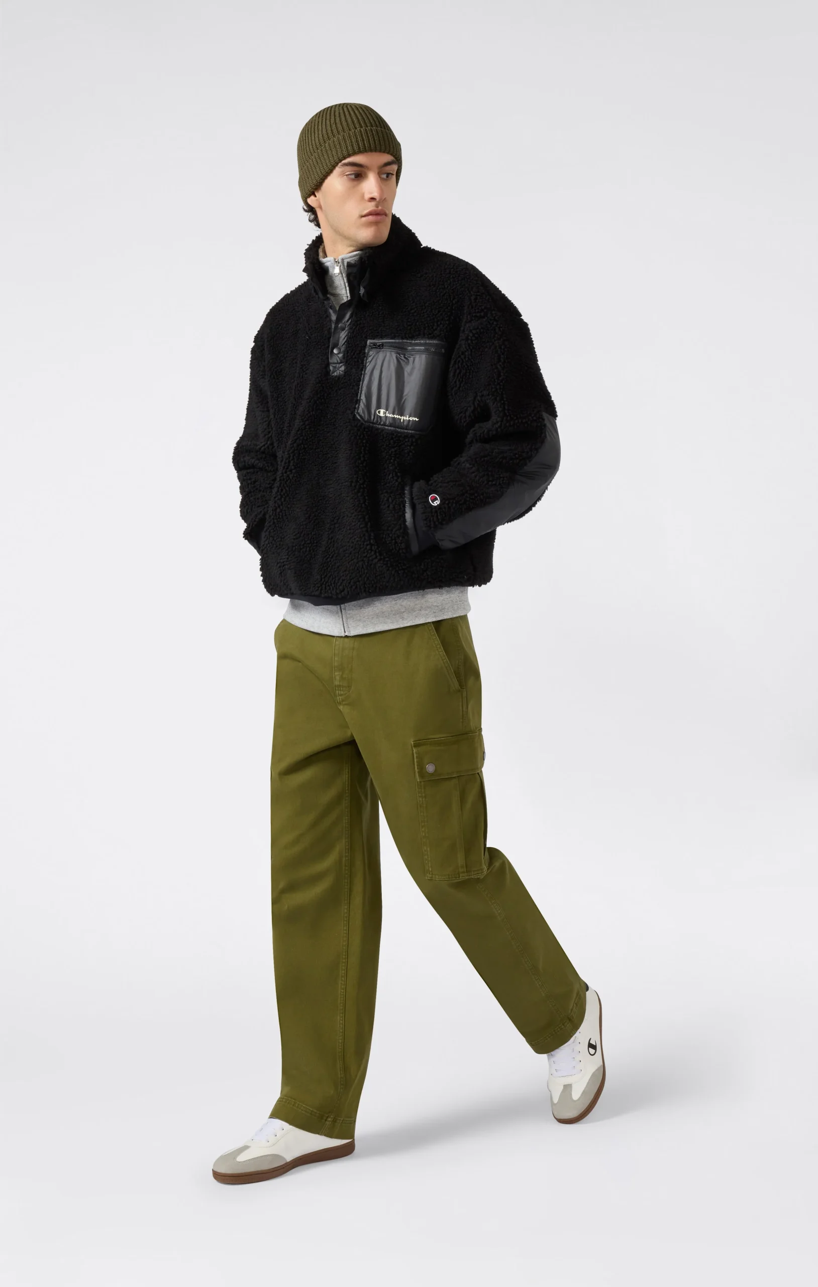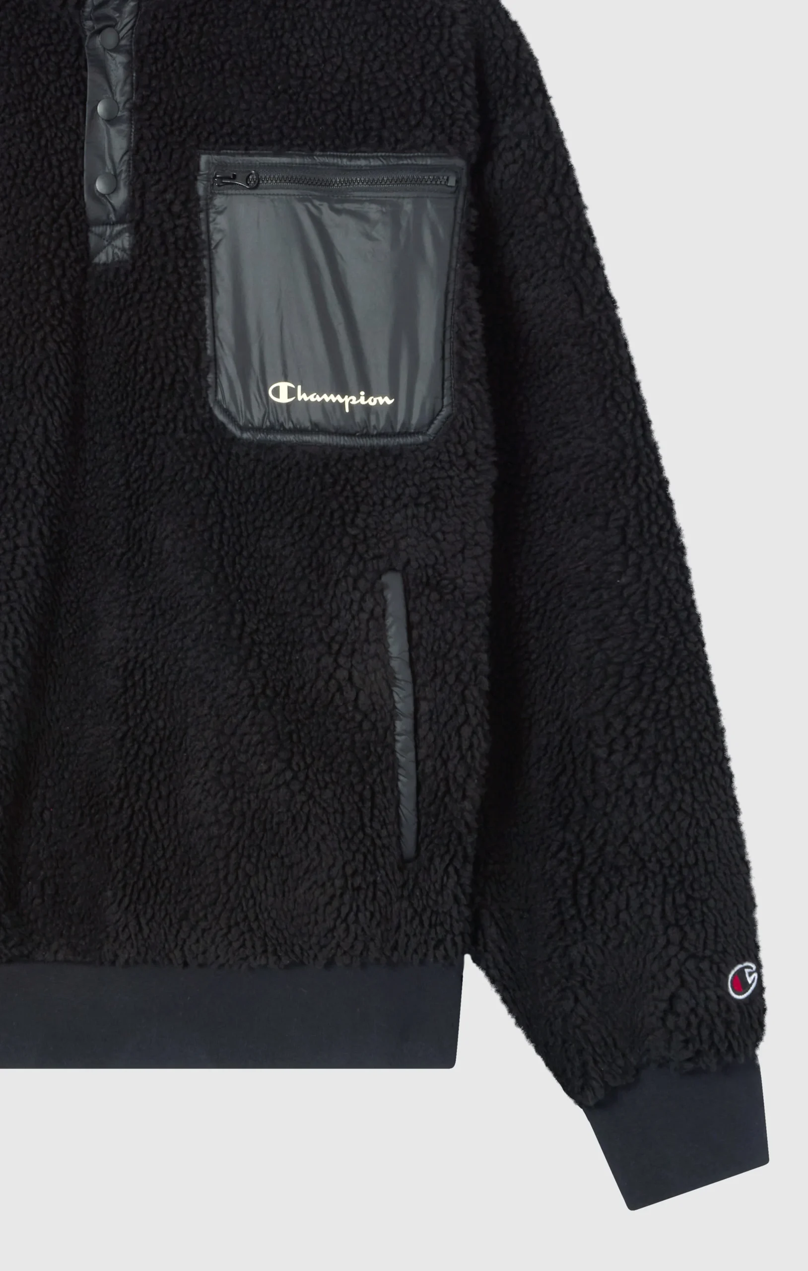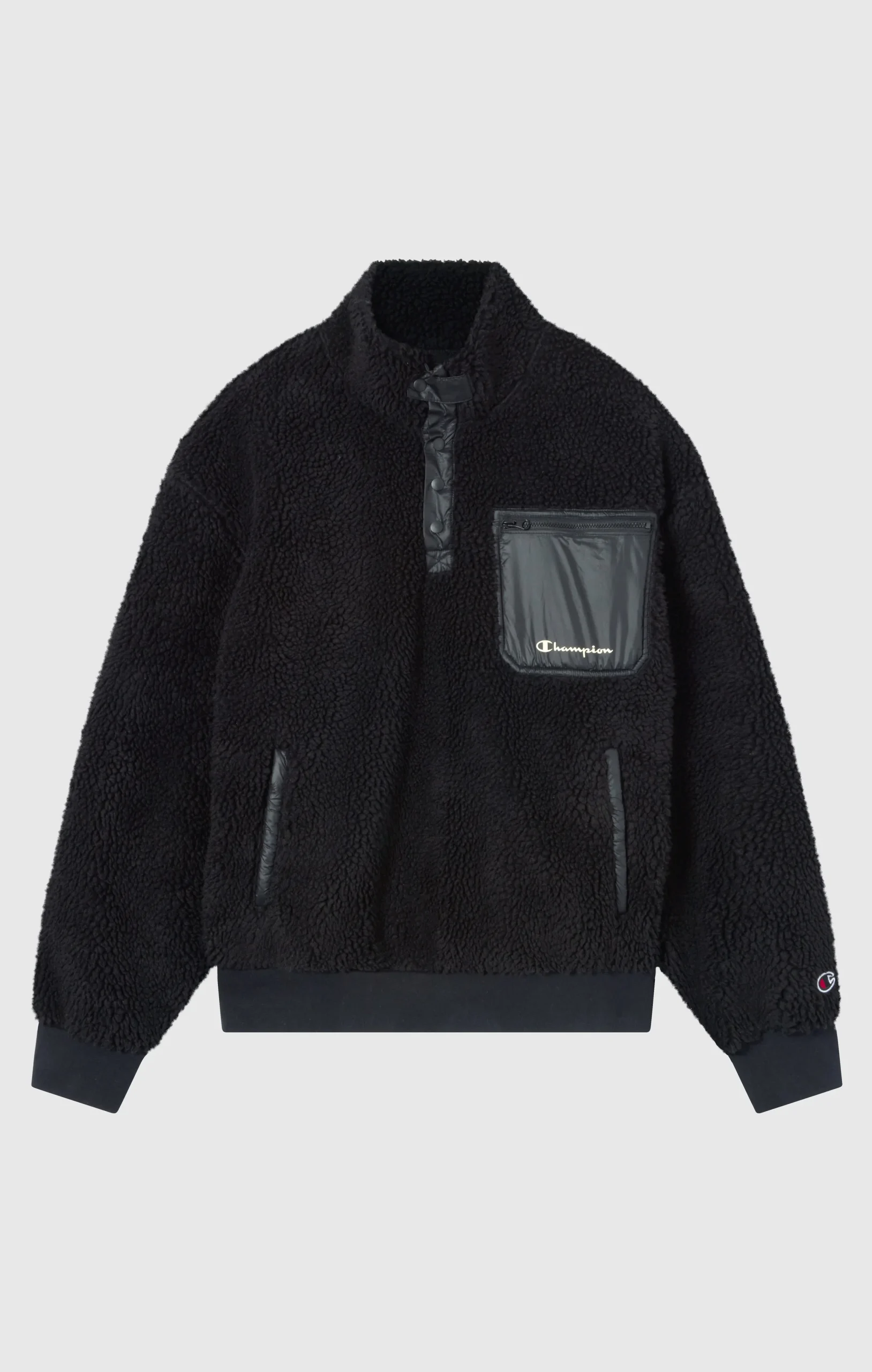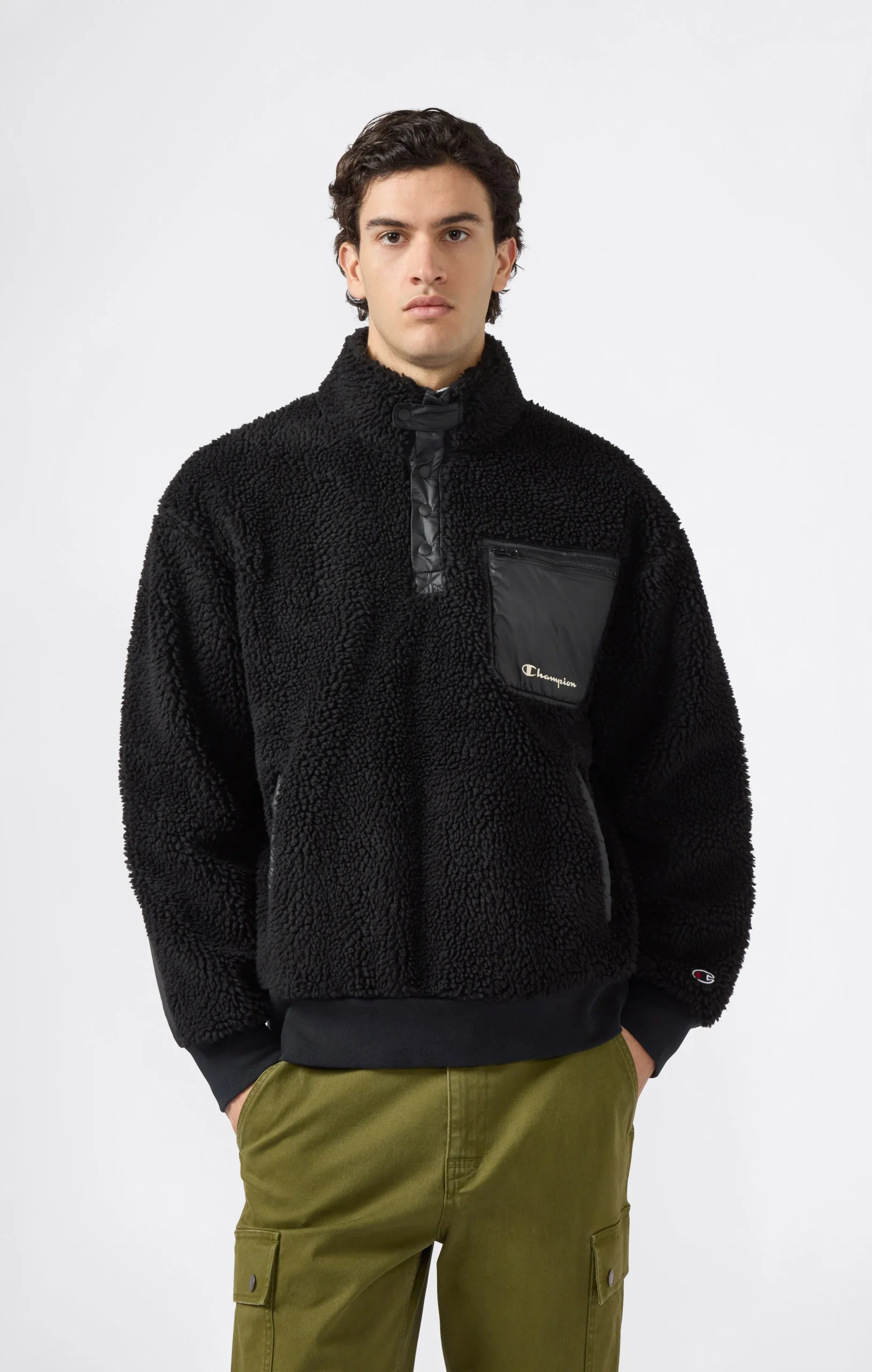 Morbida e calda, questa giacca mezza zip in teddy è perfetta per affrontare l’inverno con stile. Realizzata in tessuto effetto peluche, presenta inserti in nylon lucido e opaco che aggiungono un tocco tecnico e contemporaneo. La tasca con zip sul petto e il logo Champion ricamato completano il design.@@@Fabric: Polar fleece teddy, weight: 540 g/m² |Composition: 100% Polyester |Second fabric: Light nylon (35 g/m²), smooth to the touch, with glossy and matte contrasts, weight: 35 g/m² |Composition: 100% Polyamide |Fit: Standard Fit: Versatile and comfortable fit with standard width and length. Close to the body with simple lines that do not shape the figure. Regular shoulder cut.