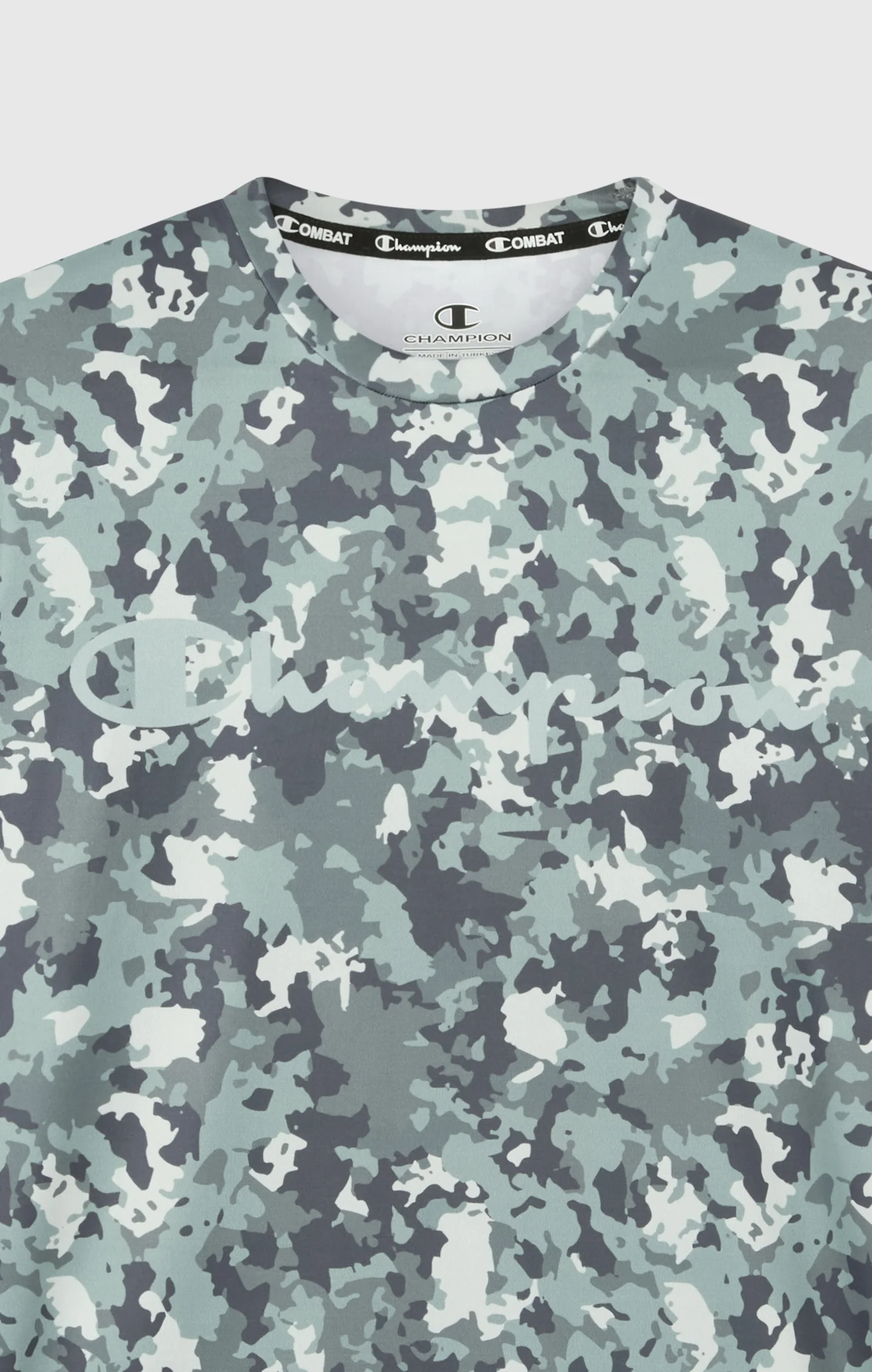 The Champion Combat capsule, developed together with UFC Heavyweight Champion Tom Aspinall and undisputed super-lightweight Champion Katie Taylor, was created with a clear goal: to design pieces that keep up with the toughest training sessions. The Men’s Combat Quick-Dry T-Shirt is made from lightweight, breathable fabric with “C-Dry” (Quick Dry) technology, ensuring fast drying and lasting comfort. A reflective logo and camo graphic deliver a bold, technical look, while the ergonomic construction guarantees maximum freedom of movement. Built to support you without compromise—from training to recovery.@@@Key Features: |C-Dry Quick Dry: rapid drying and optimal sweat management |Lightweight Fabric: breathable and ultra-light for total comfort |Sublimatic Logo: distinctive Champion Combat graphic detail |Technical Details: |Fabric: 140 gr. Interlock |Composition: 100% Polyester |Characteristics: Quick Dry – Lightweight |Athlete Benefits: |Freshness and lightness during intense workouts |Optimal heat and sweat control with Quick Dry technology |Maximum freedom of movement with lightweight fabric