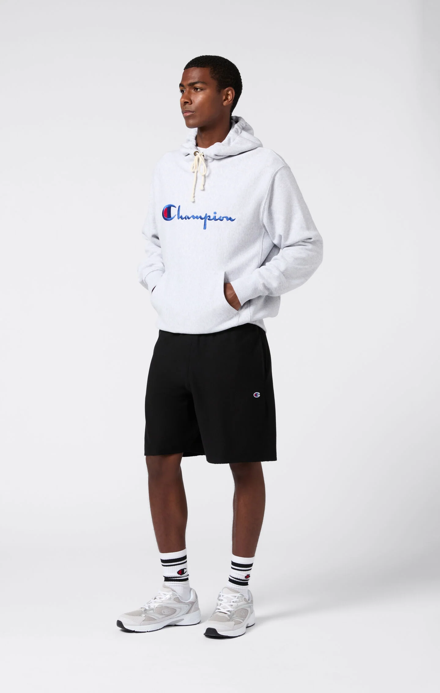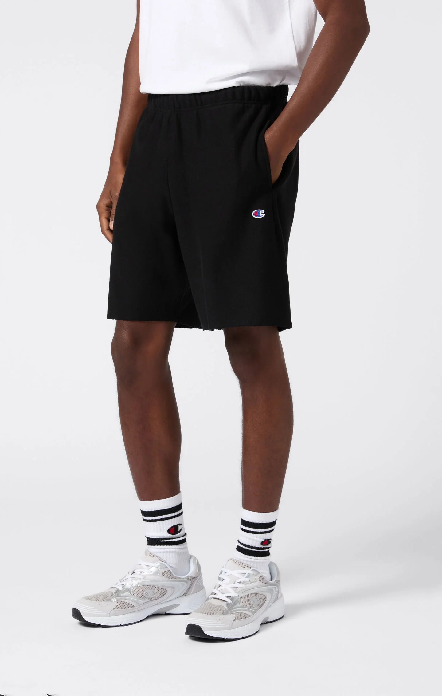 These wide-fit shorts represent the perfect combination of modern comfort and authentic Champion sports style. Made from the iconic Reverse Weave fabric, a technology patented by Champion in the 1930s that prevents shrinkage and deformation while ensuring resistance and durability, they are designed to gently drape over your body with their relaxed cut. The embroidered Champion logo completes the look, adding a distinctive touch that recalls the brand’s rich heritage.@@@Fabric: Soft Reverse Terry, 400 g/m²|Composition: 82% cotton, 18% polyester|Iconic embroidered C-logo patch|Loose Fit: relaxed fit featuring extra fullness for peak comfort and style, designed to sit loosely without clinging|Model is: 185 cm and is wearing size M|We recommend choosing one size down from your usual.