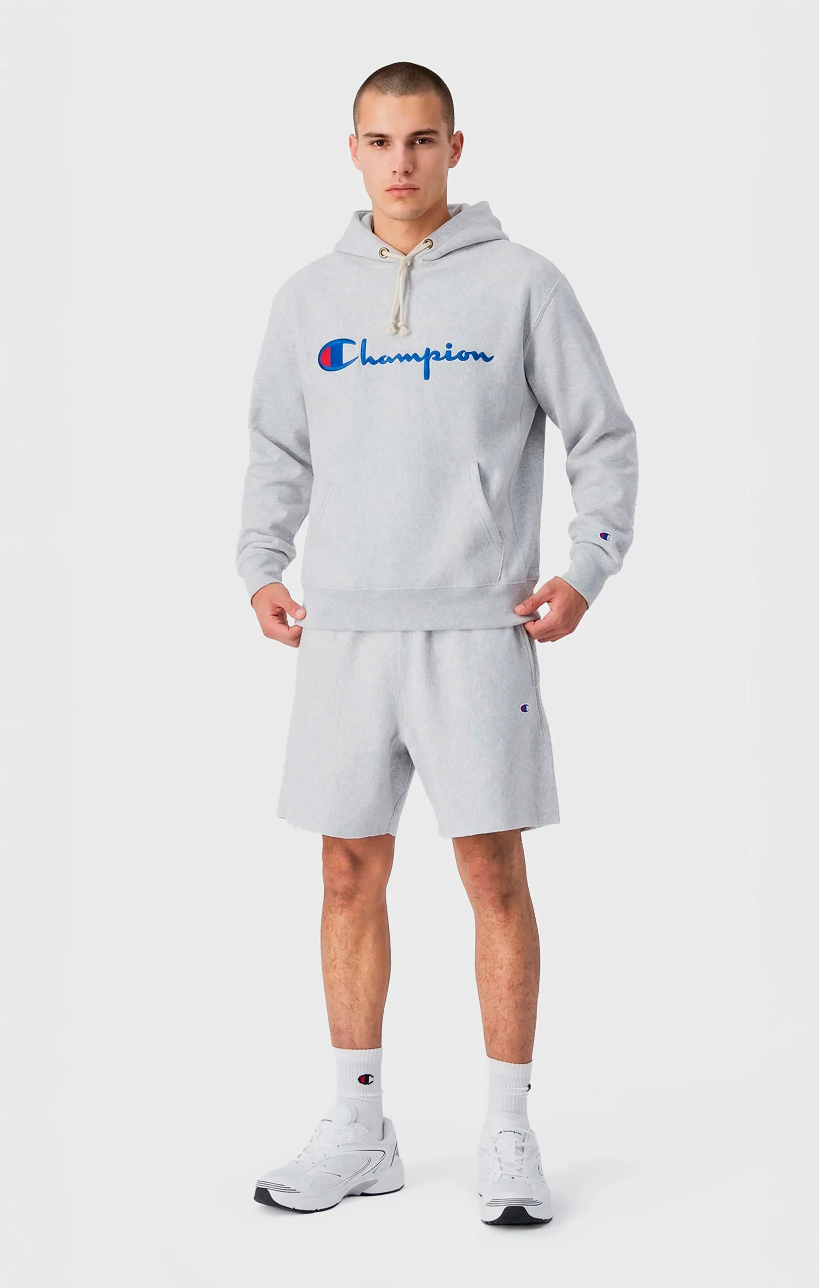 These wide-fit shorts represent the perfect combination of modern comfort and authentic Champion sports style. Made from the iconic Reverse Weave fabric, a technology patented by Champion in the 1930s that prevents shrinkage and deformation while ensuring resistance and durability, they are designed to gently drape over your body with their relaxed cut. The embroidered Champion logo completes the look, adding a distinctive touch that recalls the brand’s rich heritage.@@@Fabric: Soft Reverse Terry, 400 g/m²|Composition: 82% cotton, 18% polyester|Iconic embroidered C-logo patch|Loose Fit: relaxed fit featuring extra fullness for peak comfort and style, designed to sit loosely without clinging|Model is: 185 cm and is wearing size M|We recommend choosing one size down from your usual.
