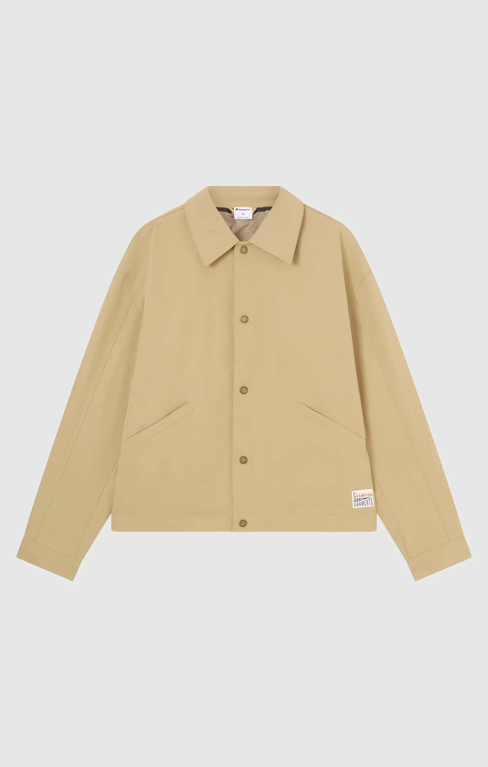Men’s shirt jacket with a clean, versatile design, created for everyday wear and transitional seasons. Made from woven polyester fabric with a water-resistant finish, it provides reliable protection against light weather while maintaining a compact and durable structure. The essential cut, inspired by workwear style and reinterpreted with an urban attitude, is completed by functional details and Champion’s heritage aesthetic for a practical and contemporary look.@@@Regular Standard Fit for everyday comfort |Shirt-style jacket construction |Woven polyester fabric with water-resistant finish |Front side pockets |Front button closure |Composition: 100% Polyester |Fabric weight: 276 g/m²