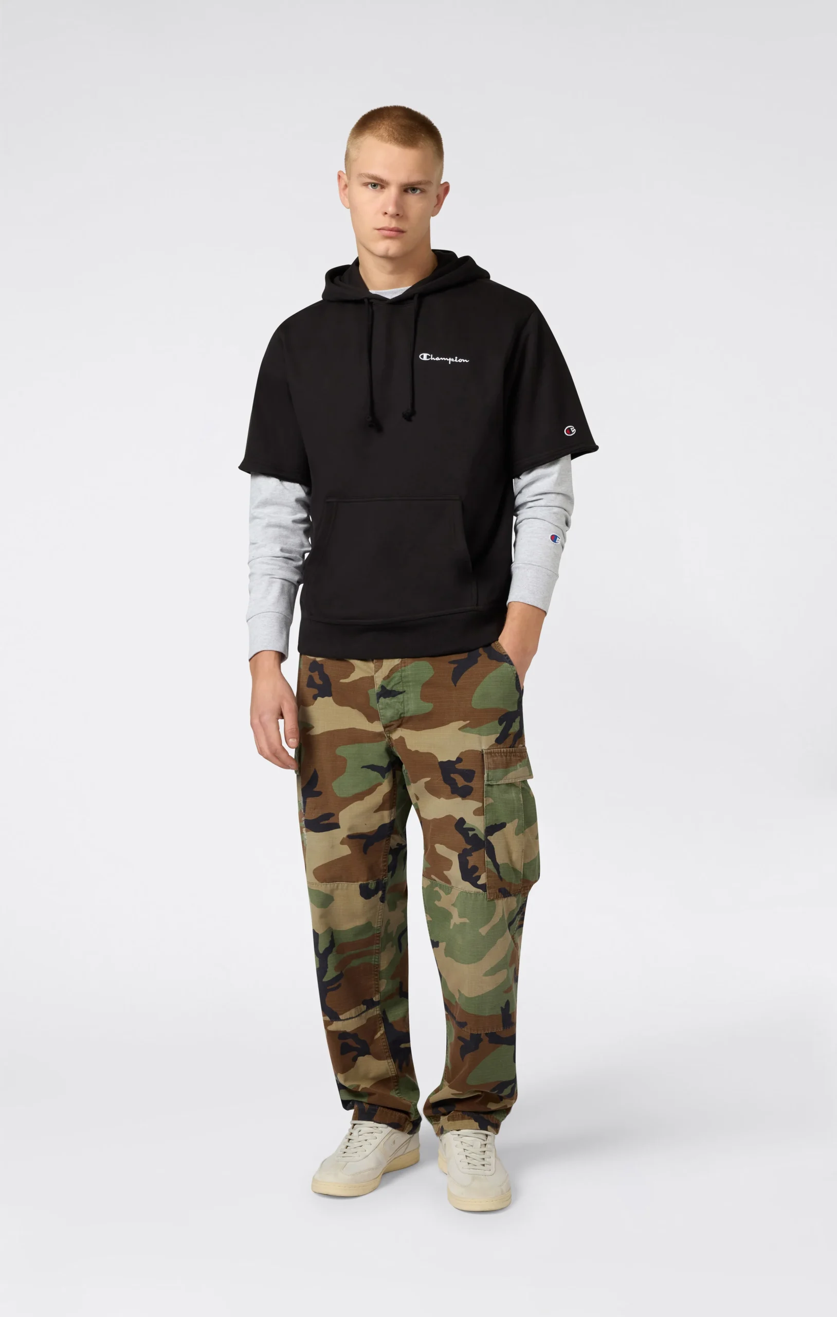 This men’s short sleeve hooded sweatshirt is made from lightweight terry fabric, ideal for everyday wear and transitional seasons. The clean design is finished with an embroidered Champion logo on the chest for a simple and recognizable look. The Relax fit ensures comfort and ease of movement.@@@Fit: Relax, comfortable and roomy |Fabric: Heavy Soft Compact Spring Poly Terry |Composition: 70% Cotton, 30% Polyester |Weight: 310 g/m² |Lightweight short sleeve hoodie |Unbrushed interior |Fixed hood |Embroidered Champion logo on the chest |Ribbed hem
