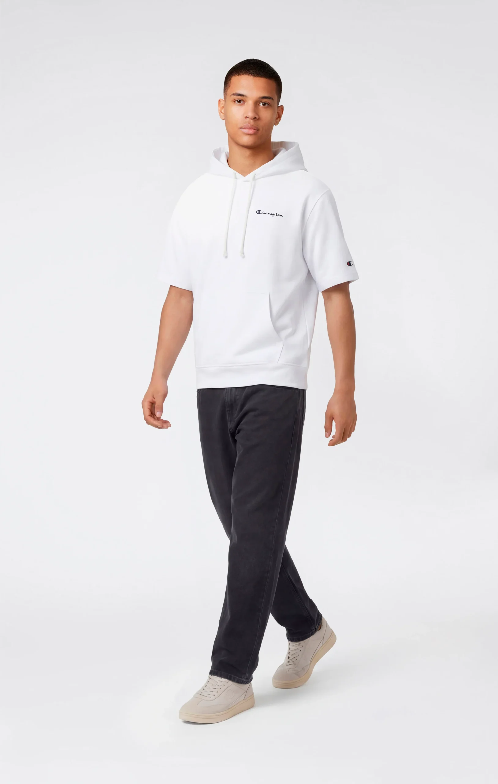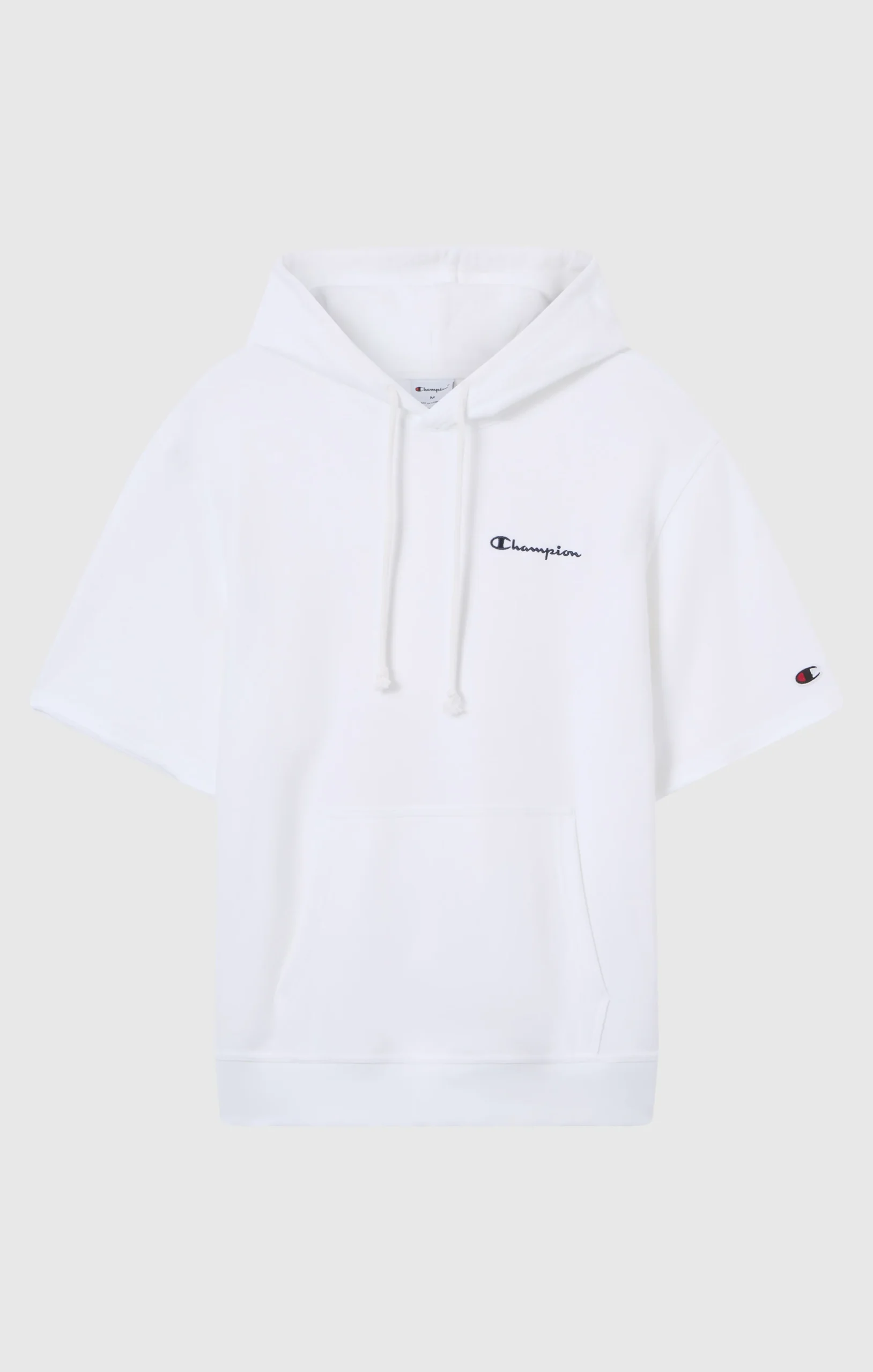 This men’s short sleeve hooded sweatshirt is made from lightweight terry fabric, ideal for everyday wear and transitional seasons. The clean design is finished with an embroidered Champion logo on the chest for a simple and recognizable look. The Relax fit ensures comfort and ease of movement.@@@Fit: Relax, comfortable and roomy |Fabric: Heavy Soft Compact Spring Poly Terry |Composition: 70% Cotton, 30% Polyester |Weight: 310 g/m² |Lightweight short sleeve hoodie |Unbrushed interior |Fixed hood |Embroidered Champion logo on the chest |Ribbed hem