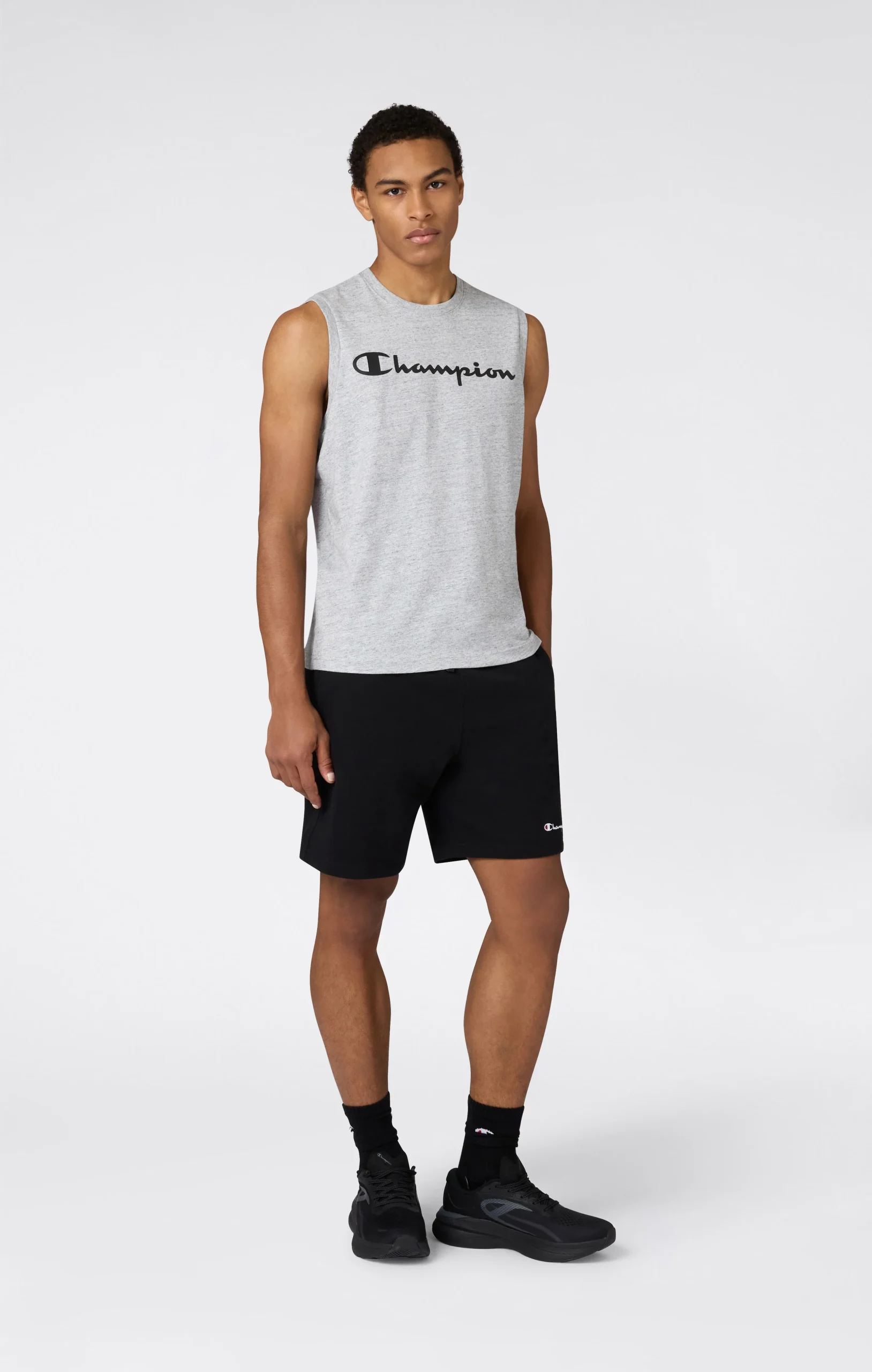 This men’s sleeveless T-shirt is part of Champion’s classics and is made from lightweight combed cotton jersey, soft and comfortable against the skin. The regular fit ensures a clean silhouette and everyday comfort. The essential design is defined by a large printed Champion logo on the chest, an iconic and instantly recognizable detail.@@@Fit: Standard Fit – comfortable, regular line |Fabric: Athletic Jersey Combed, lightweight and soft cotton jersey |Composition: 100% Cotton |Weight: 180 g/m² |Design: sleeveless T-shirt |Details: wide armholes |Logo: maxi printed Champion logo on the chest