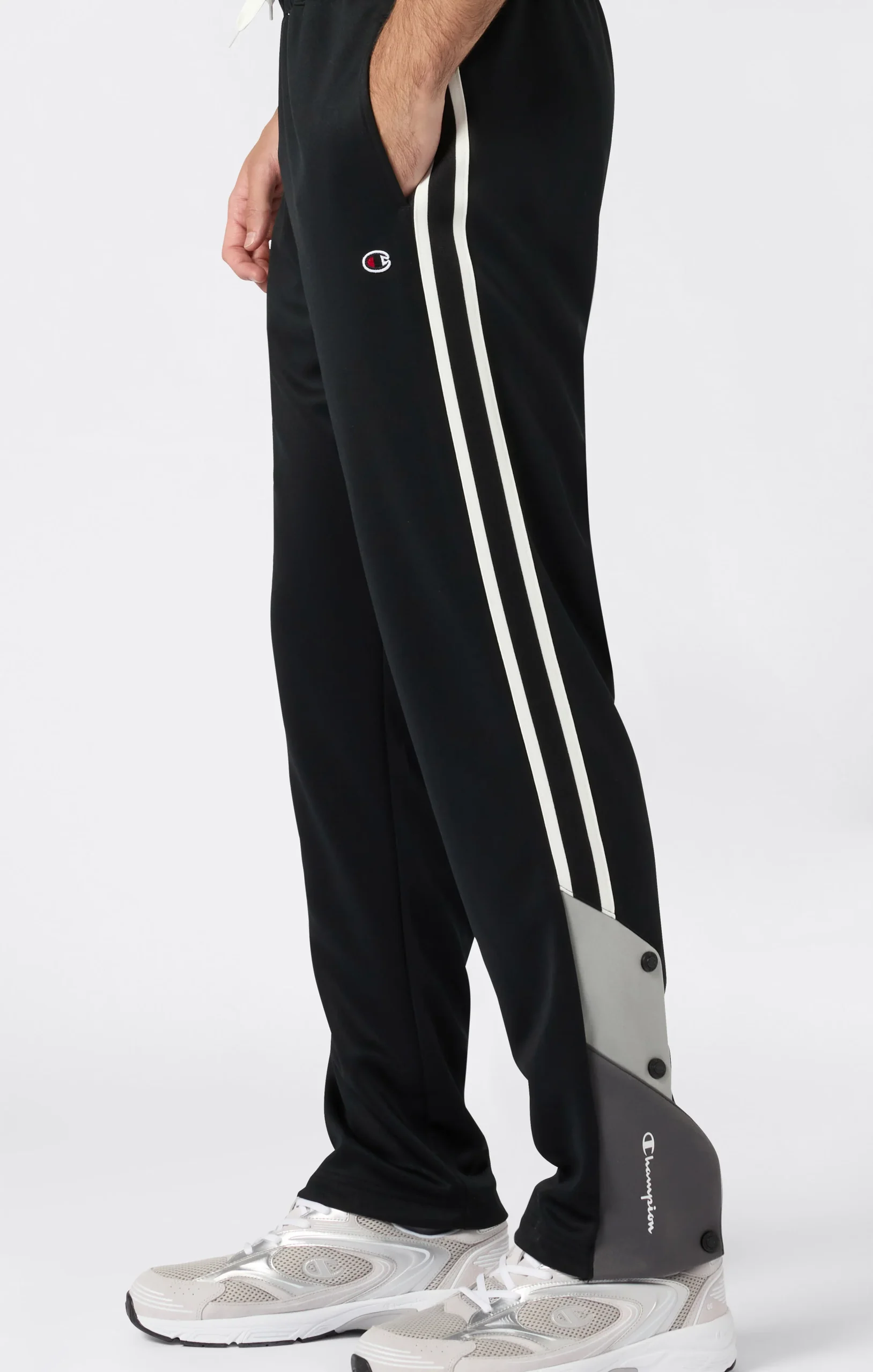 Un pantalone dallo stile sportivo e versatile, pensato per muoversi con libertà in ogni contesto urbano. Le bande laterali a contrasto e gli inserti colorblock sul fondo gamba definiscono il look, mentre la chiusura con bottoni automatici permette una regolazione personalizzata. Le tasche frontali oblique sono integrate con discrezione nella linea per massima praticità senza rinunciare allo stile.@@@Fabric: Interlock 300 g/m² |Composition: 100% polyester |Leg hem closure with snap buttons |Contrasting side stripes |Slanted front pockets |Fit: Standard Fit: Soft and comfortable