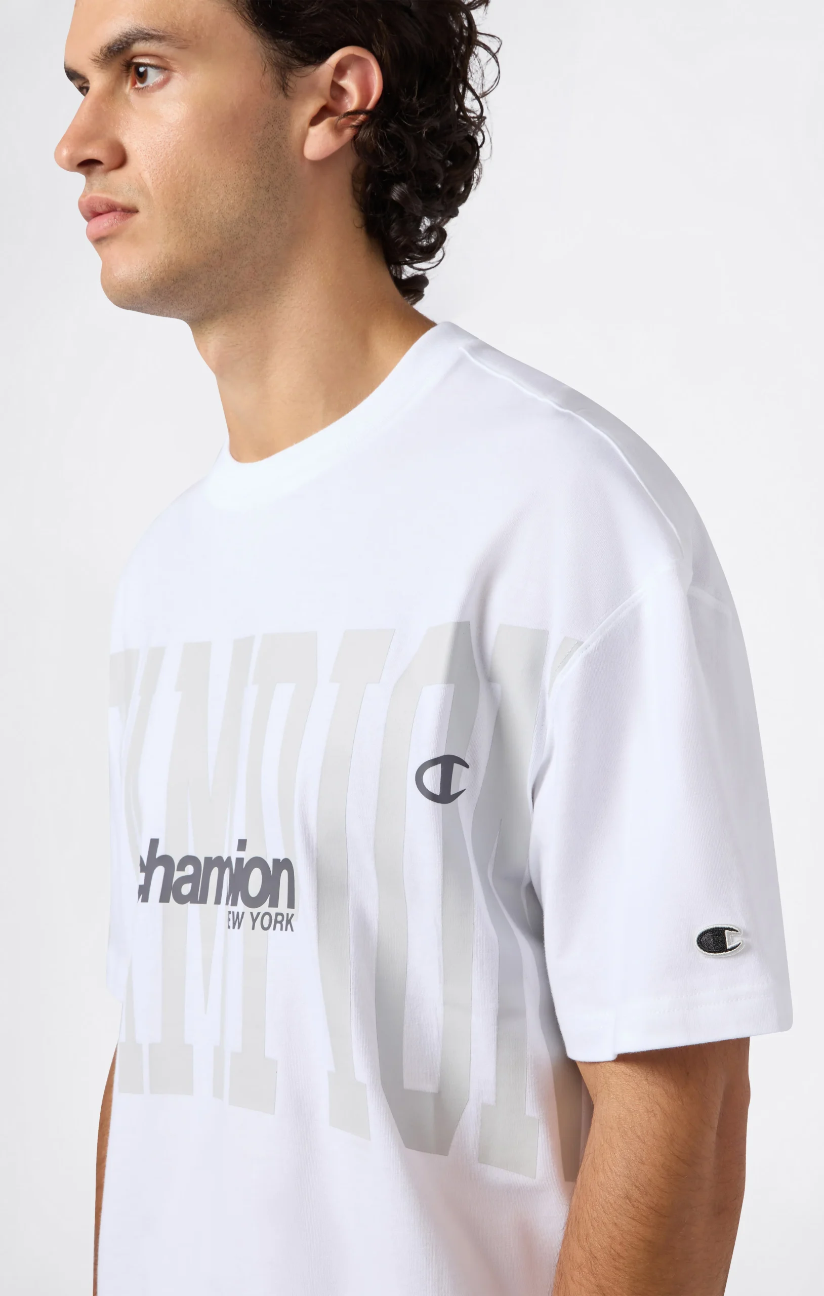 Part of the Urban Contemporary collection, this T-shirt with a maxi front graphic reinterprets ’90s streetwear with a modern edge. Made from compact combed cotton jersey (200 g/m²), it delivers bold comfort and a distinctive style inspired by hip hop culture and the urban fashion of metropolitan communities.@@@Fabric: Compact combed cotton jersey, 200 g/m² |Composition: 100% Cotton |Loose Fit: Loose fit with dropped shoulder, wide sleeve, and regular length.