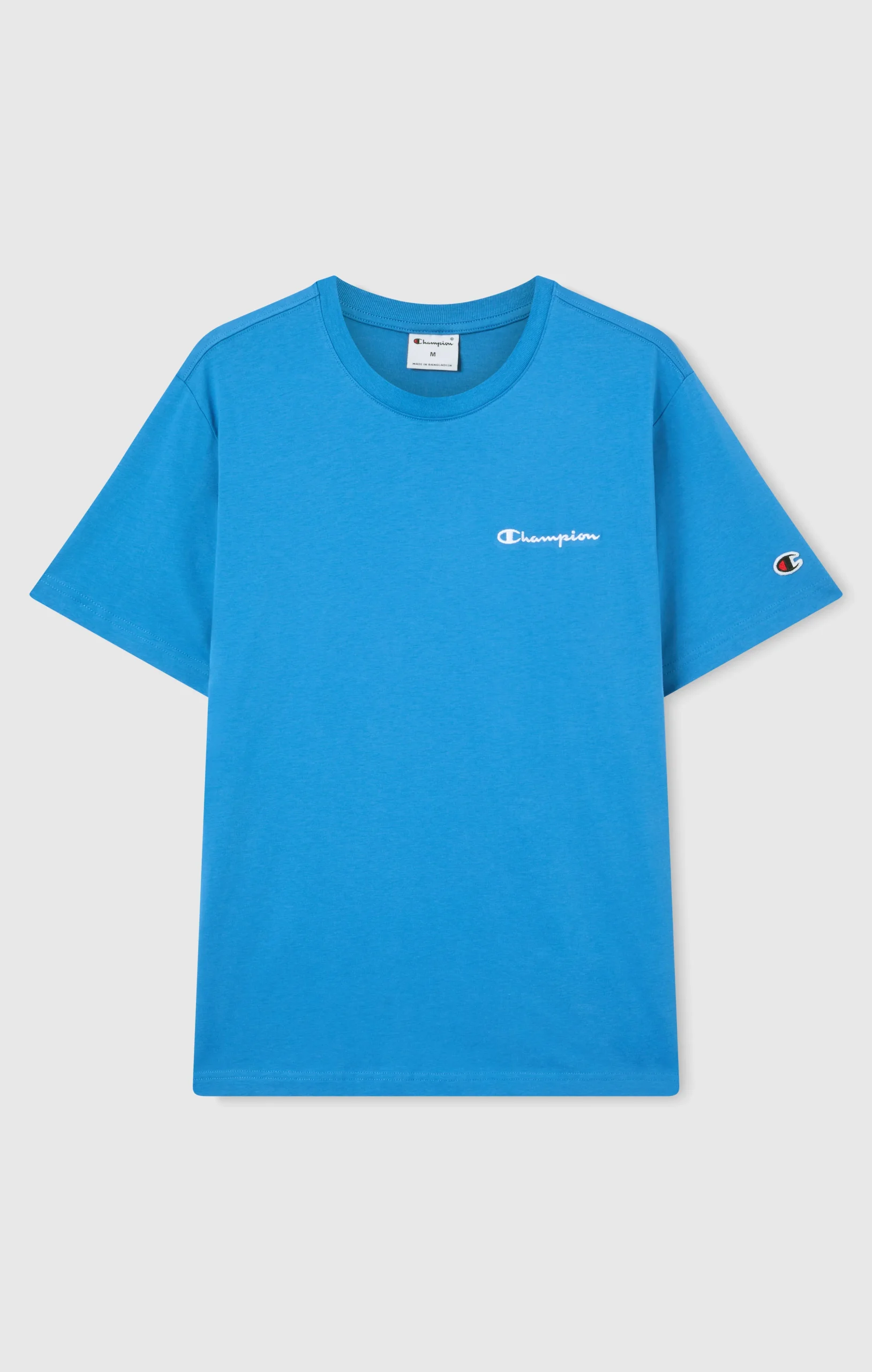 Essential lines and timeless comfort—this crewneck t-shirt is part of the Icons line, which elevates everyday basics with premium materials. Made from 180 g/m² combed cotton jersey, it feels soft on the skin and stands up to frequent washing. An embroidered Champion logo on the chest and C logo on the sleeve add a subtle signature touch. The Standard Fit follows the body’s natural shape without clinging, offering everyday comfort and versatile style.@@@Fabric: Combed cotton jersey – 180 g/m² |Composition: 100% Cotton |Ribbed collar |Embroidered Champion logo on chest |C logo on left sleeve |Fit: Standard Fit – versatile and comfortable with standard widths and lengths. Follows the body without clinging. Regular shoulder cut.