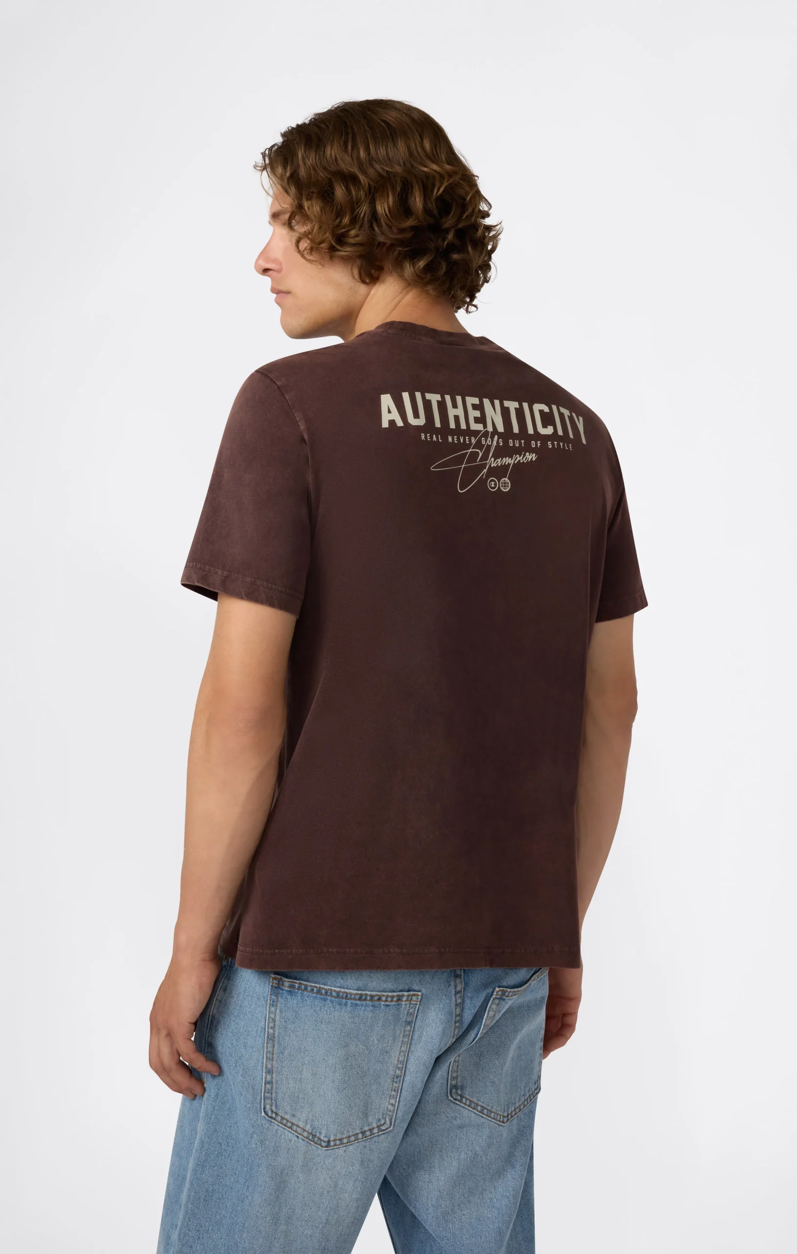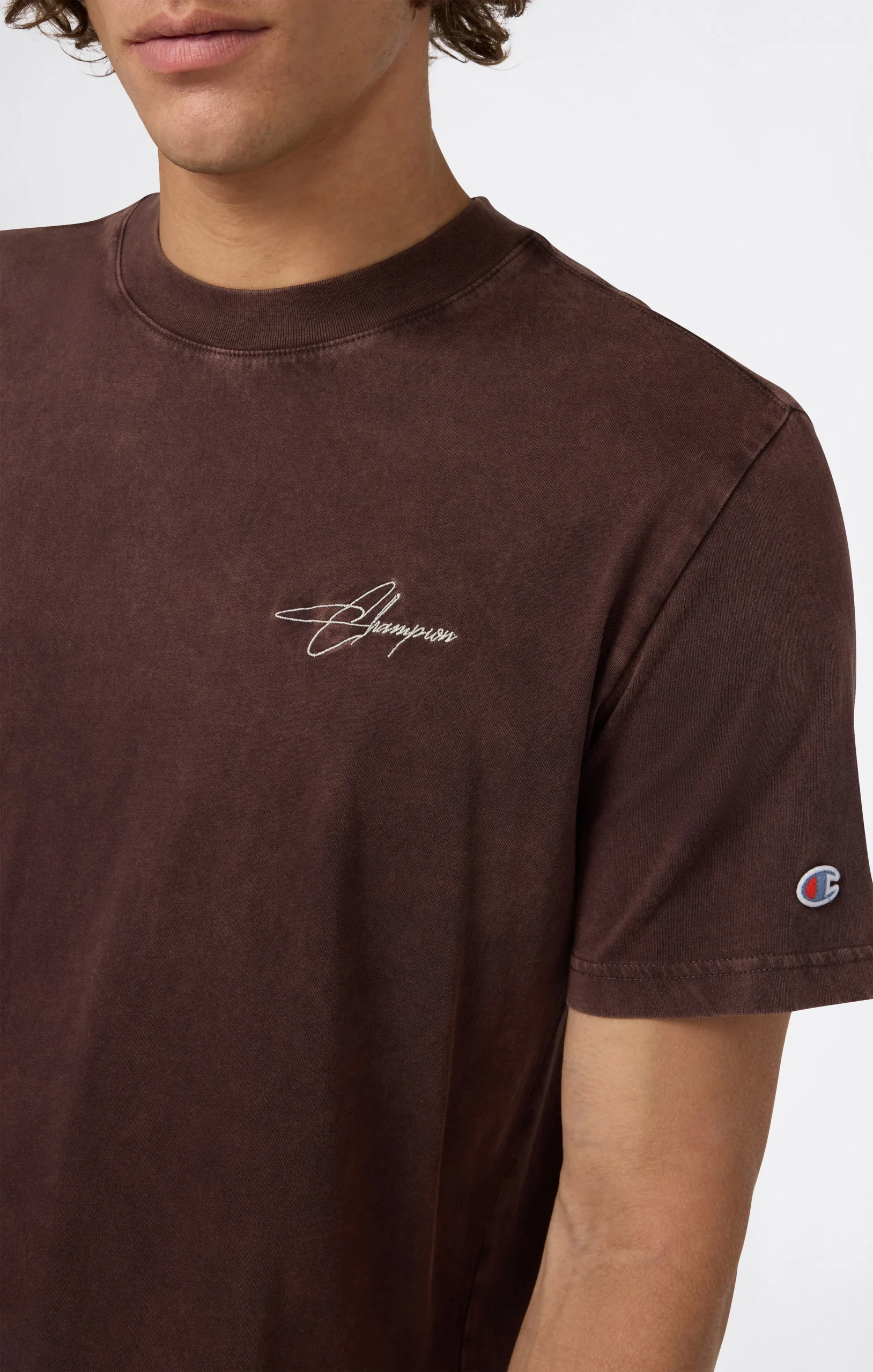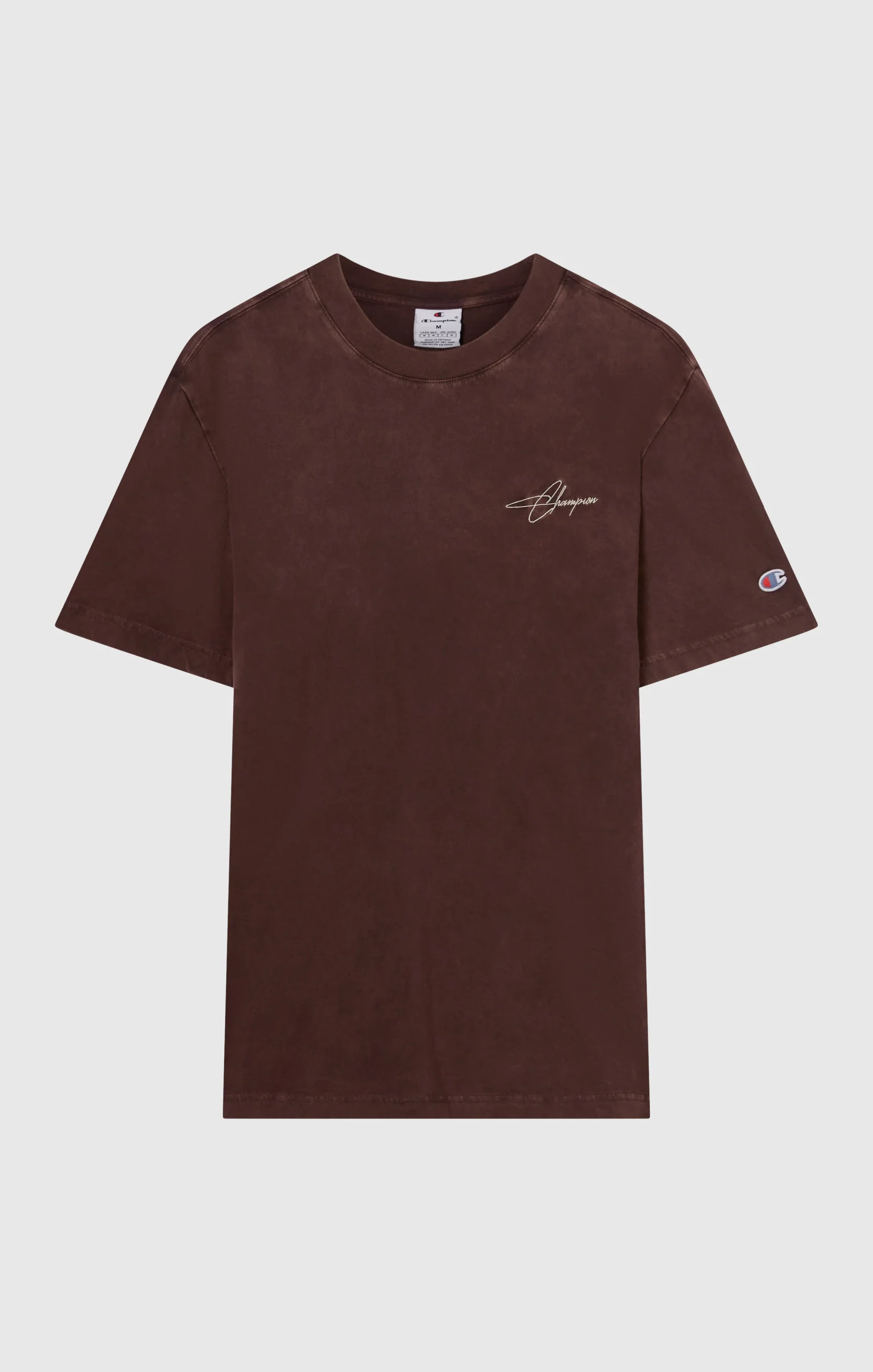 With a lived-in, authentic look, this washed crewneck t-shirt is a must-have for a relaxed yet refined style. Made from compact combed cotton jersey, it delivers softness and comfort wear after wear. The relaxed fit offers freedom of movement, while the small front logo and graphic print add distinctive Champion identity and style.@@@Fabric: Compact combed cotton jersey – 180 g/m² |Composition: 100% Cotton |Washed treatment with faded effect |Printed logo and graphic details |Reinforced ribbed collar |Fit: Relax Fit – loose and comfortable, slightly dropped on the shoulders