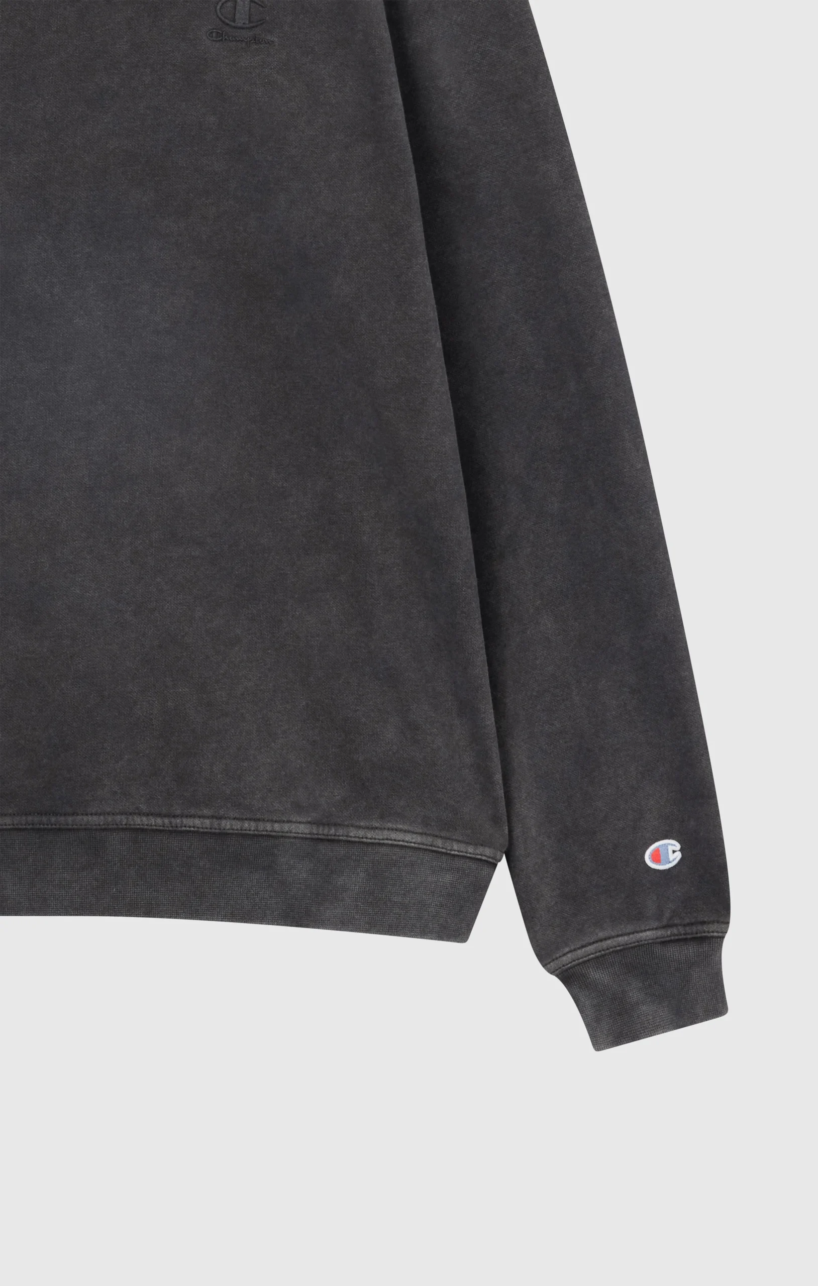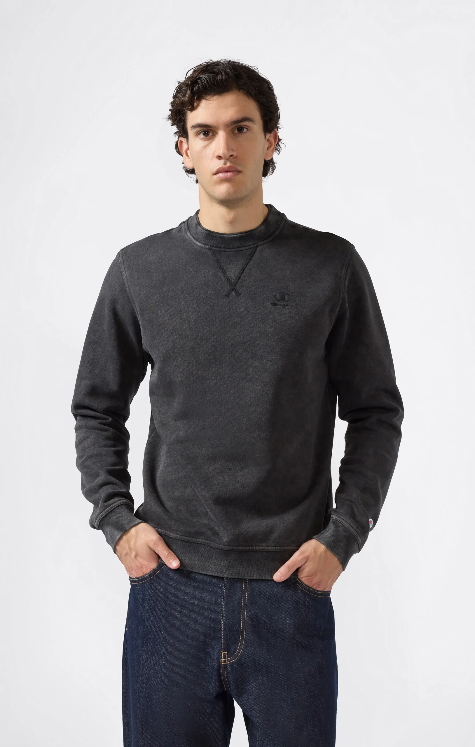 An iconic sweatshirt updated with a mineral wash finish, delivering a naturally faded look on seams and surface for a worn-in, authentic feel. The tonal embroidered logo on the chest adds a subtle yet distinctive Champion touch. Made from heavyweight fleece (310 g/m²), it offers comfort and structure, complete with a standard fit and premium details like a reinforced ribbed collar.@@@Fabric: Heavy compact and soft fleece – 310 g/m² |Composition: 70% Cotton / 30% Polyester |Brushed interior for superior thermal comfort |Mineral wash treatment for a faded effect |Double ribbed collar |Tone-on-tone embroidered logo |Elasticated finishes on cuffs and hem |Fit: Standard Fit – versatile and comfortable with standard widths and lengths. Follows the body without clinging. Regular shoulder cut.