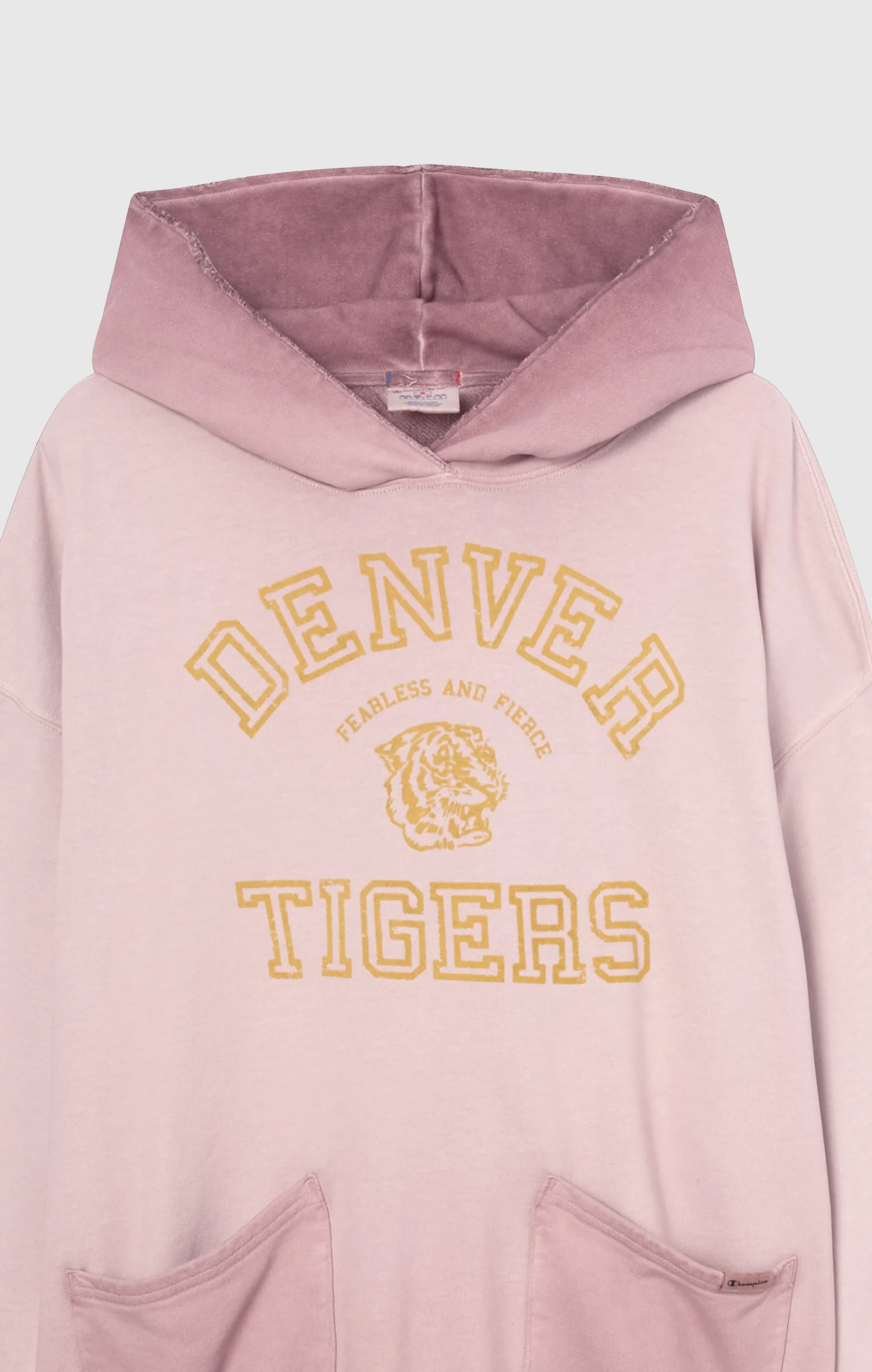Inspired by authentic American college uniforms, this men’s hooded sweatshirt from the Time Capsule line celebrates Champion’s heritage with a contemporary vision. The Luna Dye wash creates a unique faded effect with richer color inside and faded tones outside, for an authentic, lived-in look. The flock graphic on the chest is taken directly from the brand’s original archives, while the raw-cut hood and loose fit with dropped shoulders complete a piece that reinvents the past with style.@@@Fabric: Heavyweight terry – 510 g/m² |Composition: 100% Cotton |Luna Dye wash with faded effect |Raw-cut hood |Original college-style flock graphic from the archive |Front “coach” pocket |Ribbed cuffs and hem |Tone-on-tone patch on sleeve |Embroidered logo on the cuff |Fit: Loose Fit – oversized cut with dropped shoulders
