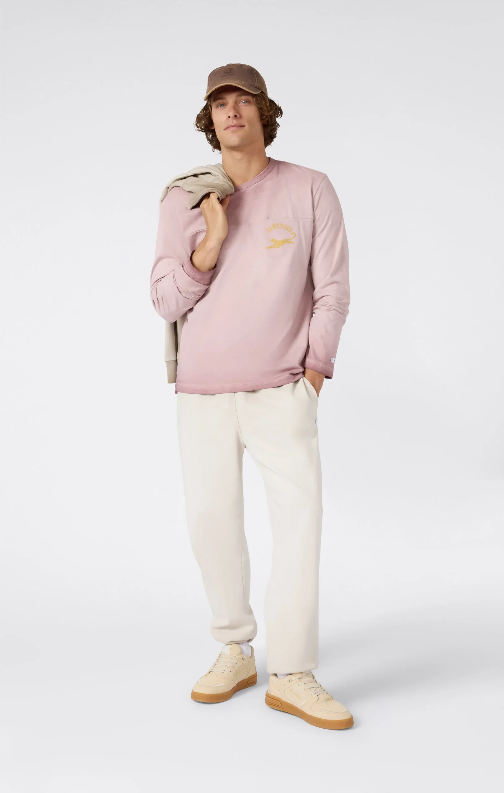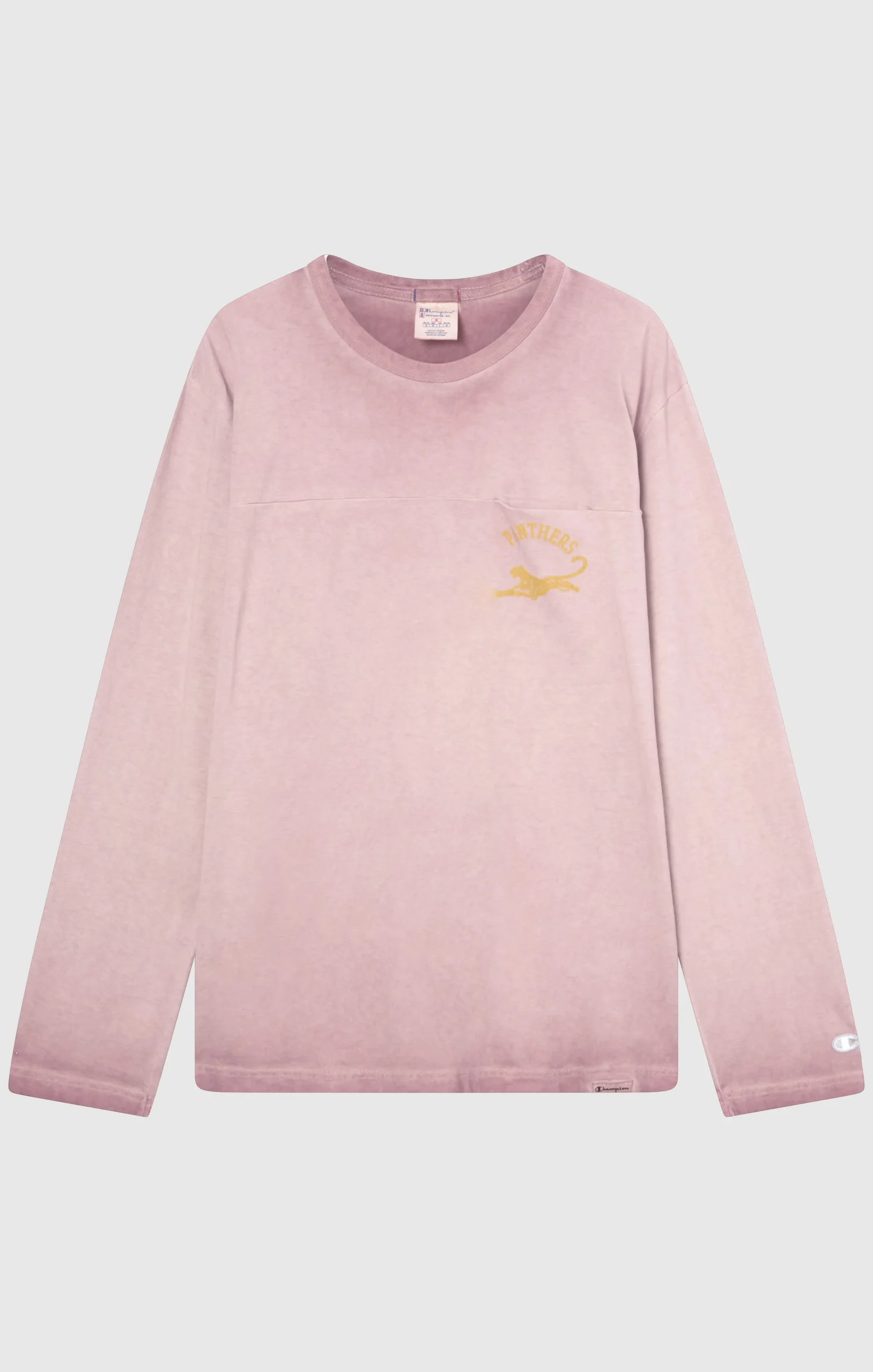 This long-sleeve shirt from the Time Capsule line reinterprets Champion’s heritage with an authentic and contemporary aesthetic. The Luna Dye wash gives the garment a unique faded effect, with rich color inside and lighter tones outside. The flock print is taken from the brand’s historic archives, inspired by American college uniforms. The loose fit and lightweight fabric make it perfect for a relaxed look with strong vintage character.@@@Fabric: Heavyweight jersey – 250 g/m² |Composition: 100% Cotton |Luna Dye wash with faded effect |Archive flock graphic |Front chest pocket |Fit: Loose Fit – wide cut with dropped shoulder