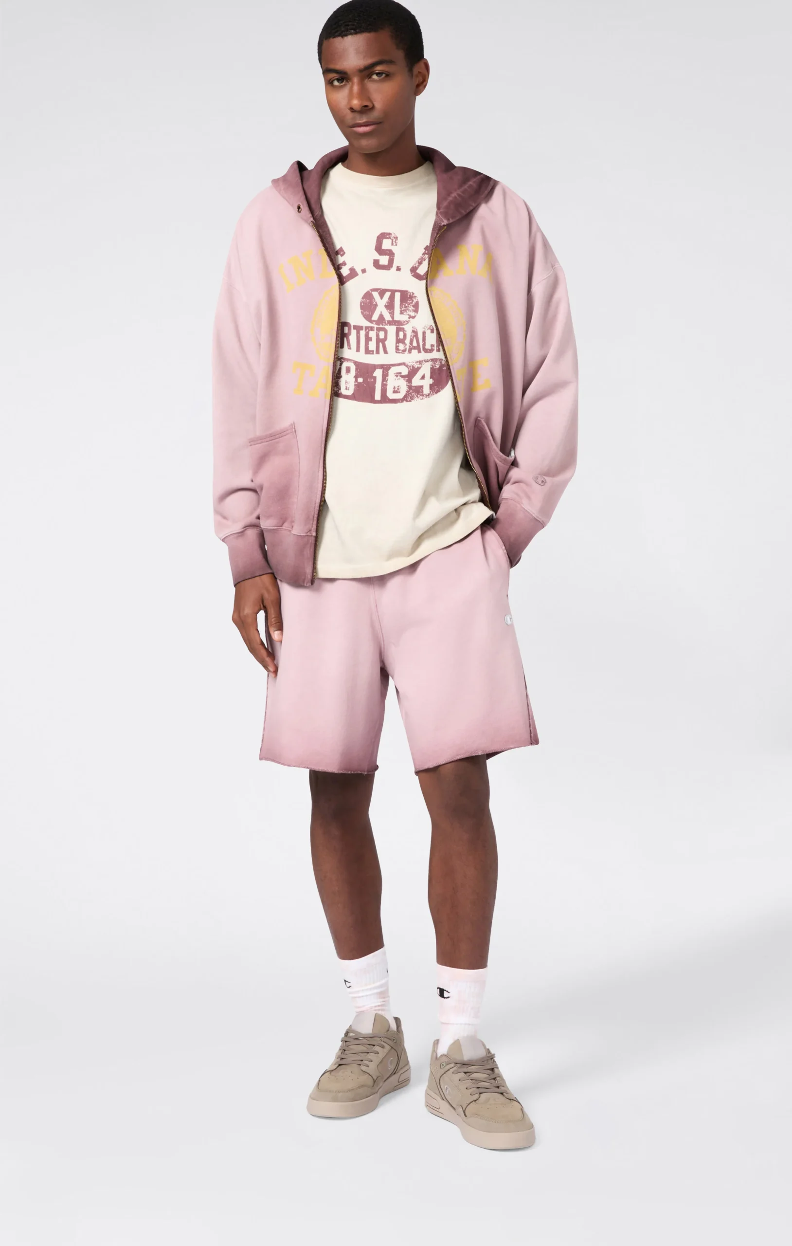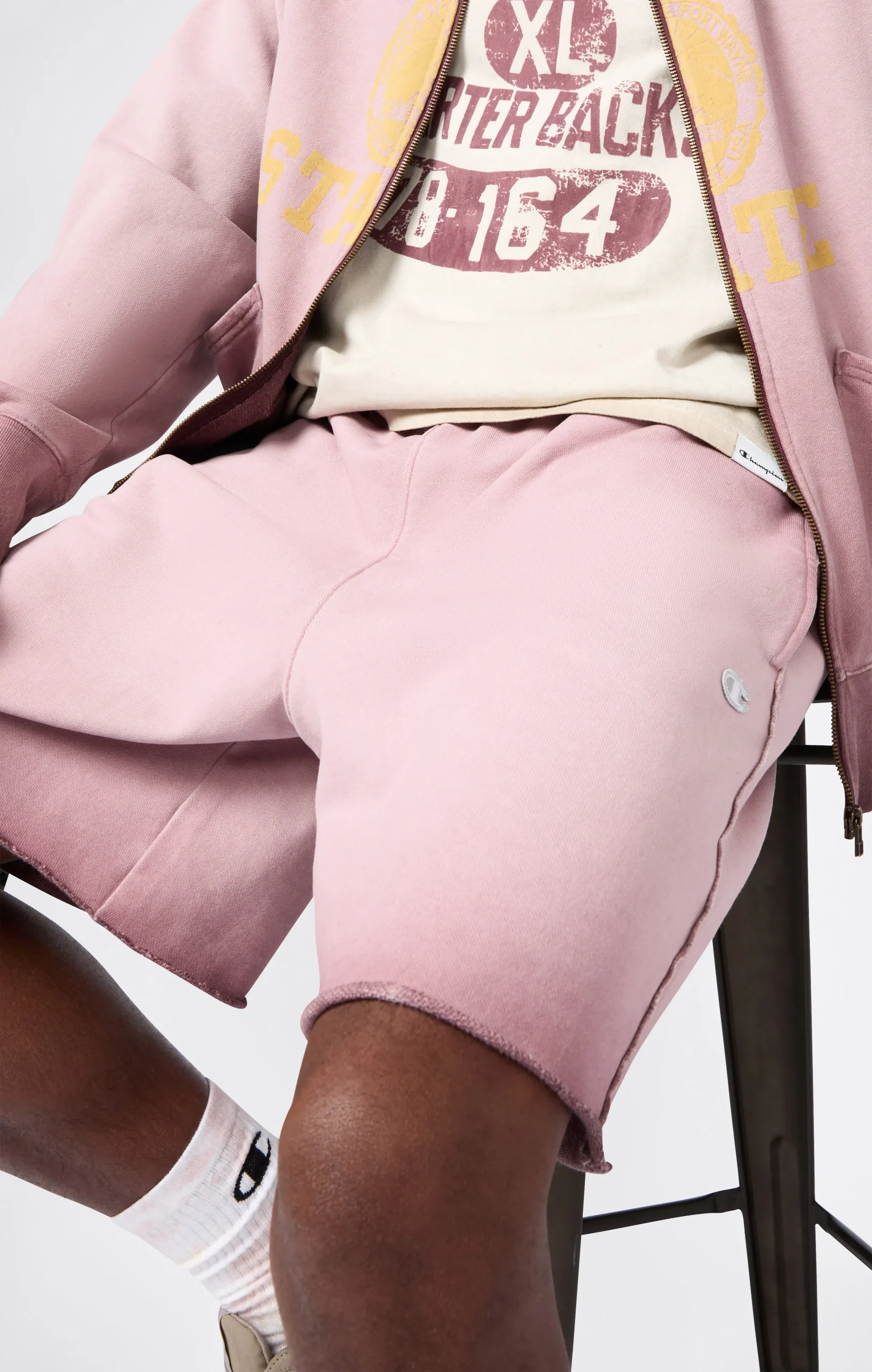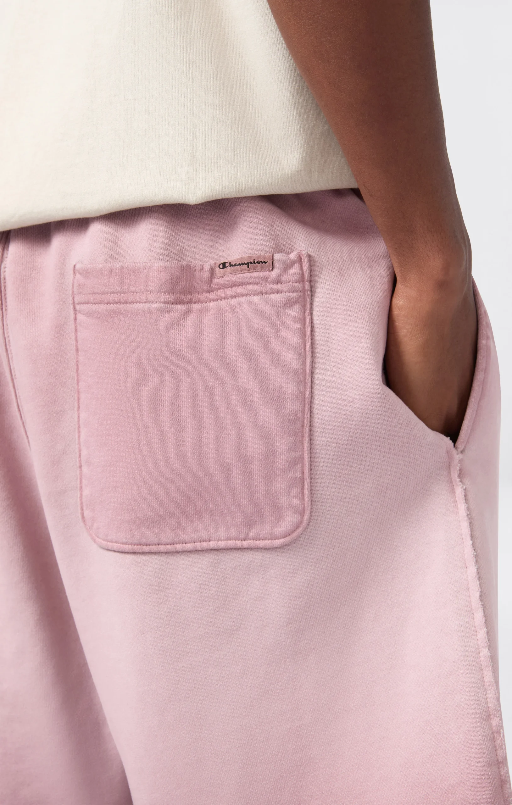 A classic of the sports wardrobe reinterpreted according to Champion’s heritage DNA: these men’s bermuda shorts from the Time Capsule line combine comfort and retro style with a modern spirit. The Luna Dye wash gives the fabric a unique faded effect, while the loose fit and soft lines recall the authentic sportswear from the archives. Patch pockets and an elasticated waistband complete a piece ideal for relaxing with personality.@@@Fabric: Heavyweight terry – 510 g/m² |Composition: 100% Cotton |Luna Dye wash with faded effect |Elasticated waistband |Side pockets and patch pockets on the back |Raw-cut hem |Tone-on-tone heritage embroidered logo |Fit: Loose Fit – oversized, with soft lines and non-rigid fabrics for maximum comfort and a relaxed look