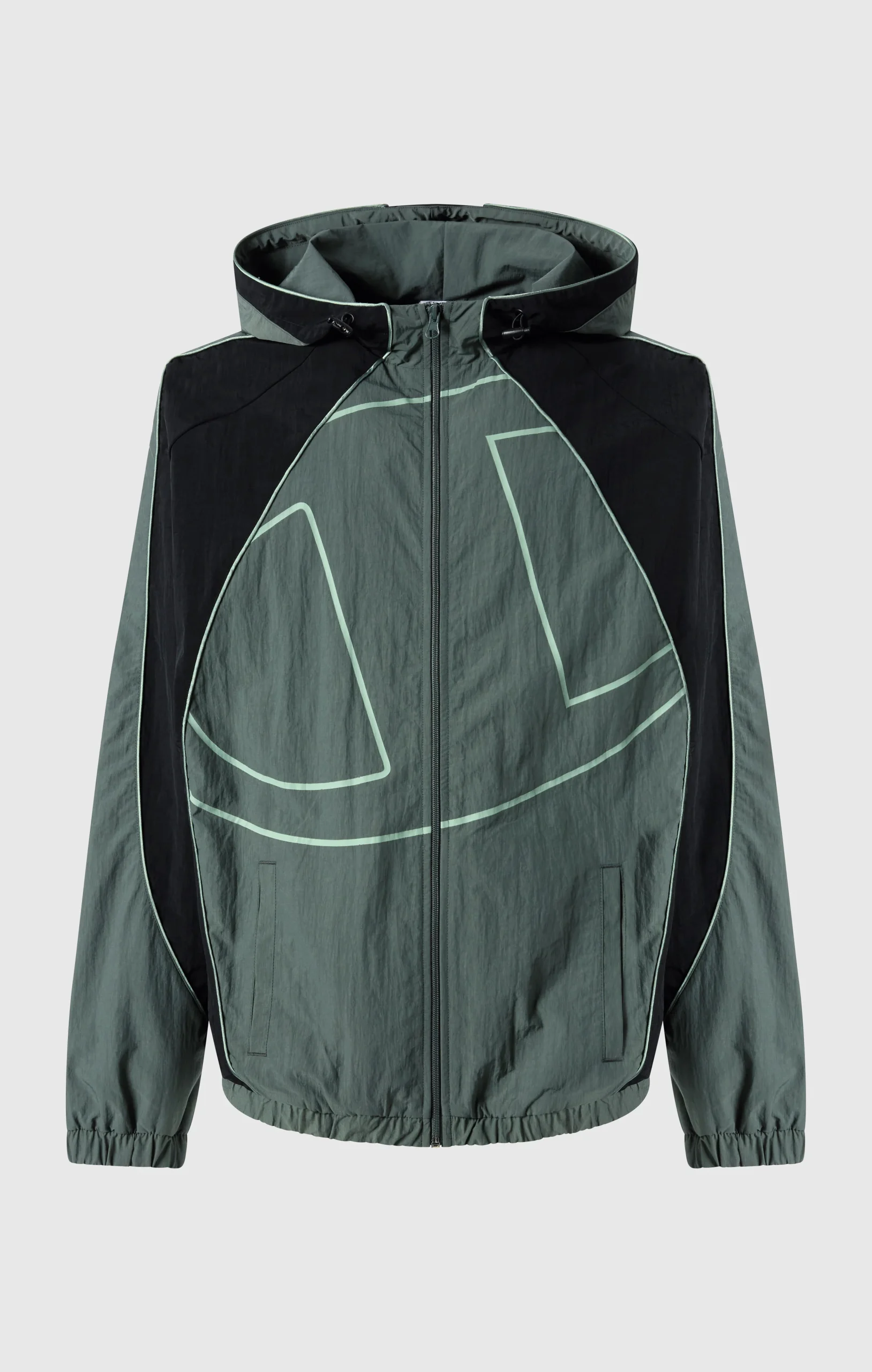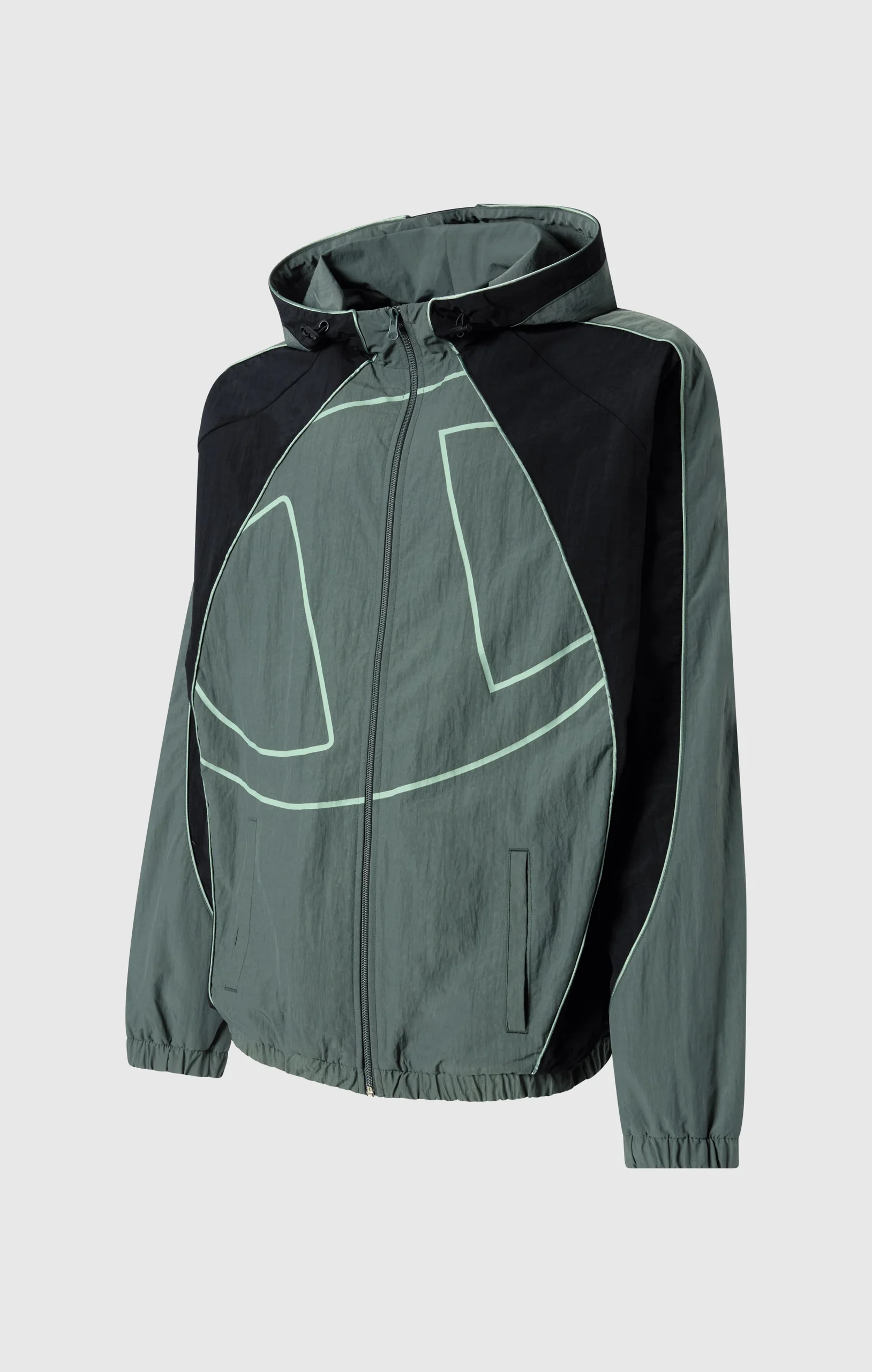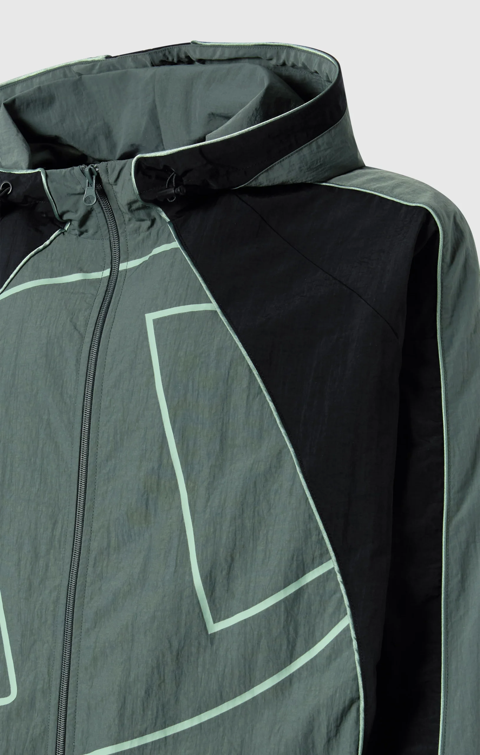 This full-zip hooded track top in woven nylon stands out for its relaxed, contemporary design. The loose fit ensures comfort and freedom of movement, while the oversized front logo adds a bold, sporty character. Made from lightweight yet durable fabric, it’s a versatile piece perfect for training or leisure, with an iconic look that won’t go unnoticed.@@@Fabric: Woven Nylon 115 gr |Composition: 100% polyamide |Loose Fit: Relaxed fit with dropped shoulders, wide sleeves, and regular length |Oversized front logo for a bold and sporty look |Adjustable hood with full front zip |Durable and lightweight fabric for everyday comfort