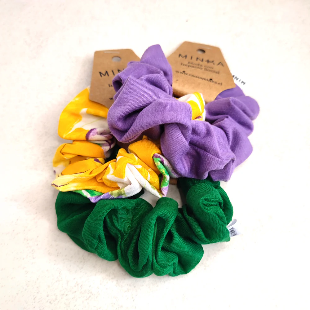 Los 90′ volvieron con todo! Los pinches al lado de la partidura, los colores fluor, las patas cortas y obvio los scrunchies! Porque son los preferidos, no cortan el pelo, sirven para las que tienen mucho o poco pelo y siempre NECESITAMOS más de uno! Estos packs de scrunchies Minka son lo mejor, porque tenemos 3 colores bellos que vienen juntos!!