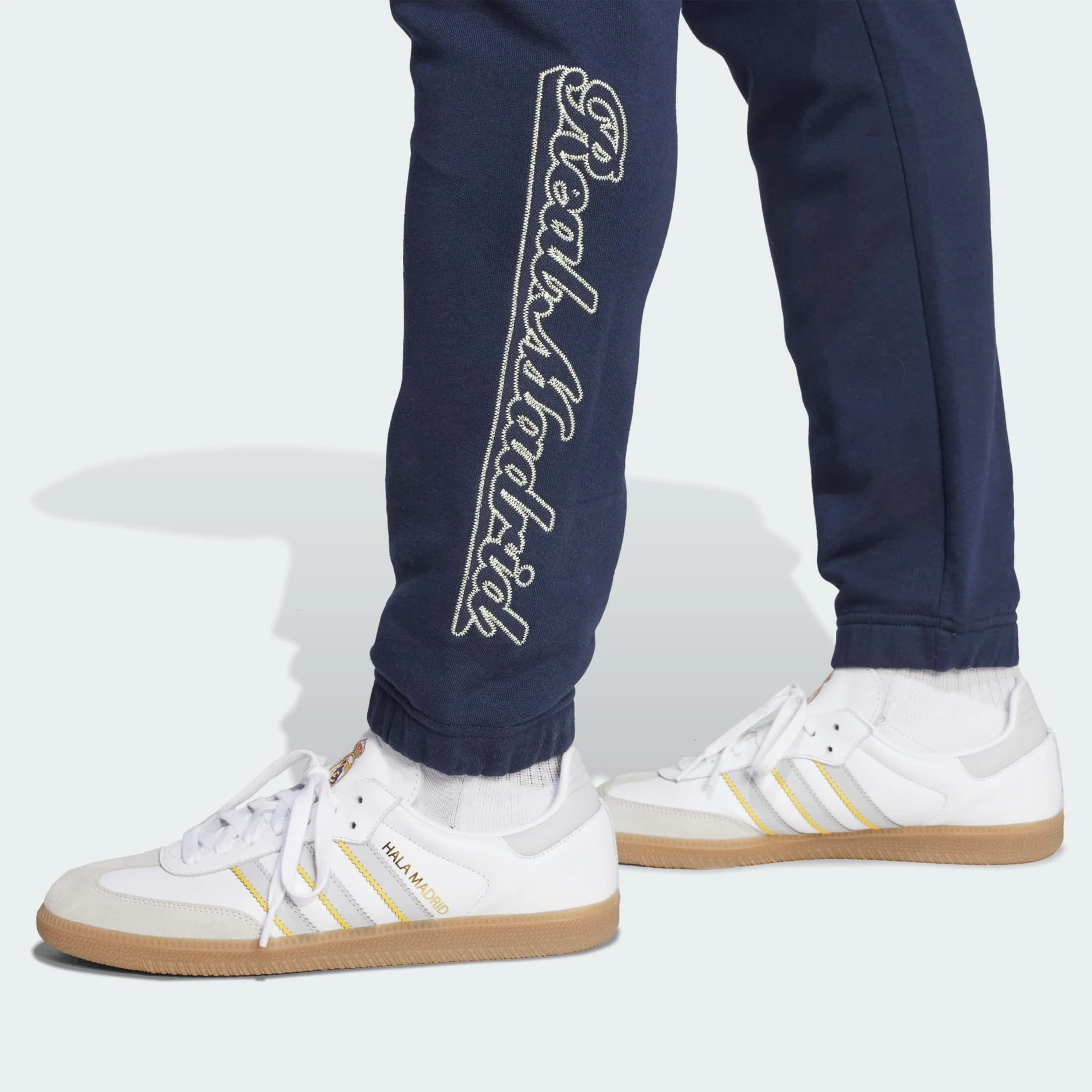 Pantalón suave del Real Madrid con detalles tomados del deporte estadounidense.