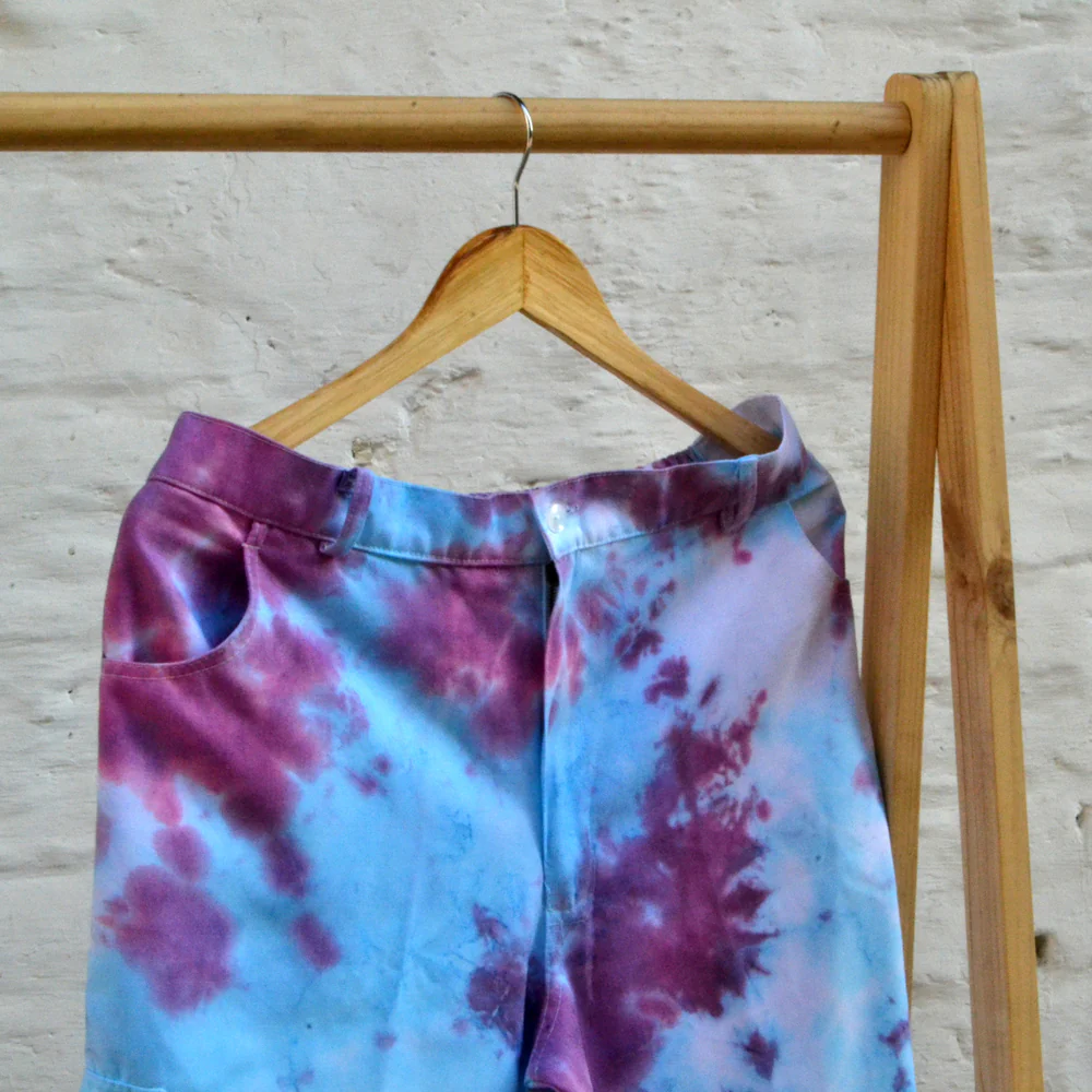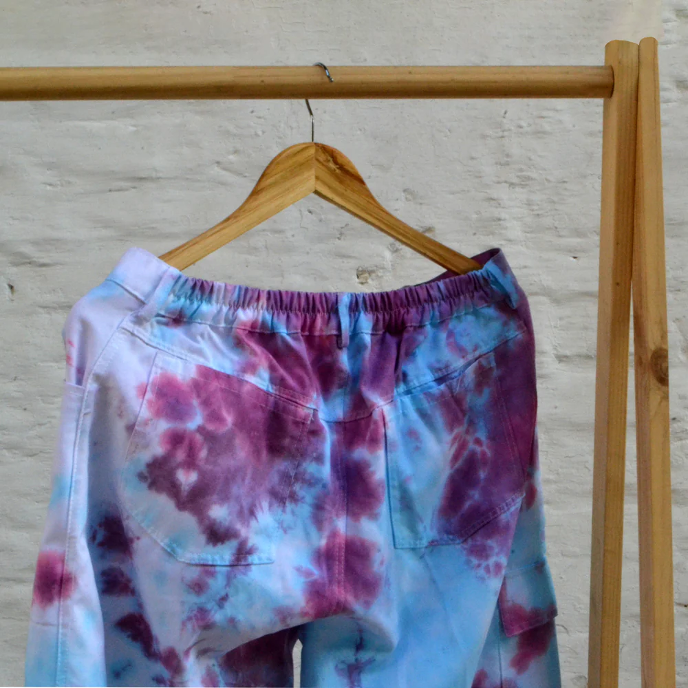 Pantalón con bolsillo tipo cargo teñido tie dye hecho a mano por Cassandra, pantalón de corte recto.