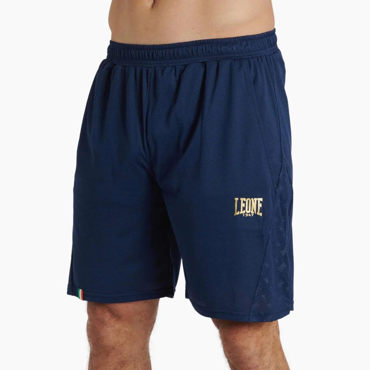 Los Pantalones cortos de entrenamiento Leone DNA ABX726 en Azul están hechos para acompañar de la mejor manera tus entrenamientos en el gimnasio y al aire libre. El tejido de poliéster es ligero, transpirable y de secado rápido: te mantiene fresco y concentrado cuando el ritmo aumenta. El corte regular favorece una amplia libertad de movimientos. Equipados con bolsillos laterales resultan prácticos en tus entrenamientos diarios. El estilo icónico de la línea DNA no pasa desapercibido: el logo Leone dorado, el detalle tricolor en el borde del pantalón corto y la inscripción “We Are Combat Sports” añaden un toque de clase a tu look.