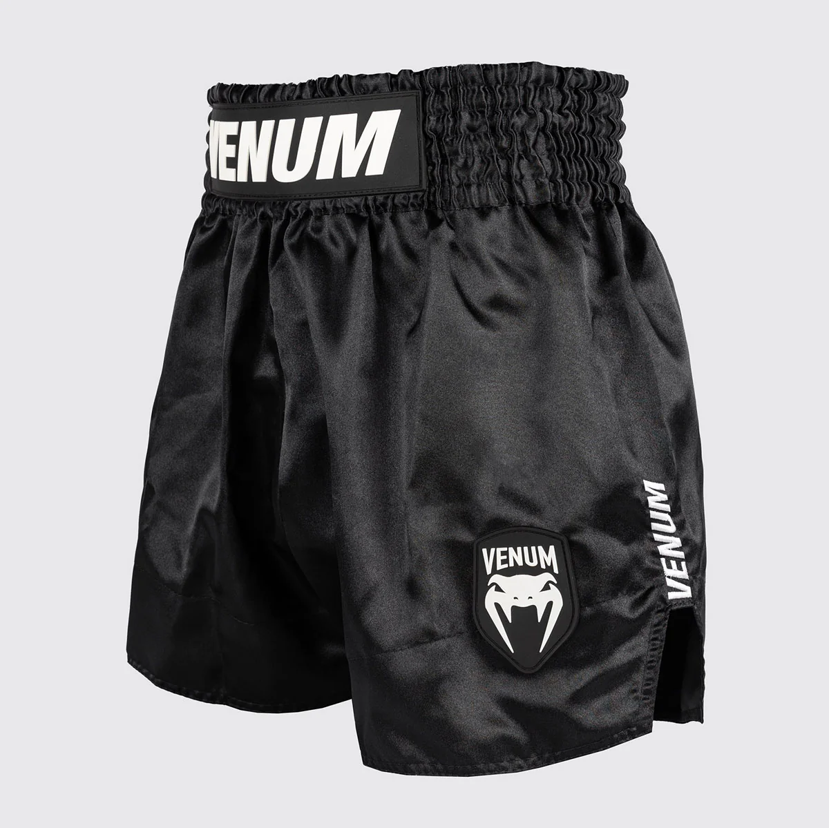 Los Pantalones cortos kick-thai Venum Classic Evo Negro-Blanco representan la evolución de un verdadero clásico firmado por Venum, pensado para quienes viven el Muay Thai con intensidad y estilo.