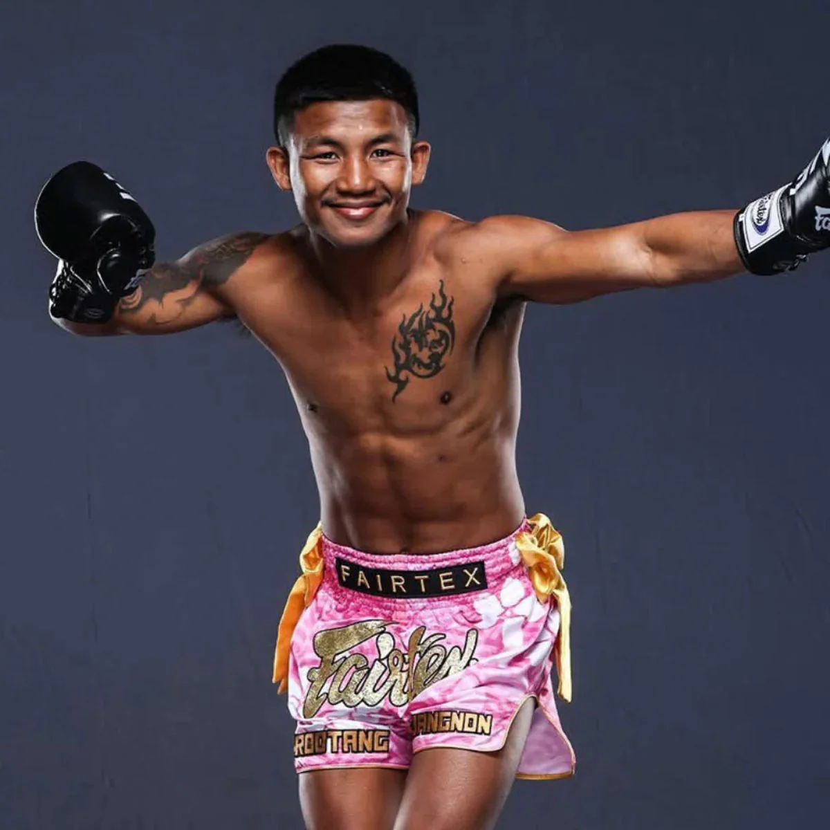 Los Pantalones cortos kick-thai Fairtex Sakura Edición Limitada llevan al gimnasio un look escenográfico que no pasa desapercibido: rosa, con un gráfico de tema flores de cerezo y dos lazos laterales dorados. Estos shorts fueron diseñados para el campeón tailandés Rodtang, con un gráfico que rinde homenaje a Japón.