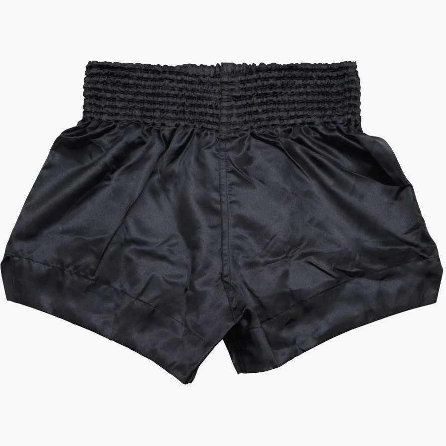 Los Pantalones cortos Fairtex Eternal Gold BS0646 son unos shorts fabricados en Tailandia ideales para practicar Muay Thai y Kick boxing. En el satén negro destacan las inscripciones y los parches al estilo tailandés. Adecuados tanto para entrenamientos como para competiciones, estos Pantalones cortos están equipados con Cinturón elástica en la cintura y cordón de ajuste. El diseño ofrece un espacio amplio para las piernas para permitir realizar cómodamente patadas y rodillazos.