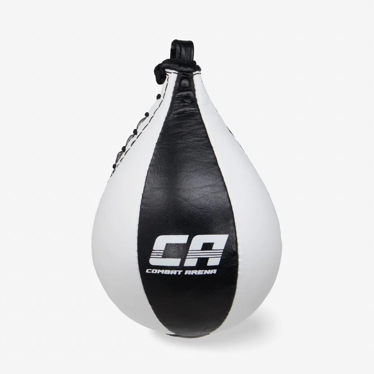 La Pera de boxeo Combat Arena es una herramienta perfecta para el Entrenamiento combate, en particular para el Boxeo. Realizada en cuero bovino de calidad, está provista de cámara de aire interna y perno superior para la fijación. Diseñada para permitir rebotes rápidos, cuando comienzas a golpearla crea un ritmo rápido. Ideal para trabajar en la velocidad y precisión de los golpes.