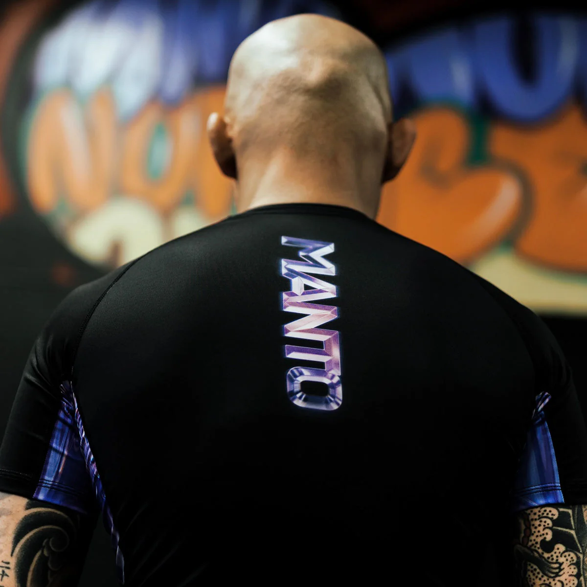 La Rashguard Manto Mirage de manga corta es ideal para atletas de Jiu-Jitsu, MMA y grappling que buscan comodidad y alto rendimiento. Fabricada en tejido técnico compuesto por 84% poliéster y 16% elastano, esta camiseta de compresión ofrece un ajuste ceñido y cómodo, similar a una segunda piel, permitiendo movimientos ágiles y libres. La construcción de 6 paneles con costuras planas y elásticas previene irritaciones cutáneas y garantiza durabilidad en el tiempo. Las gráficas están impresas por sublimación, asegurando que no se desvanezcan con los lavados, manteniendo la rashguard siempre como nueva. Perfecta para quienes buscan estilo, funcionalidad y resistencia.