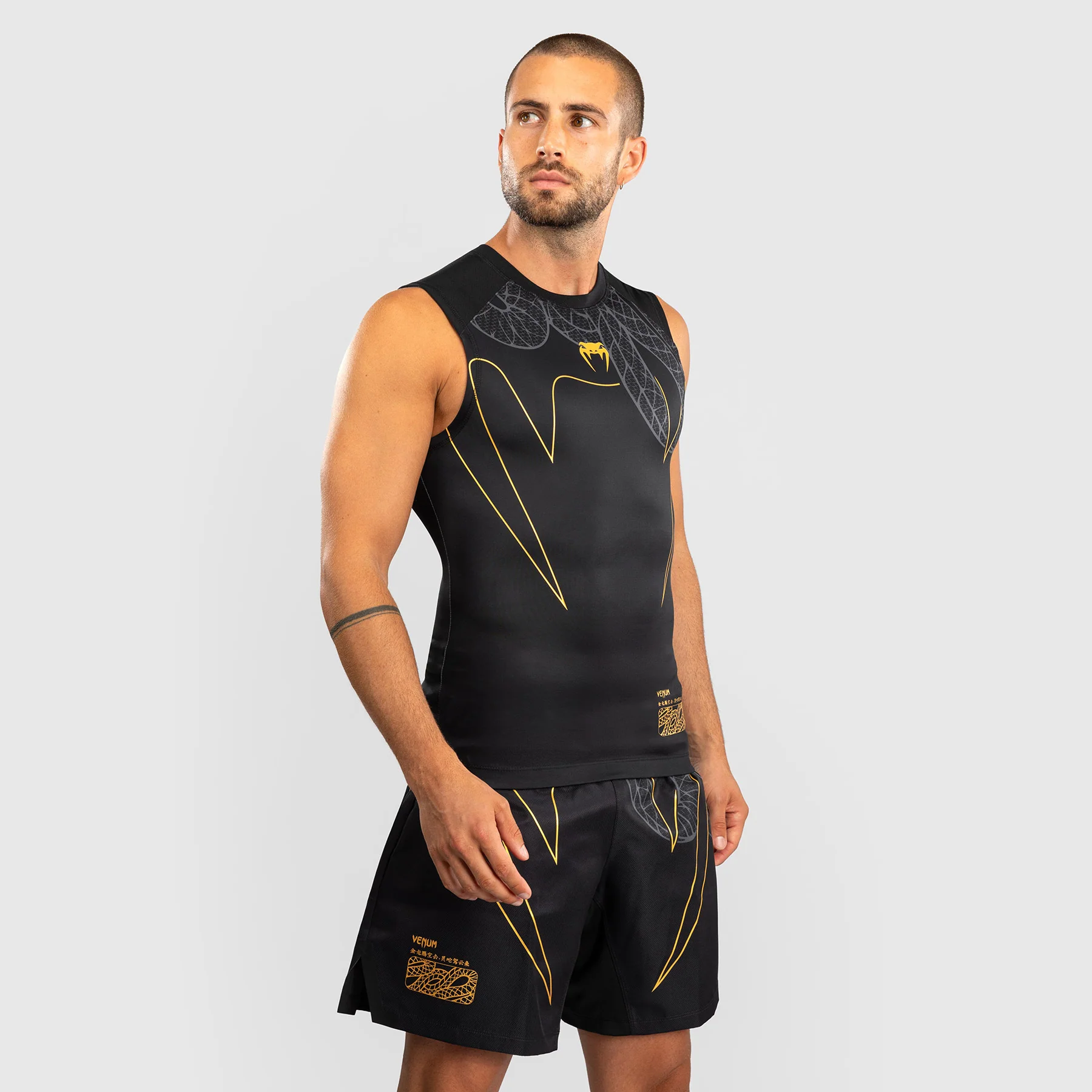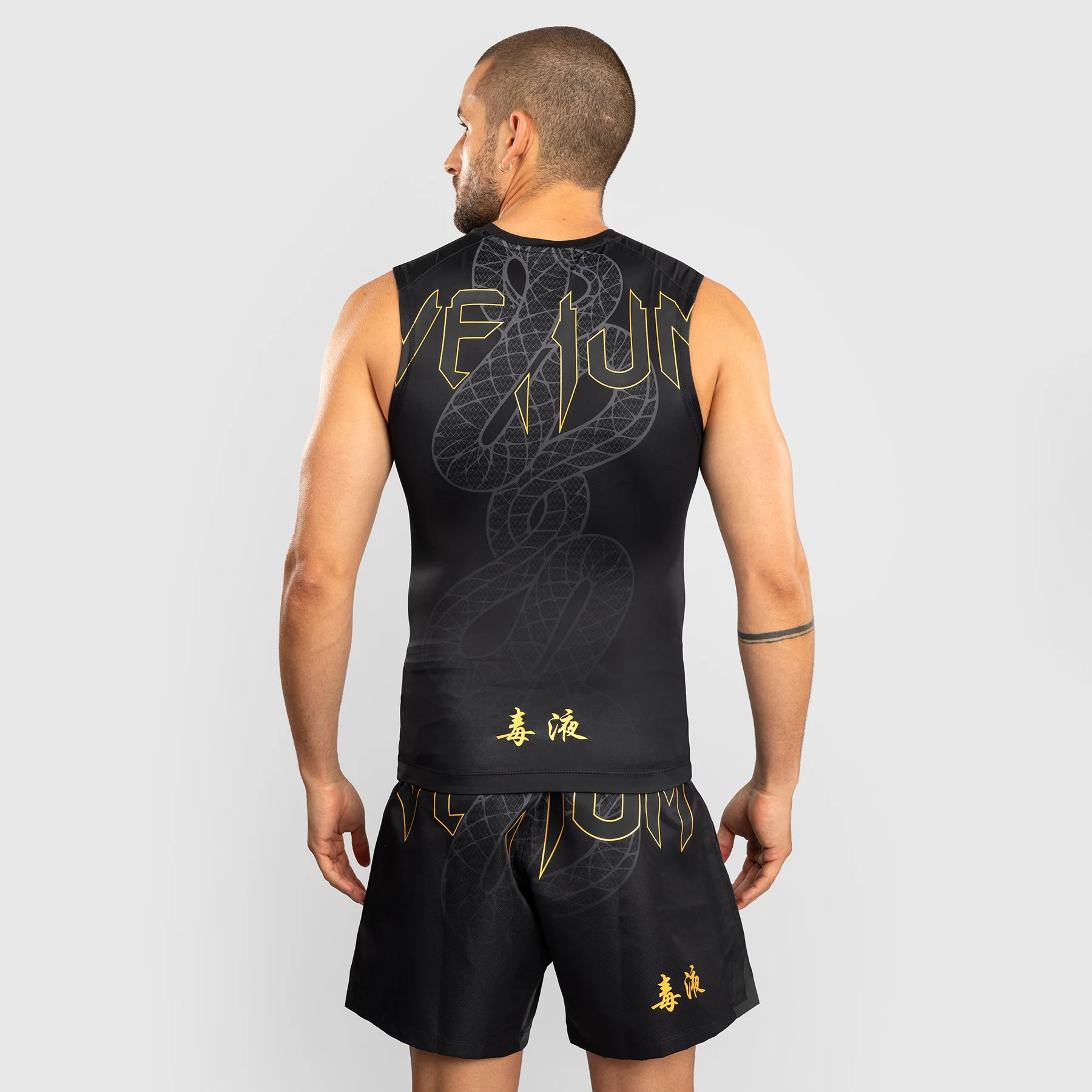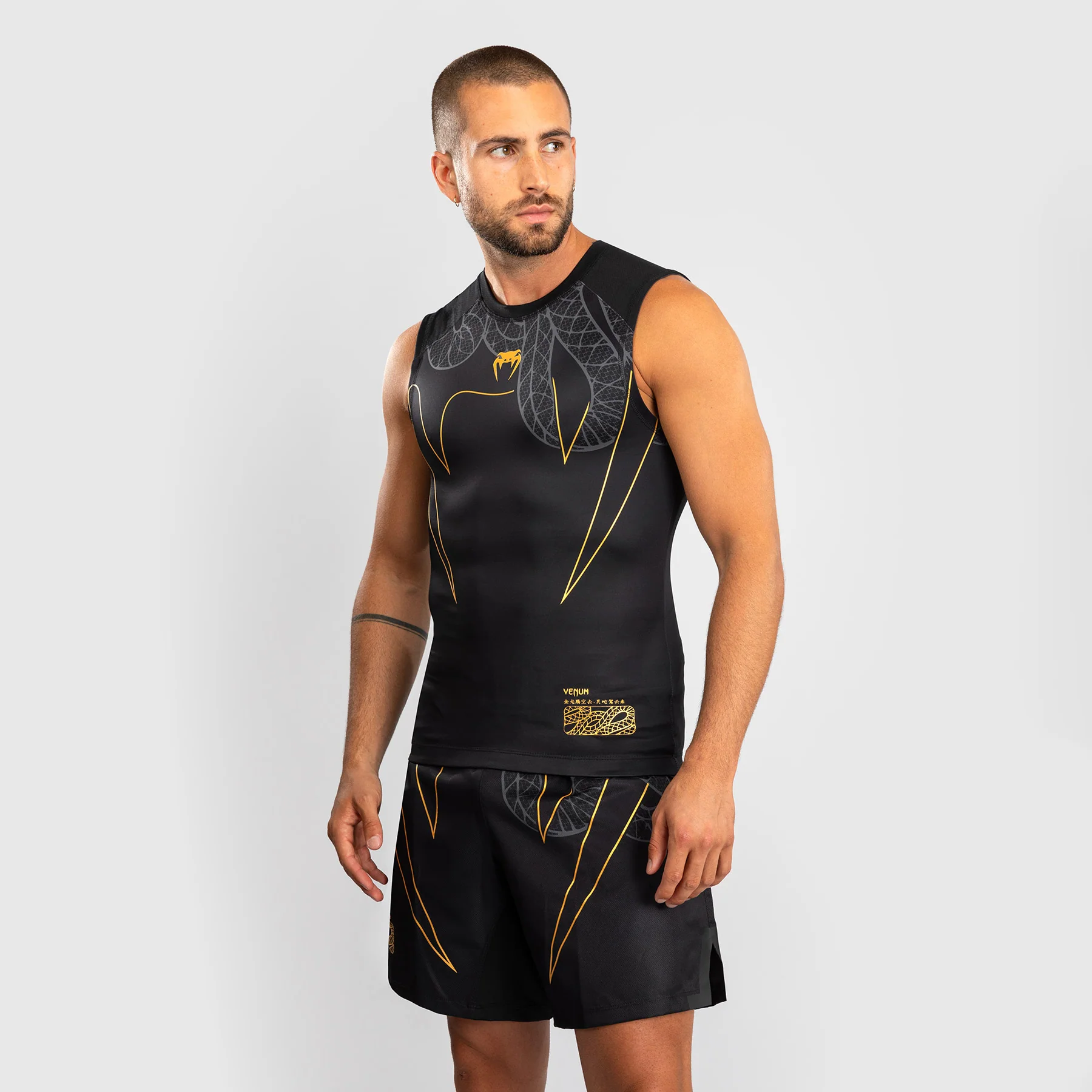 La Rashguard Venum Serpenti sin mangas está diseñada para ofrecer libertad de movimiento, soporte muscular y protección en los entrenamientos más intensos: de BJJ, MMA, grappling y sparring.