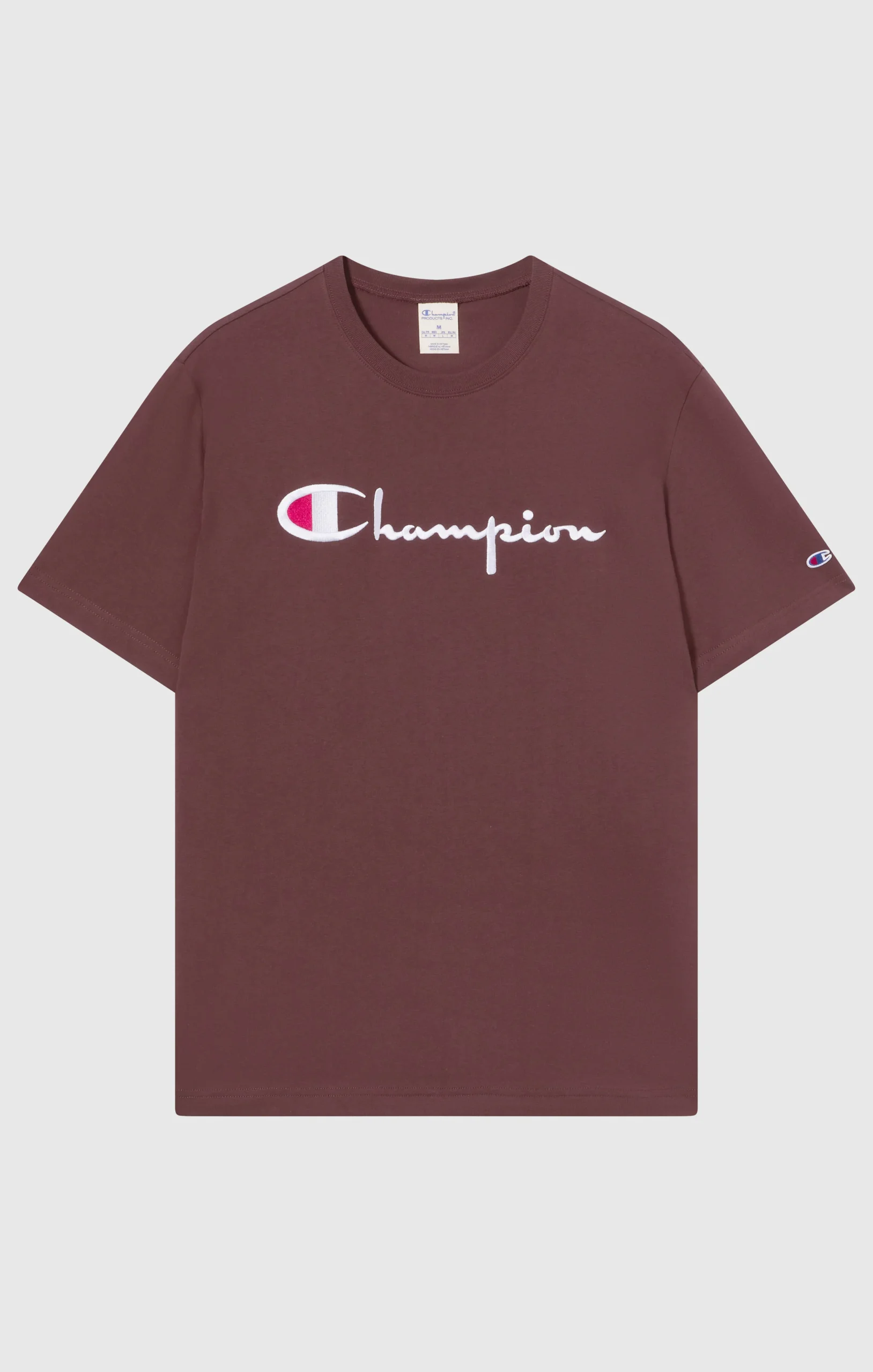 A t-shirt that blends simplicity and legacy. Part of Champion’s iconic Reverse Weave line, created in 1934 to deliver durability, comfort and timeless style. Made of 200 g/m² pure cotton jersey, it’s perfect for everyday wear with its relaxed fit. The embroidered Champion logo and C patch on the sleeve complete the look with a nod to the brand’s American sports DNA.@@@Fabric: Jersey 200 g/m² |Composition: 100% Cotton |Part of the Reverse Weave line, known for durability and authenticity |Ribbed crewneck |Embroidered Champion logo on the chest |C patch logo on the left sleeve |Fit: Relax Fit: Soft and comfortable fit, slightly loose on the chest, dropped shoulders, regular length.