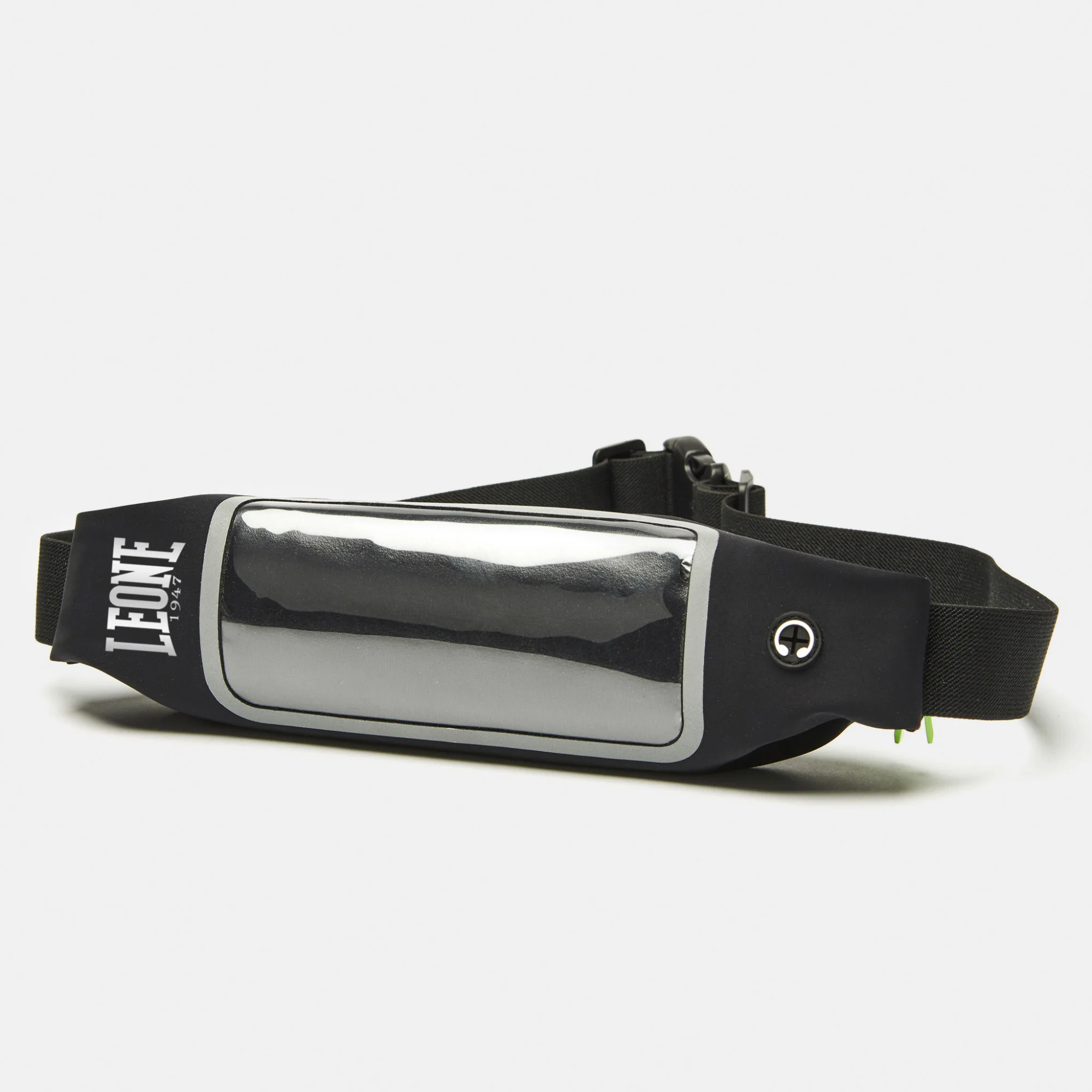 El Riñonera Leone AC933 es una Cinturón de doble compartimento para usar durante el Entrenamiento, como en el gimnasio o una carrera al aire libre. Tiene un bolsillo de PVC transparente para mantener el teléfono móvil, y permite usar el smartphone sin sacarlo, gracias al tratamiento «touch». También tiene un orificio para el cable de los auriculares. El bolsillo más interno, con cremallera, es ideal para guardar otros objetos personales. Se lleva en la cintura y tiene una Cinturón elástica que se puede ajustar y se cierra con un clip fácil y seguro. Un excelente accesorio firmado por Leone, ideal para tus entrenamientos funcionales.