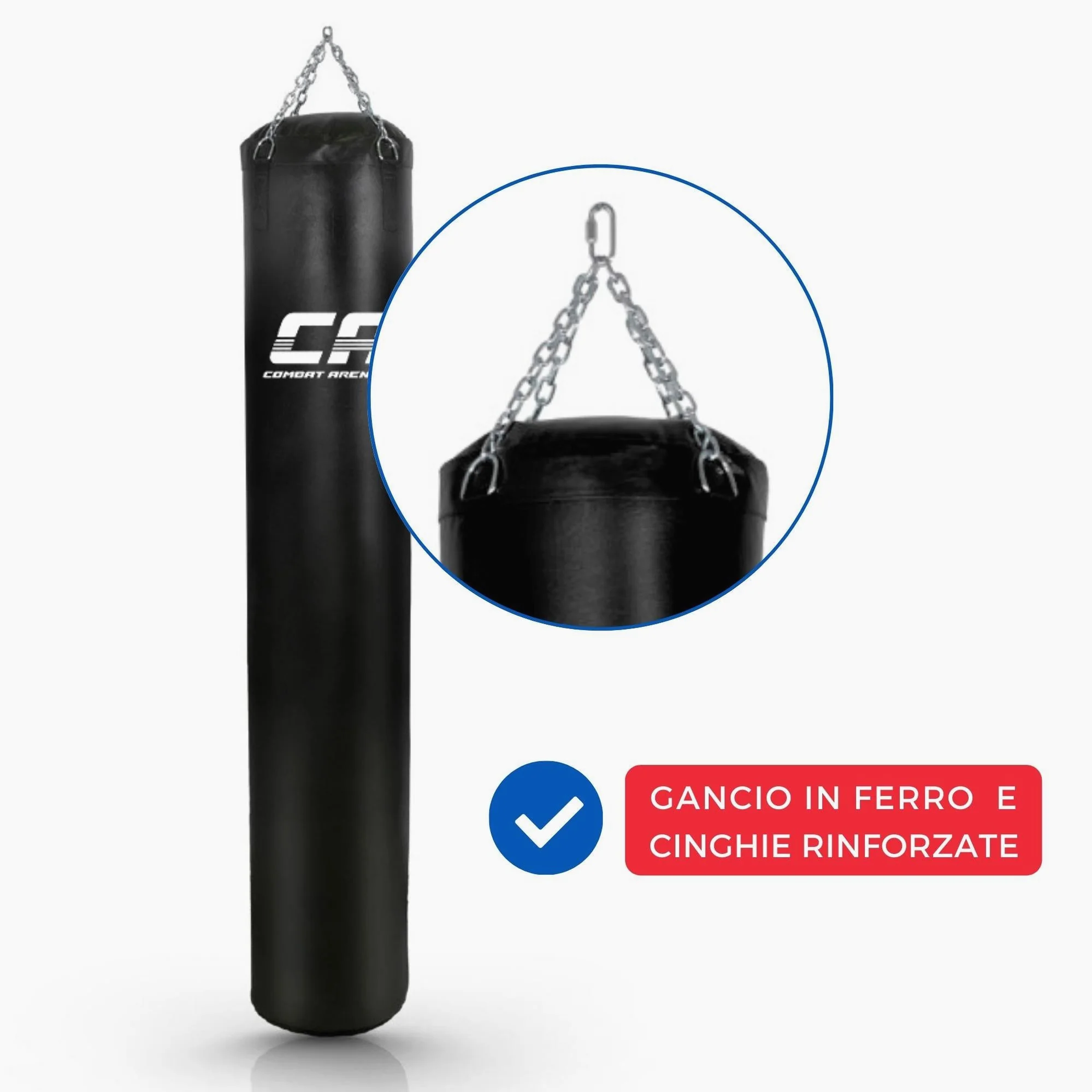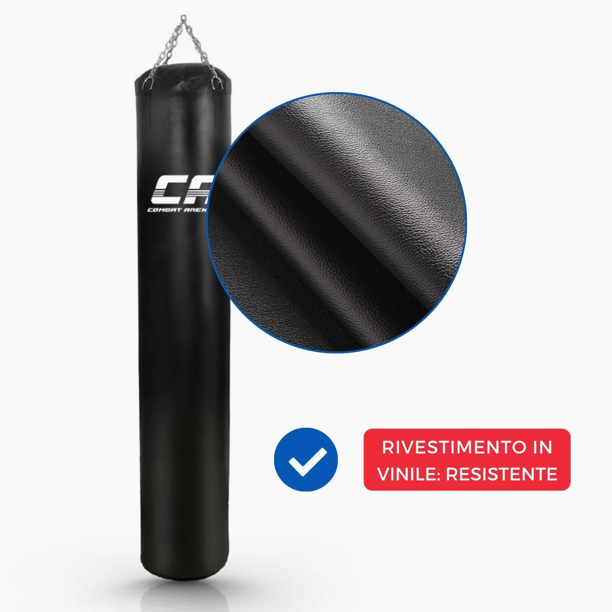 El Saco de boxeo Combat Arena Training Pro en la versión de 180 cm de altura para 60 Kg es el compañero ideal para el Entrenamiento individual en el Saco. Sólido y resistente en el tiempo, este producto totalmente hecho a mano en Italia está diseñado para ser golpeado tanto con puños como con patadas. Recomendado al 100% para el Muay Thai.
