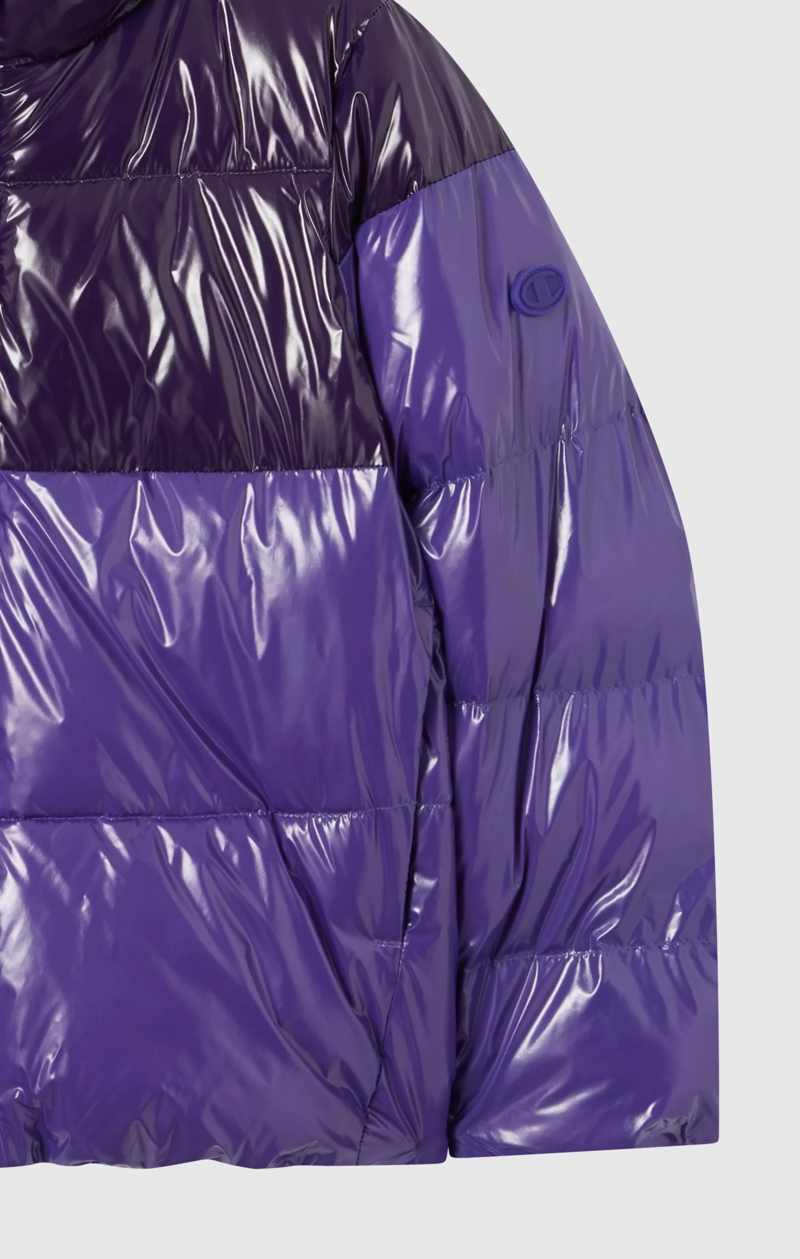 A short padded jacket, perfect for facing winter with style. Made of glossy-effect fabric, it offers protection and a modern, decisive look. The color‑block design adds a distinctive touch to the wardrobe of younger wearers.@@@Fabric: Shiny fabric, 60 g/m² |Composition: 100% Polyamide |Details: |Full front zip |Two side pockets |High collar |Standard Fit: Versatile and comfortable fit with standard widths and lengths. Close to the body, it has simple lines that do not cling to the shape. Regular shoulder cut.