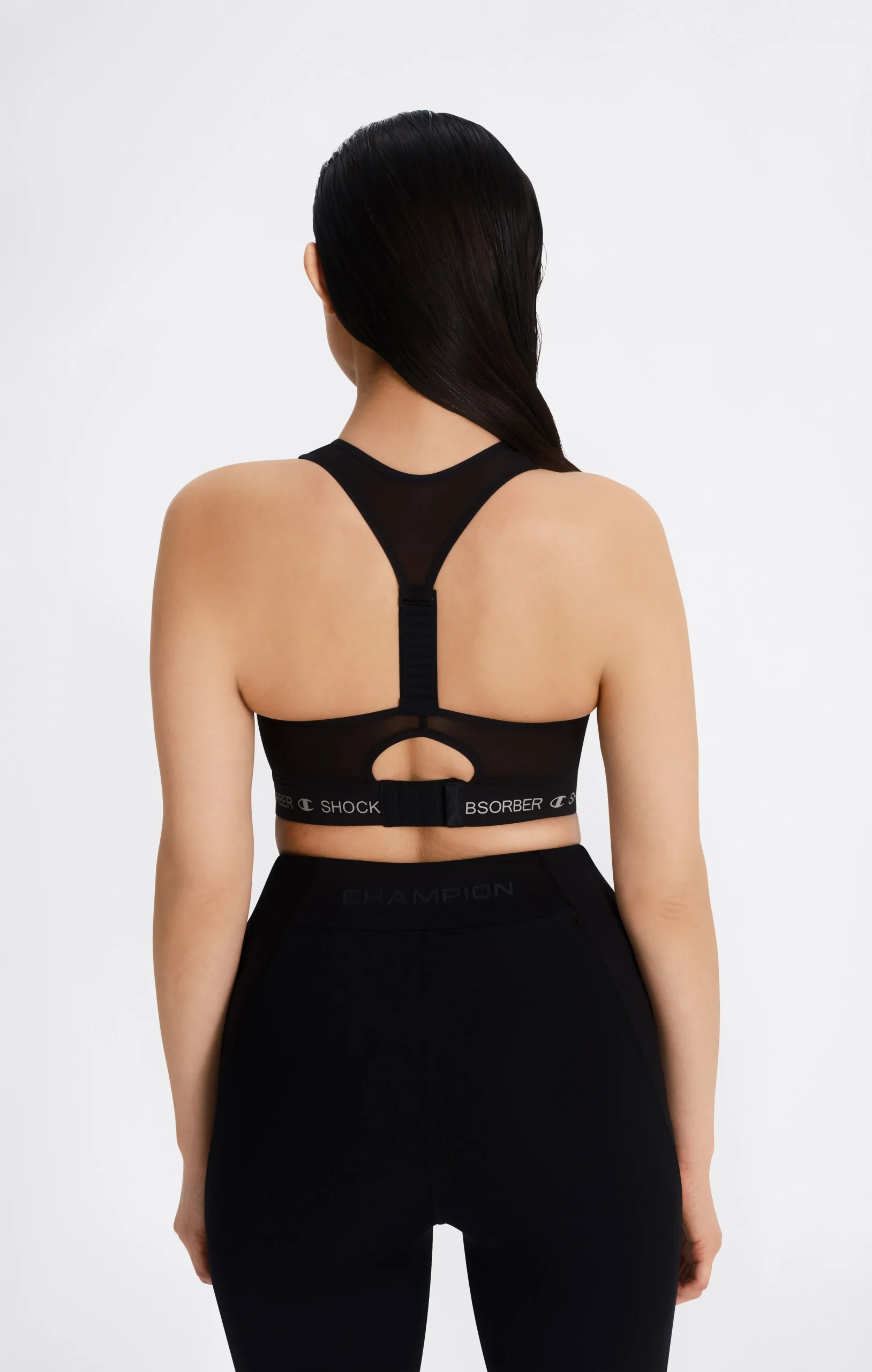 Train with confidence in the Shock Absorber Infinity Power Bra. Designed for extreme sports, it provides up to 80% bounce reduction with a unique support system that anchors the breasts to the body’s center, minimizing vertical and lateral movement. Moulded, padded, and breathable cups ensure ultimate comfort, while the Y-shaped back construction and single adjustable strap allow full shoulder mobility. Ideal for high-impact activities, it offers unmatched support without compromise. With «Unshakable», the campaign celebrating the strength and determination of women in sport, the Shock Absorber collection stands out for its combination of technical innovation and high-performance design, delivering maximum support without compromise.@@@Extreme bounce control with up to 80% bounce reduction |Special support system that anchors the breasts to the centre of the body |Single adjustable strap that allows the free movement of the shoulders |Moulded, padded and breathable cups |Ideal for cardio sports as running, tennis, gym, riding |Machine wash |71% Polyamide, 9% Polyester, 20% Elastane |Country of origin: imported