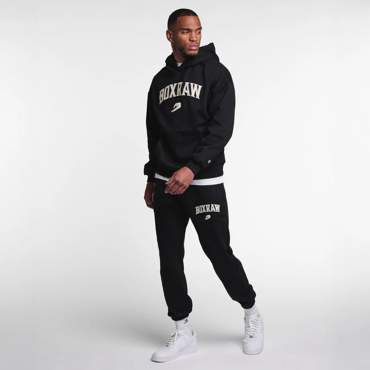 La Sudadera Boxraw East Street con capucha negra rinde homenaje a los orígenes del boxeo y al legendario Madison Square Garden, la Meca del Boxeo, con un diseño inspirado y lleno de detalles. Realizada en un resistente mezcla de algodón y poliéster con forro de suave felpa, ofrece calidez, confort y durabilidad. La vestibilidad oversize asegura libertad en los movimientos, mientras que el logo varsity aplicado en el pecho y los logotipos Strike bordados en las mangas, visibles con los puños levantados, expresan con fuerza la identidad del luchador. Para hacer la prenda aún más práctica está presente el bolsillo canguro con bolsillo secreto con cremallera.