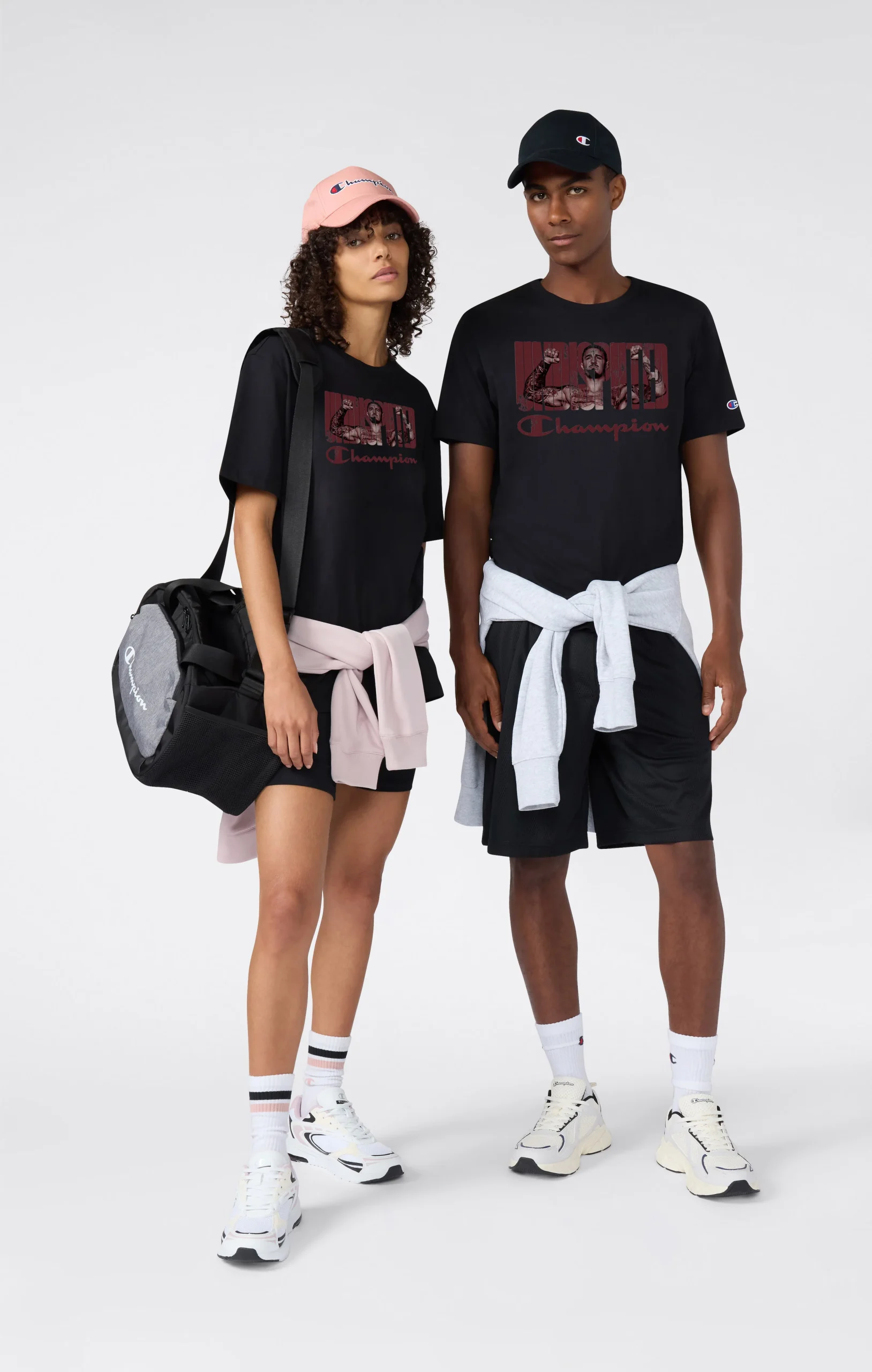Limited pieces, available online and at the Champion flagship store in Soho. This t-shirt featuring the word “UNDISPUTED” celebrates his new title as undefeated UFC Heavyweight Champion. Made from heavyweight 220 g/m² Reverse Weave cotton jersey, it’s the perfect choice to stand out with character—inside and outside the ring.@@@Loose Fit: relaxed fit featuring extra fullness for peak comfort and style, designed to sit loosely without clinging |220 gsm soft cotton jersey |100% Cotton |Iconic C logo patch embroidery to left sleeve |Country of origin: imported |The model wears size M and is 186 cm tall |The model wears size S and is 174 cm tall