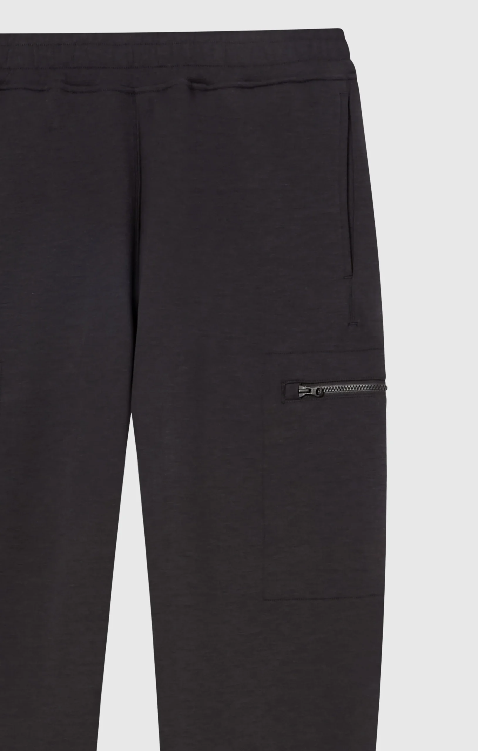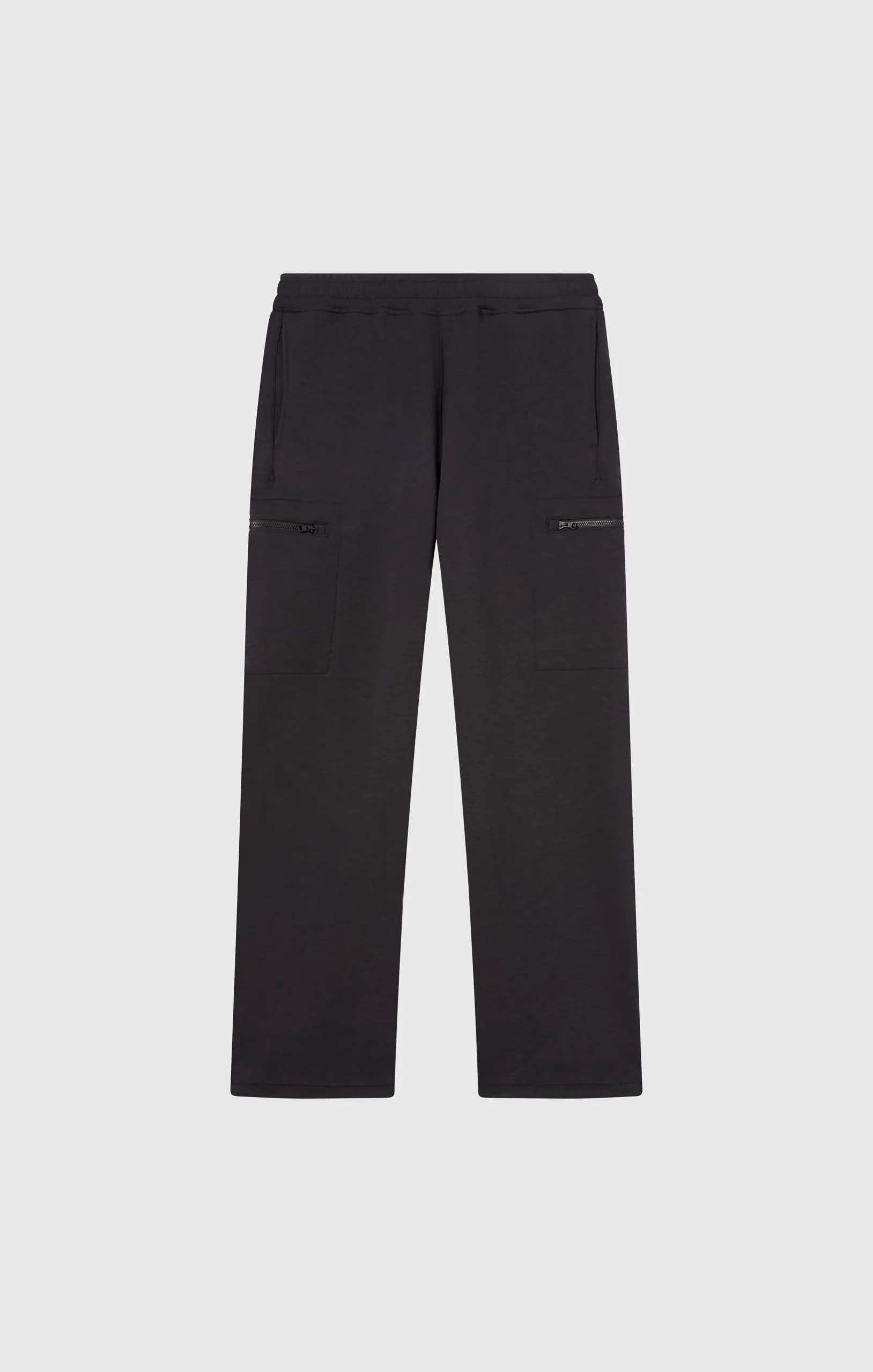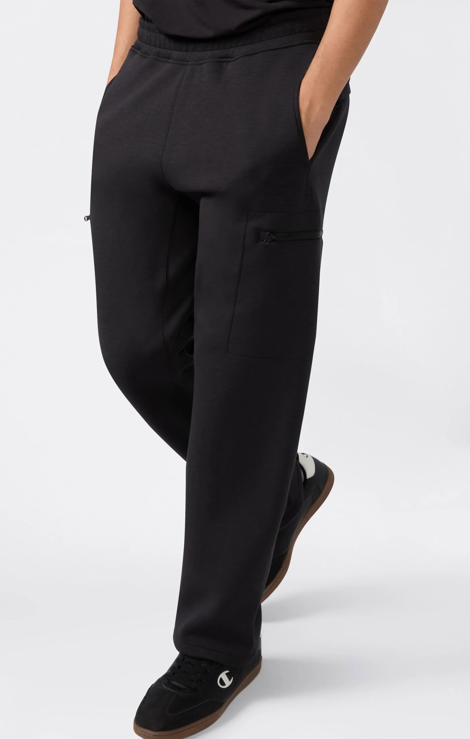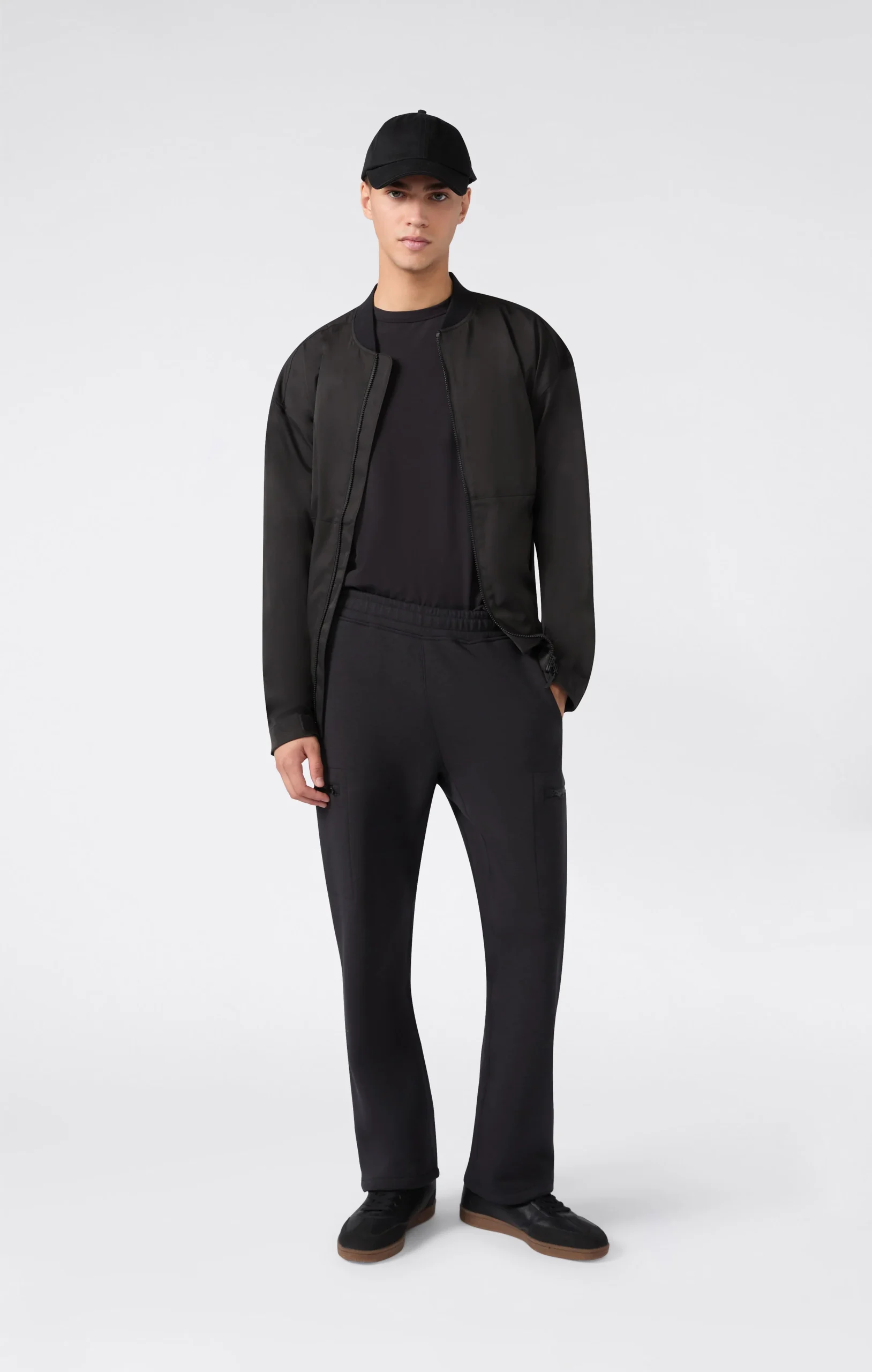 Part of the Black Edition collection, these men’s cargo pants combine utility style with contemporary functionality. The Stretch Double Knit fabric offers comfort and protection, allowing you to move freely throughout the day. Side zip cargo pockets, an adjustable hem with drawcord, and an elastic waistband with drawstring complete this technical, streamlined and urban look.@@@Fabric: Stretch Double Knit, weight 335 g/m² |Composition: 83% Polyester, 12% Rayon, 5% Polyurethane |Side pockets |Side cargo pockets with zip |Adjustable hem with drawcord |Elastic waistband with drawstring |Fit: Regular Fit – comfortable cut with a straight line, suitable for every body type