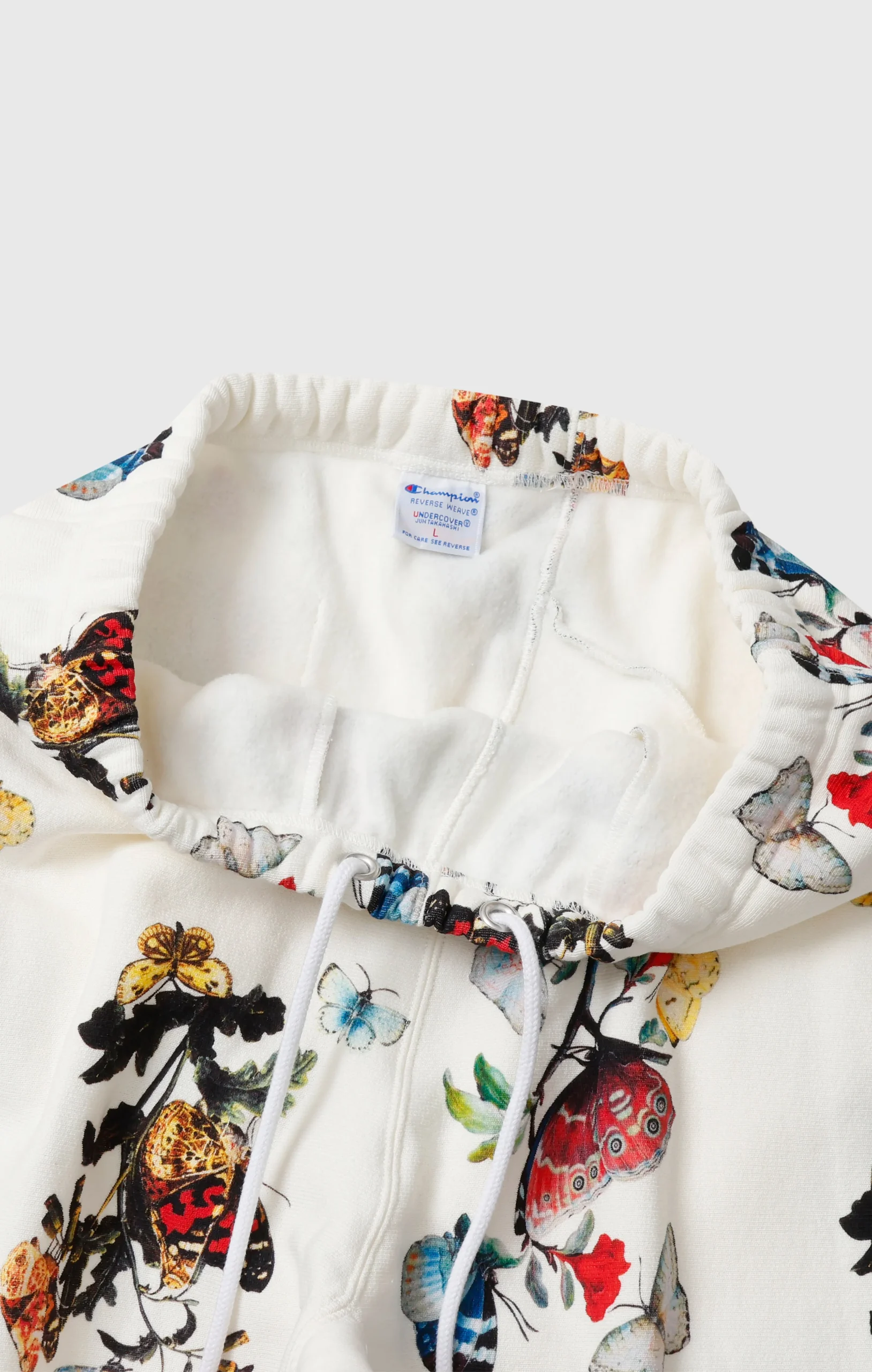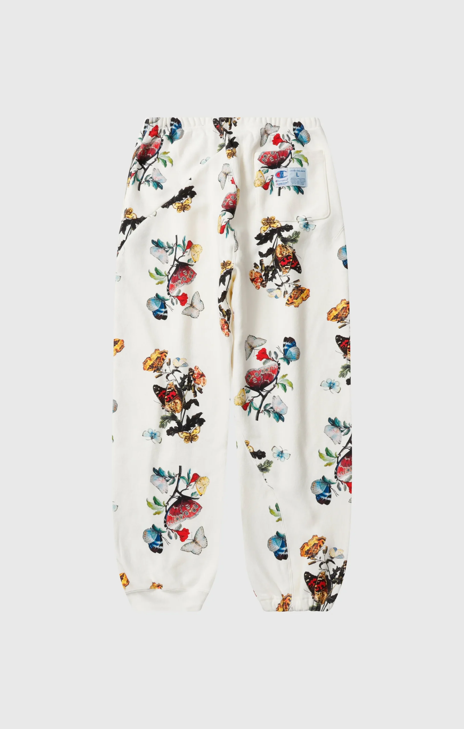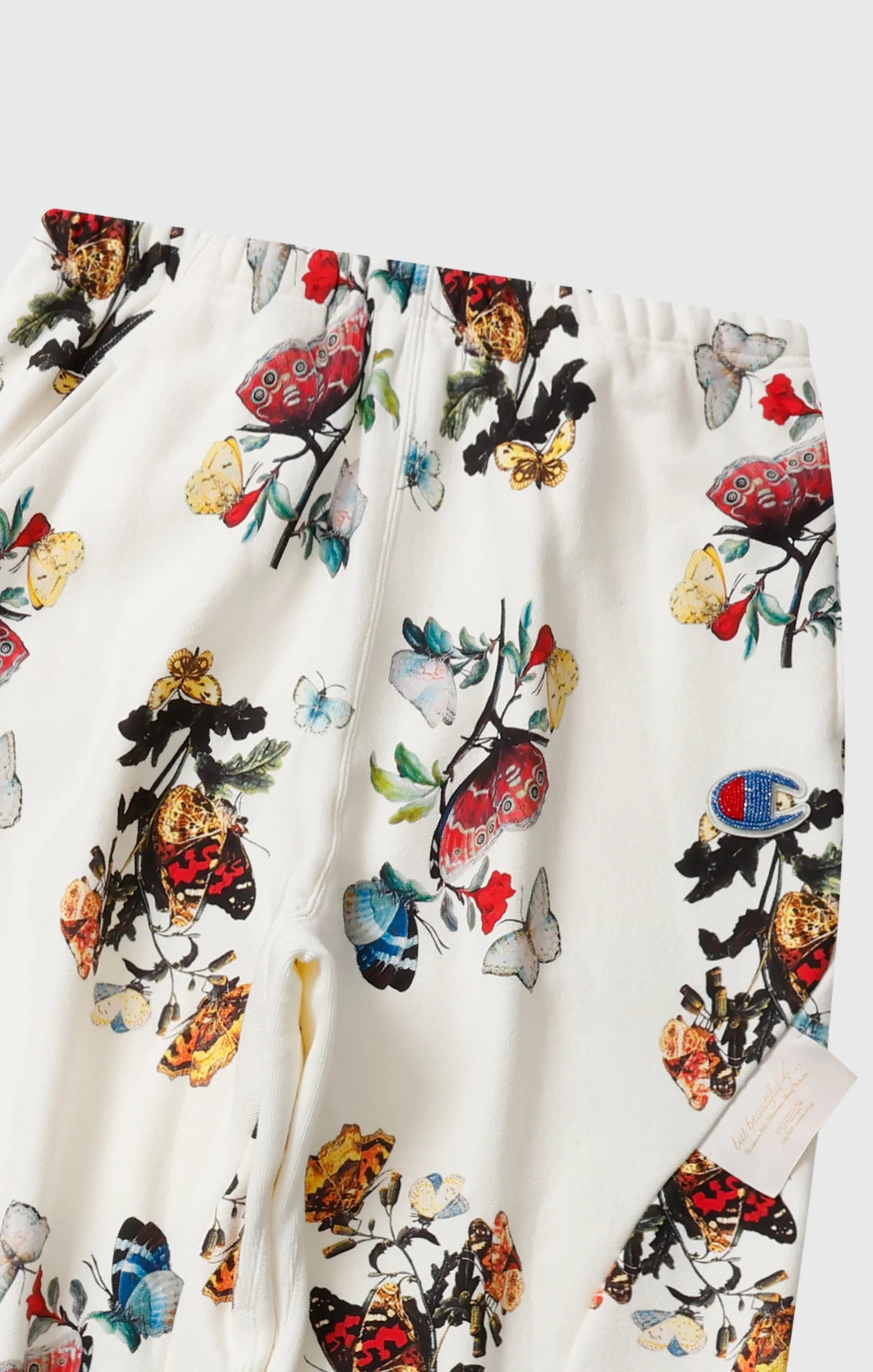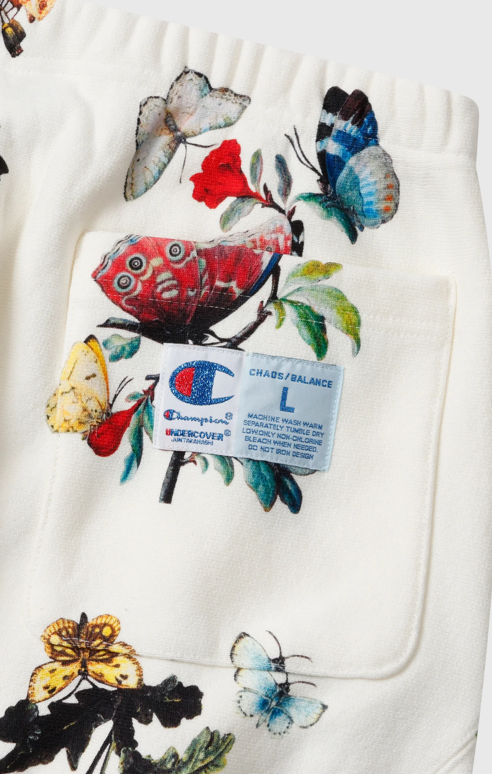 This is the second collaboration with UNDERCOVER by Jun Takahashi. As with the previous collection, it features Champion’s signature “REVERSE WEAVE®” construction. This sweatpant is made from a substantial 11.5oz heavyweight fabric offering a soft and comfortable feel while maintaining durability. It features a brushed fleece back that becomes tougher with each wash and develops a unique texture and character the more it’s worn. The joggers incorporates distinctive details inspired by the concept of the collection, “but beautiful 4…”, such as exposed tags and intentionally distorted stitching lines. The C logo on the left thigh is expressed with luxurious bead embroidery, while the jock tag on the right hip is crafted with metallic threads, adding a touch of elegance. A special woven label featuring the logos of both brands symbolizes this collaboration.@@@Reverse Weave® Technology: Champion’s iconic construction designed to reduce vertical shrinkage and ensure maximum durability. |Fabric: 11.5oz (≈ 390 g/m²) CVC Terry Fleece — a heavyweight fabric that combines comfort, softness, and long-lasting durability. |Brushed interior: warm and soft. |Padded “C” logo patch: embroidered with beads for a three-dimensional effect. |Elastic waistband: with adjustable drawstring for a comfortable and customizable fit. |Elastic ankle cuffs: for better fit and thermal insulation. |Front pockets and back pocket. |Design details: intentionally irregular stitching and exposed tags inspired by UNDERCOVER’s “But Beautiful 4…” concept. |Collaborative label: Champion × UNDERCOVER by Jun Takahashi.