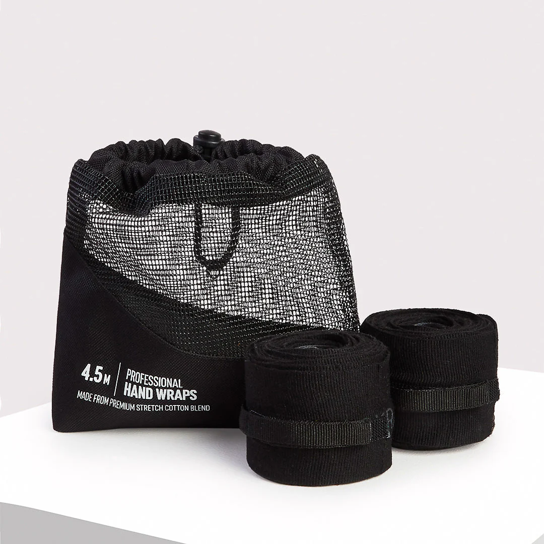 Los vendajes Boxraw de 4,5 metros en negro están diseñados para ofrecer soporte profesional, comodidad y practicidad, ideales para todos los niveles de Entrenamiento. Hechos de una mezcla suave de algodón elástico, aseguran una excelente protección para manos y muñecas manteniendo un ajuste ceñido y estable. El cierre patentado integrado en el lazo para el pulgar permite una aplicación y extracción más rápida. La correa reforzada ofrece soporte adicional, mientras que el tejido especial ofrece un equilibrio mejorado entre suavidad y firmeza, adaptándose a todas las necesidades de vendaje. Caracterizados por el logo BOXRAW impreso y el logo de goma, vienen con una funda lavable para el transporte.