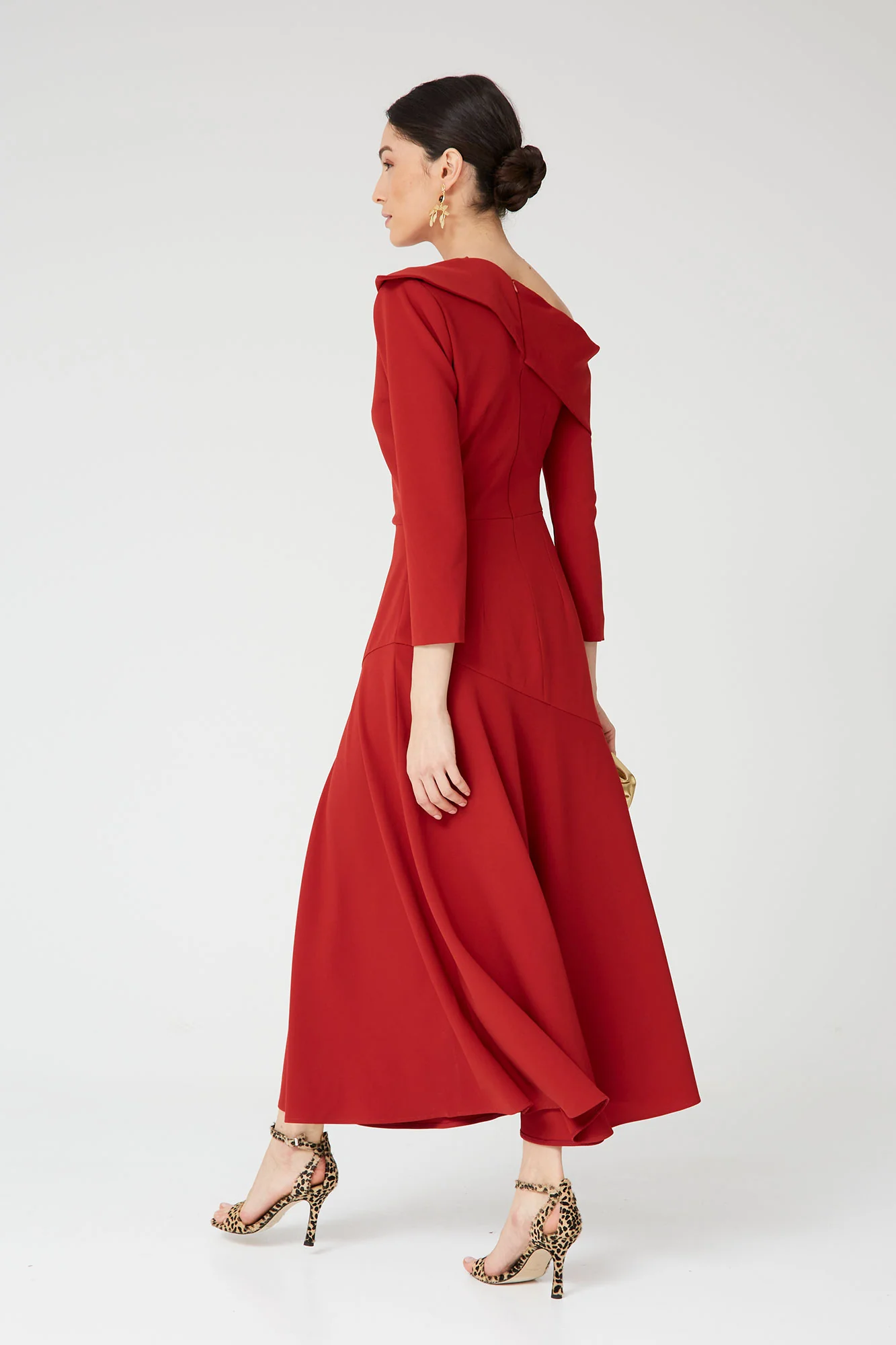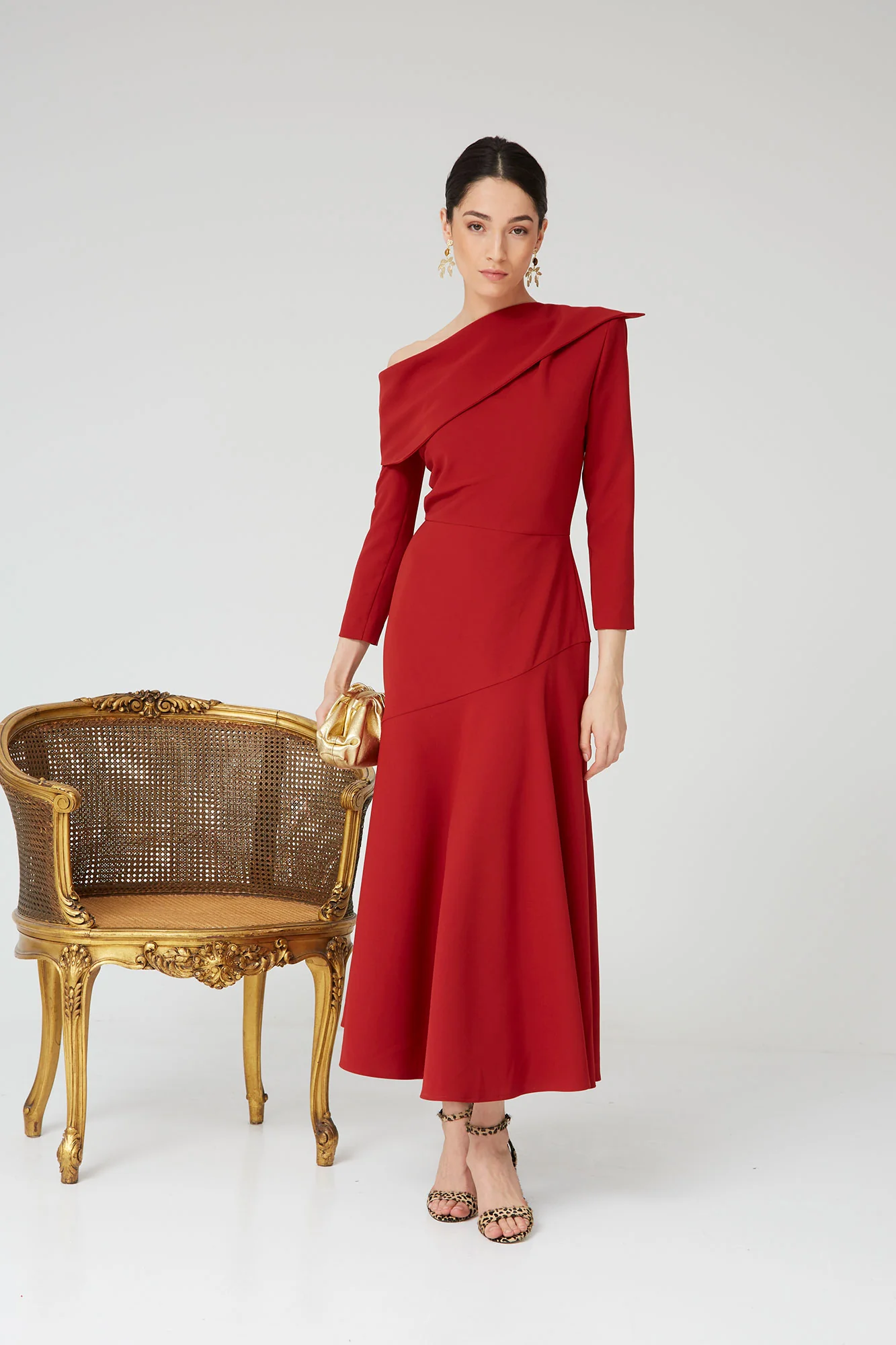 El Vestido Mara Teja es un vestido de invitada en color teja que destaca por su diseño elegante y favorecedor. Su escote asimétrico con solapa estructurada aporta un toque sofisticado y actual, convirtiéndolo en una pieza especial para eventos.
