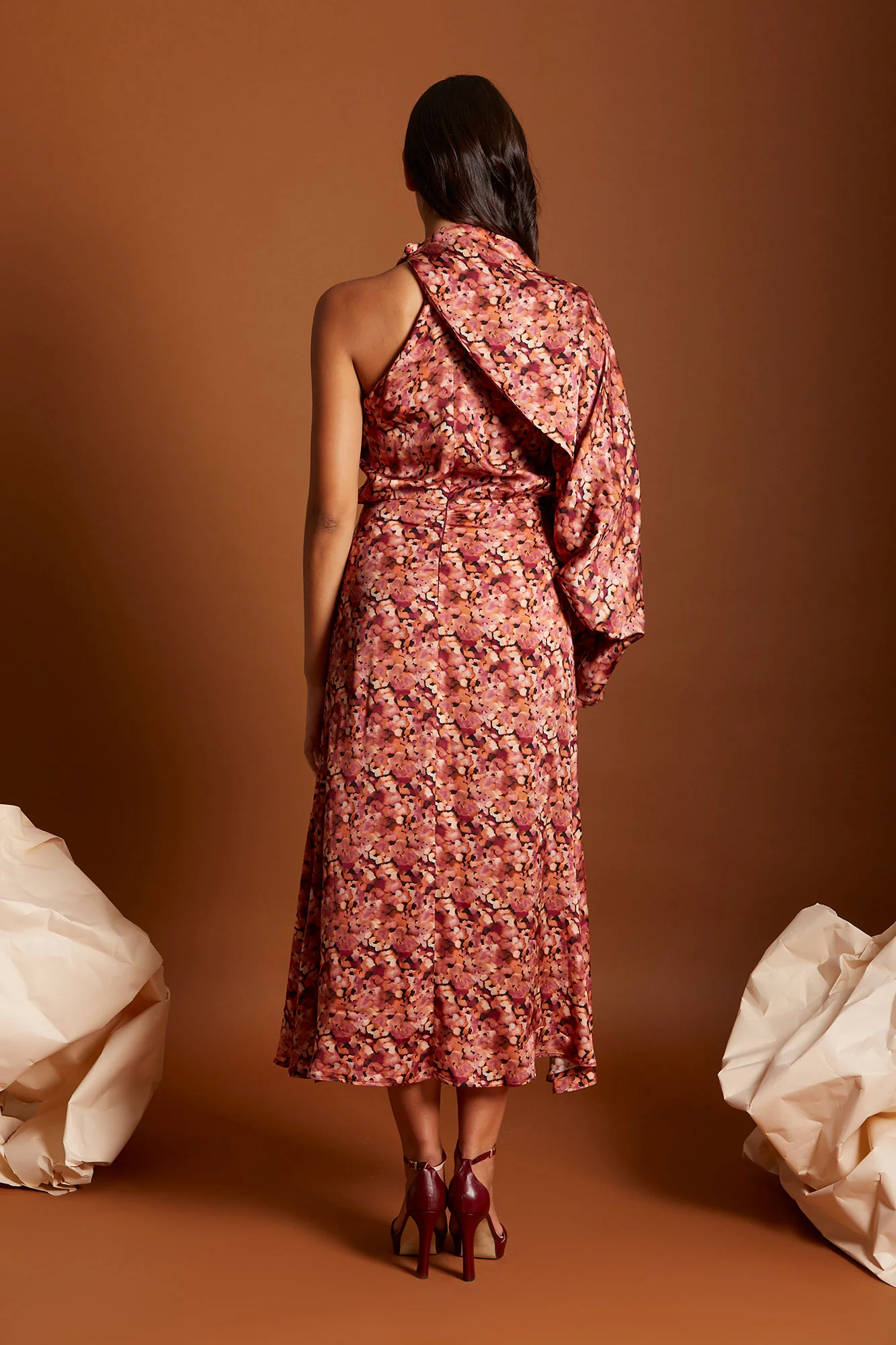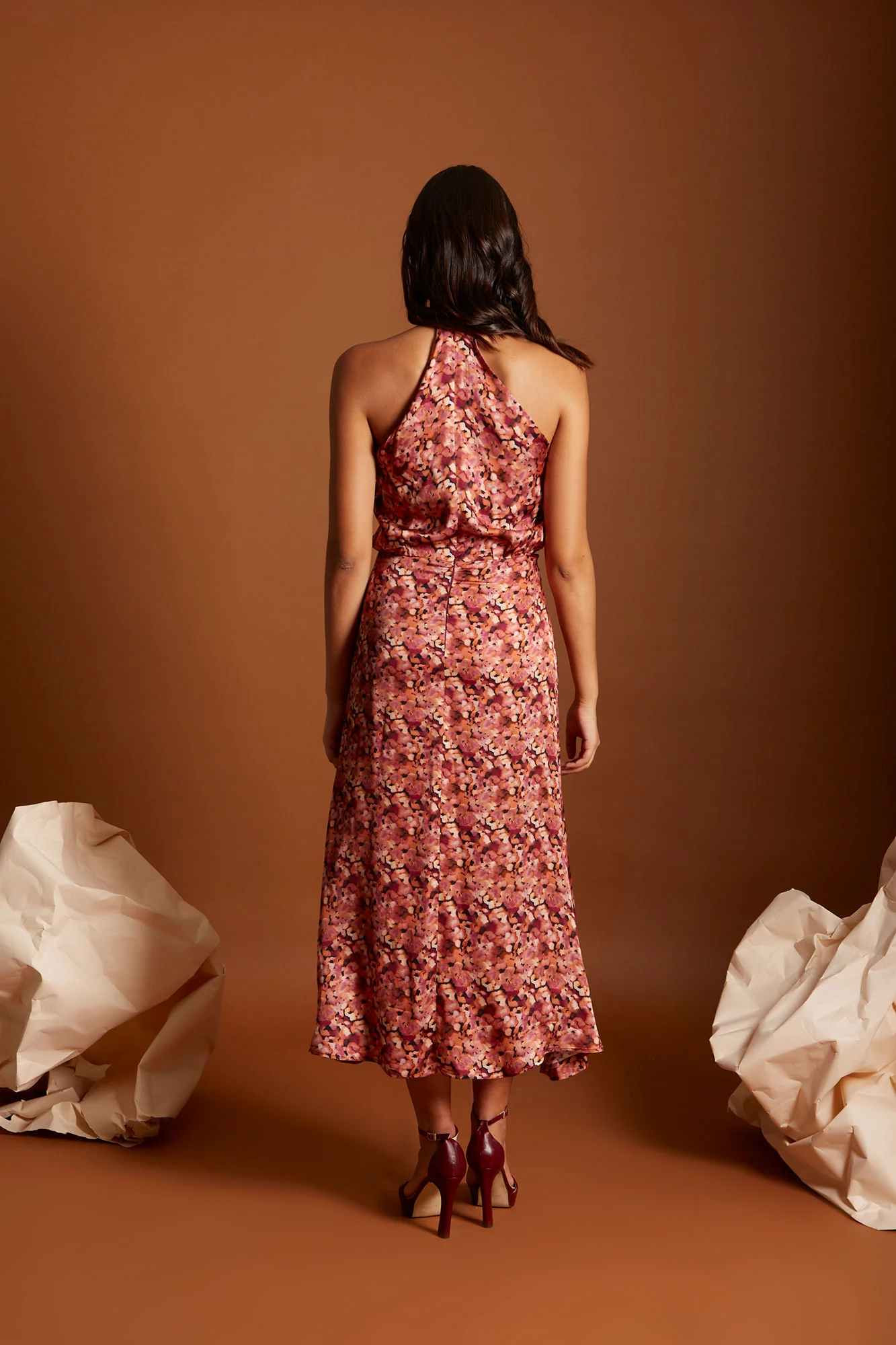 El Vestido Pavlova es la opción perfecta para quienes buscan un look de invitada versátil, elegante y sofisticado. Confeccionado en un tejido satinado con estampado floral en tonos cálidos, este vestido midi destaca por su silueta femenina y su caída fluida que estiliza la figura en cada movimiento.
